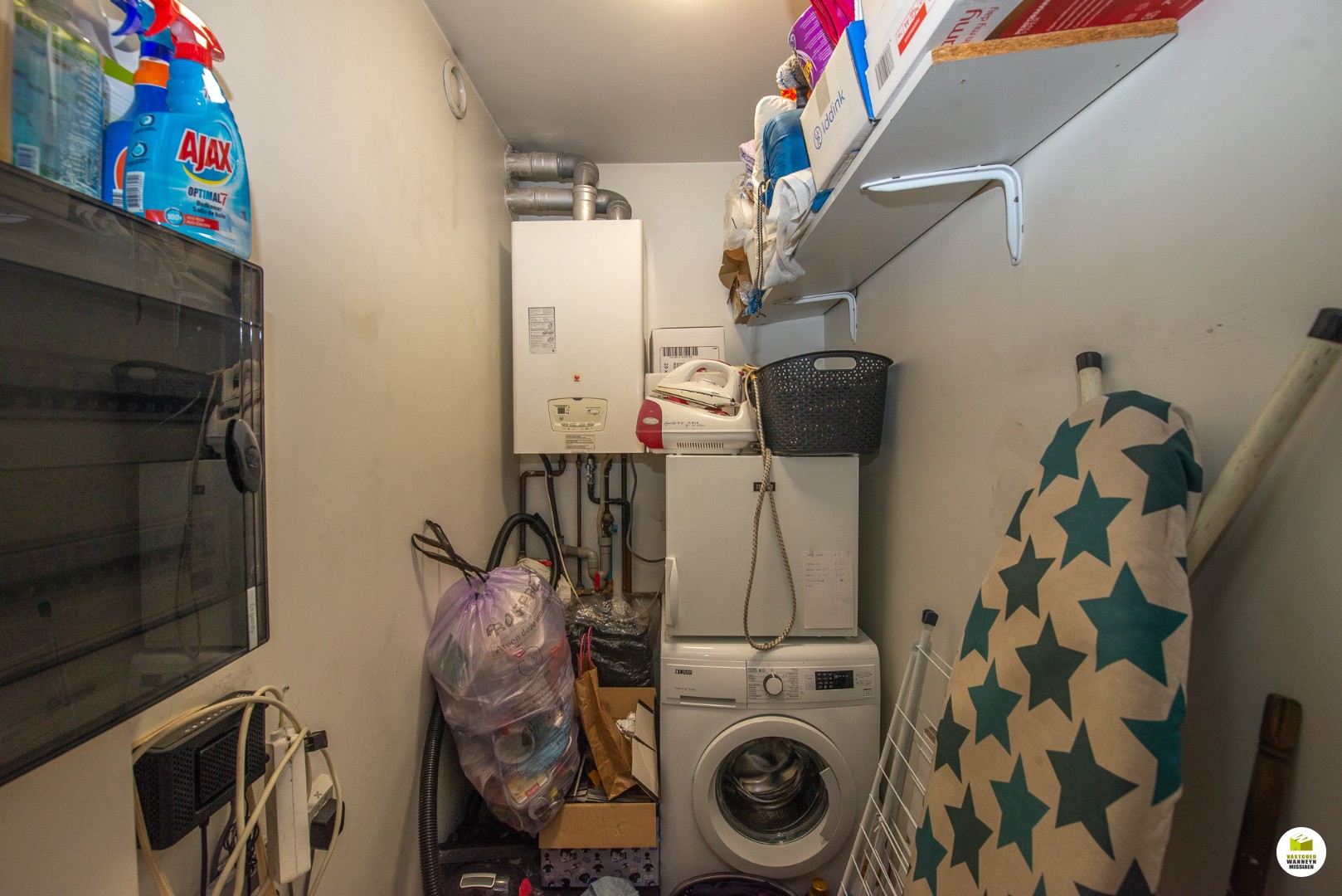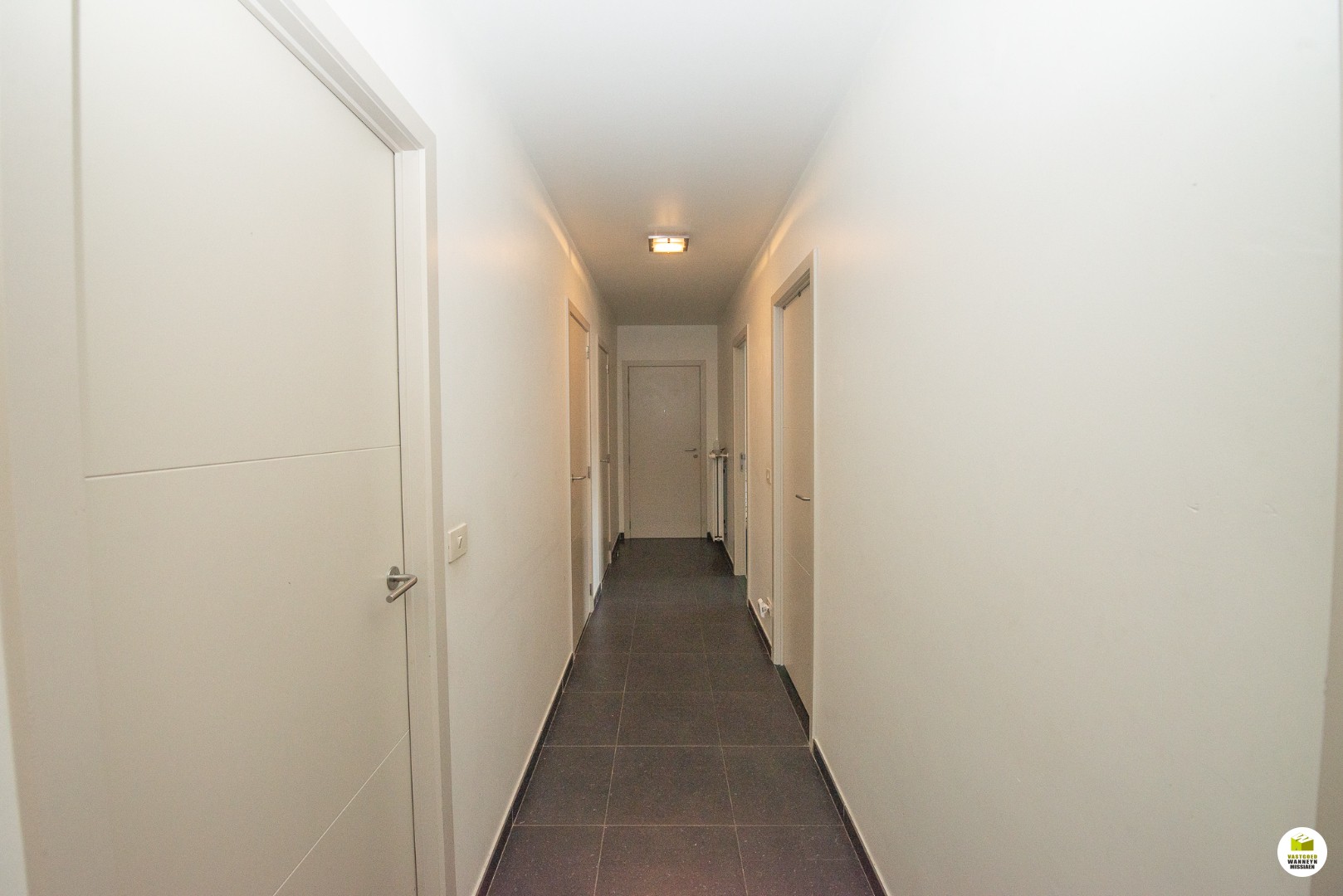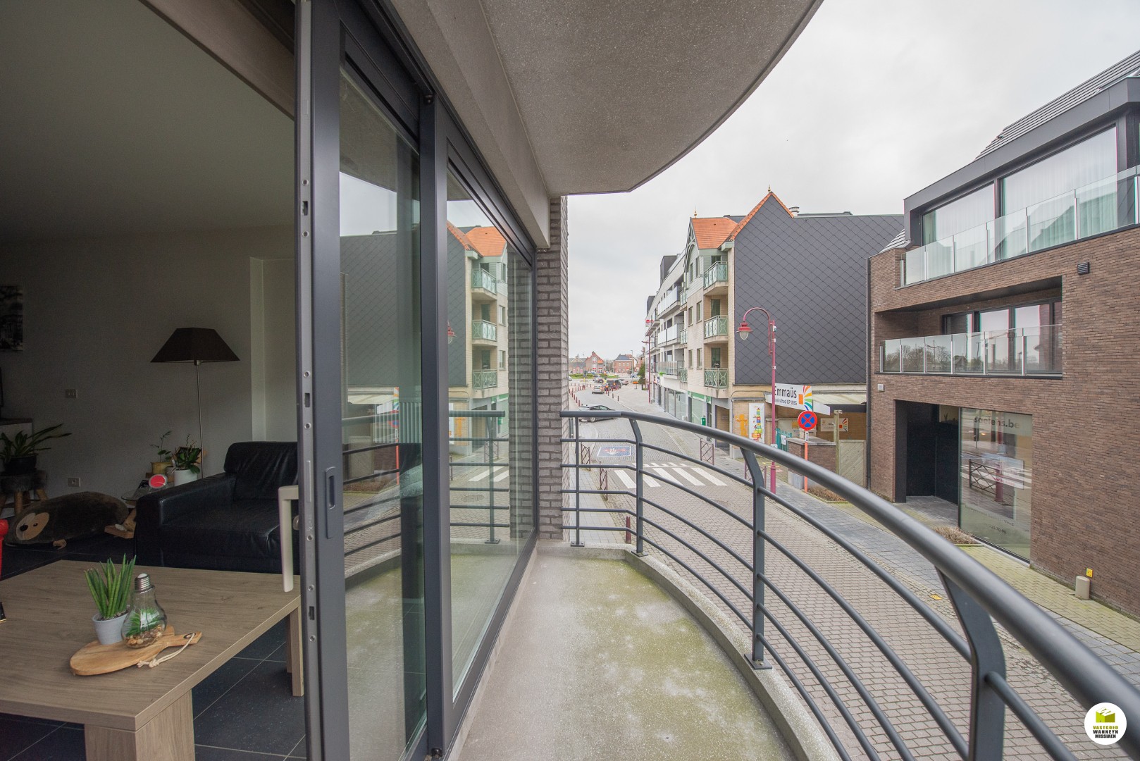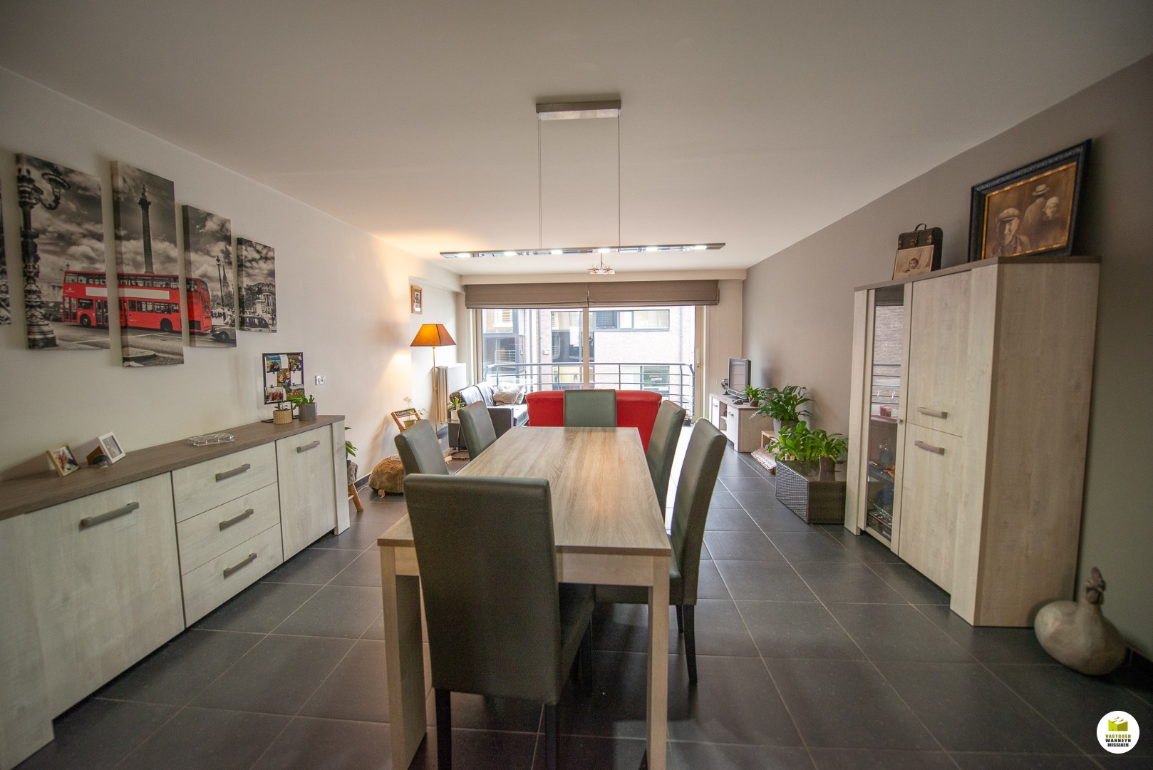 Vooraan de woonkamer heeft u toegang tot het voorste, kleinere terras en de achterkant van de woonkamer sluit mooi aan met de moderne, uitgeruste keuken (oven, vaatwasser, kookplaat, frigo).