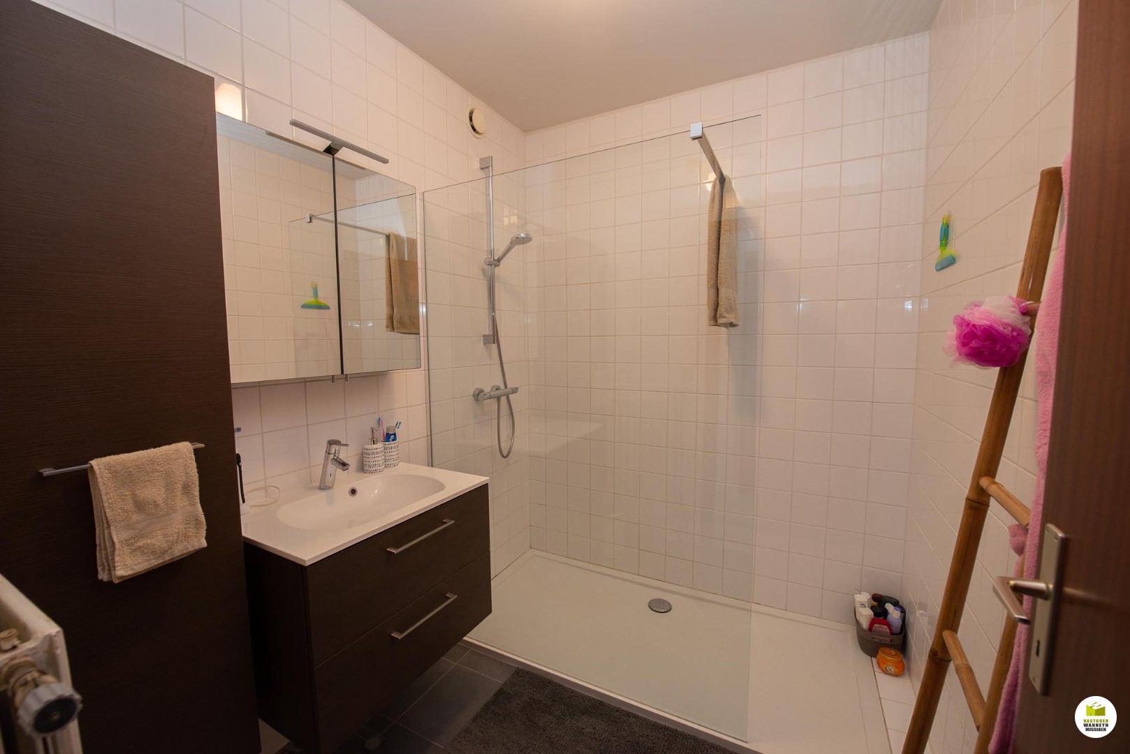 Appartement op 1ste verdiep met lichtrijke leefruimte, keukenhoek met fornuis en frigo met diepvriesvak, berging/wasplaats, afzonderlijk toilet, badkamer met lavabo en inloopdouche, 2 slaapkamers (13,5m2 en 10m2) met toegang tot balkon met berging. Garagebox inbegrepen in prijs! Syndic: €25/maand (incl brandverzekering!). Vrij vanaf 01//07/2021. Zeer centrale ligging en goede bereikbaarheid: vlakbij het vernieuwde station, E40 en winkels. Voor meer info of bezoek: 050/70 34 35