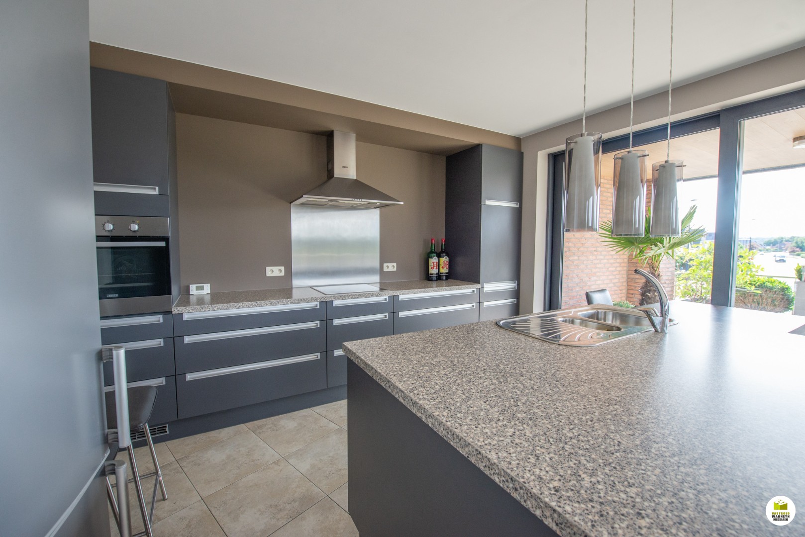 Indeling: Ruime inkomhal met toegang tot onder andere het apart gastentoilet. Ook toegang tot een eerste slaapkamer, die momenteel gebruikt wordt als dressing. De tweede slaapkamer is de grootste en biedt meteen ook voldoende ruimte voor een grote kleerkast, dubbel bed en nog een commode. Verder is de badkamer gelegen. Het raam zorgt voor het nodige natuurlijk daglicht. De ruime badkamer is uitgerust met een dubbele lavabo, tweede toilet, inloopdouche én ligbad. Terug in de inkom is er een rechtstreekse deur naar de berging. In de berging is er aansluiting voor wasmachine, diepvriezer, droogkast, warmtepomp... De praktisch berging is zo ontworpen dat ze ook via een andere deur in verbinding staat met de keuken! Als we dus doorlopen in de berging, komen we in de keuken terecht. De keuken is praktisch ingericht en uitgerust met alle comfort (kookplaat, frigo, oven, vaatwas, dampkap...). Het is er heerlijk koken aan het kookeiland met zicht op de leefruimte en het terras! ... Palend aan de open keuken is de leefruimte te vinden. De leefruimte en keuken genieten dankzij de grote glaspartijen van veel natuurlijk daglicht en staan in contact met het zongerichte terras. Tot slot is er een garage met automatische poort, alsook een bovengrondse staanplaats.
