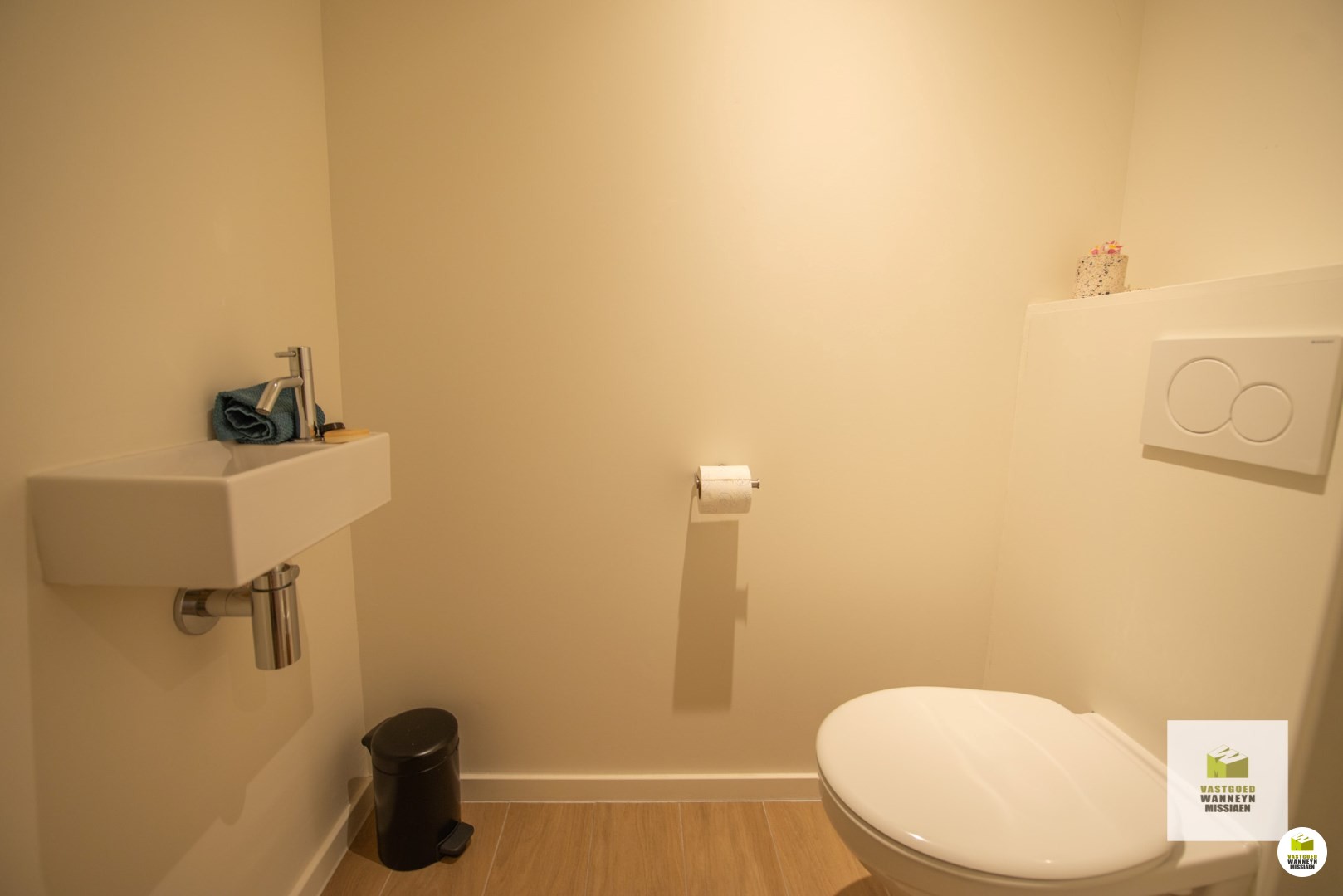 Inkom met nis waar mogelijkheid is tot het plaatsen van een vestiairekast of kapstok. Vervolgens een berging waar aansluiting van wasmachine en droogkast zit. Deze berging is functioneel uitgerust met een lavabo. Verder is een apart gastentoilet voorzien, alsook een extra praktische berging waar eventueel een diepvries geplaatst kan worden alsook extra stockage.