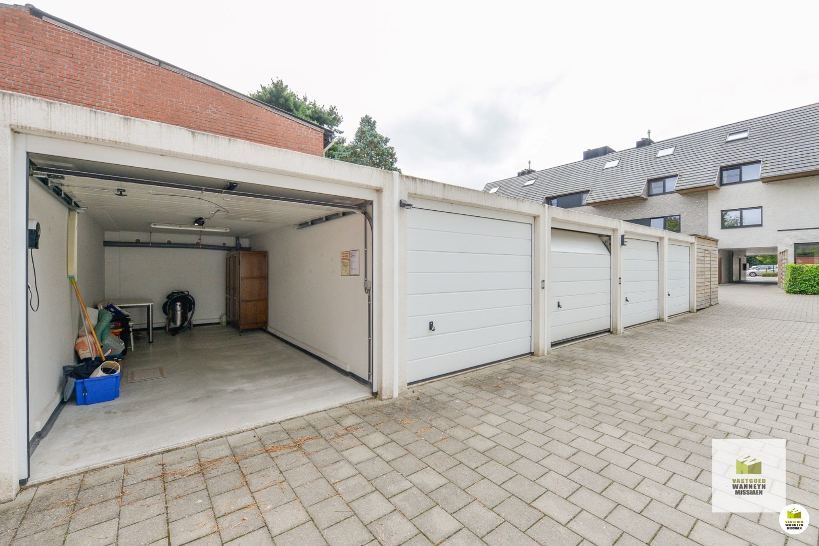 Er is een ruime garagebox voorzien achteraan het terrein. Deze is inbegrepen in de huurprijs.