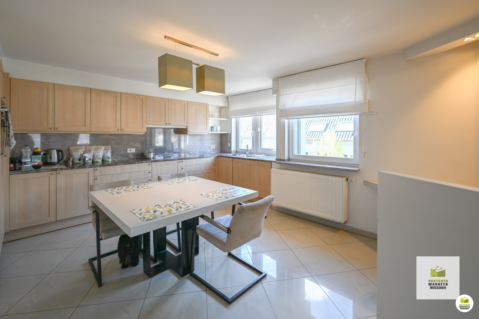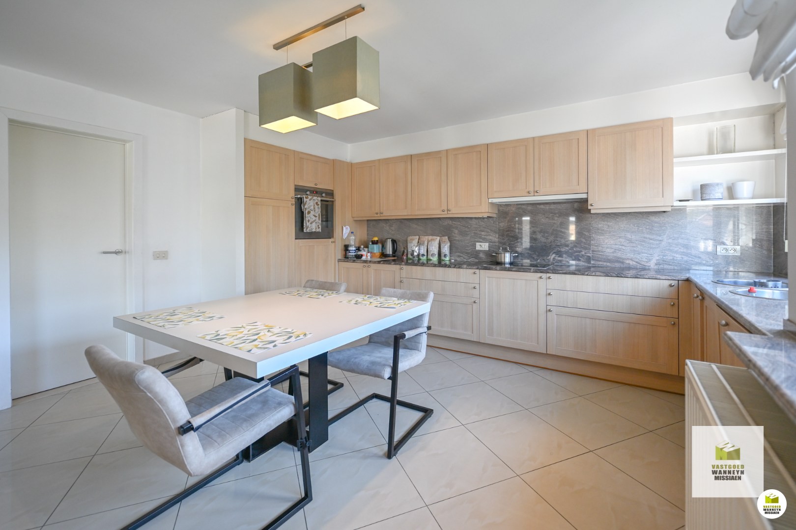 De inkomhal is voorzien van een inbouwkast en een apart toilet. De woonkamer is lichtrijk en sluit aan op de open, volledig ingerichte keuken met o.a. een vaatwasser, koelkast en oven.