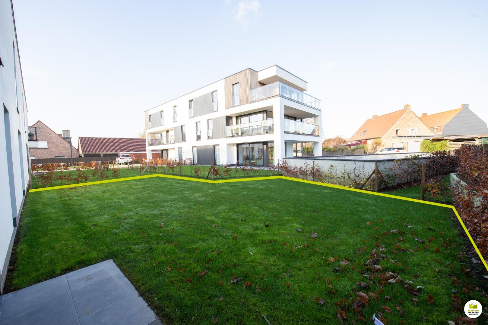 Er is een tuin voor het appartement en een tuin achter het appartement, dit onderhoud zit in de syndickosten.