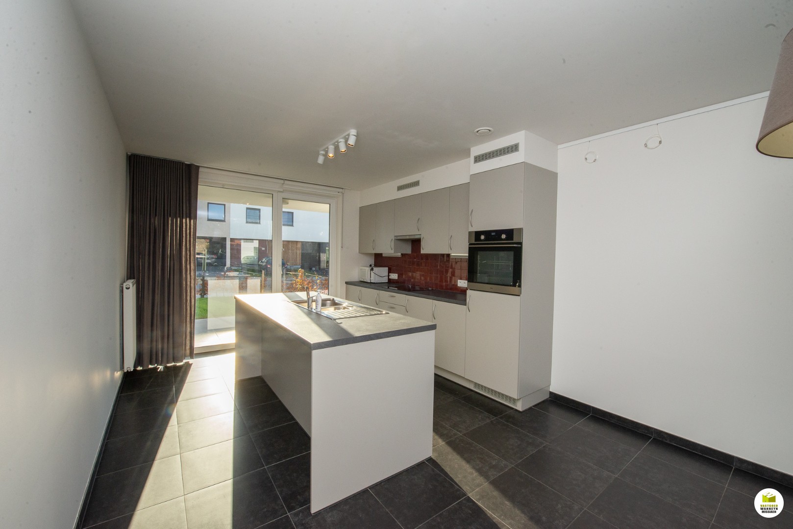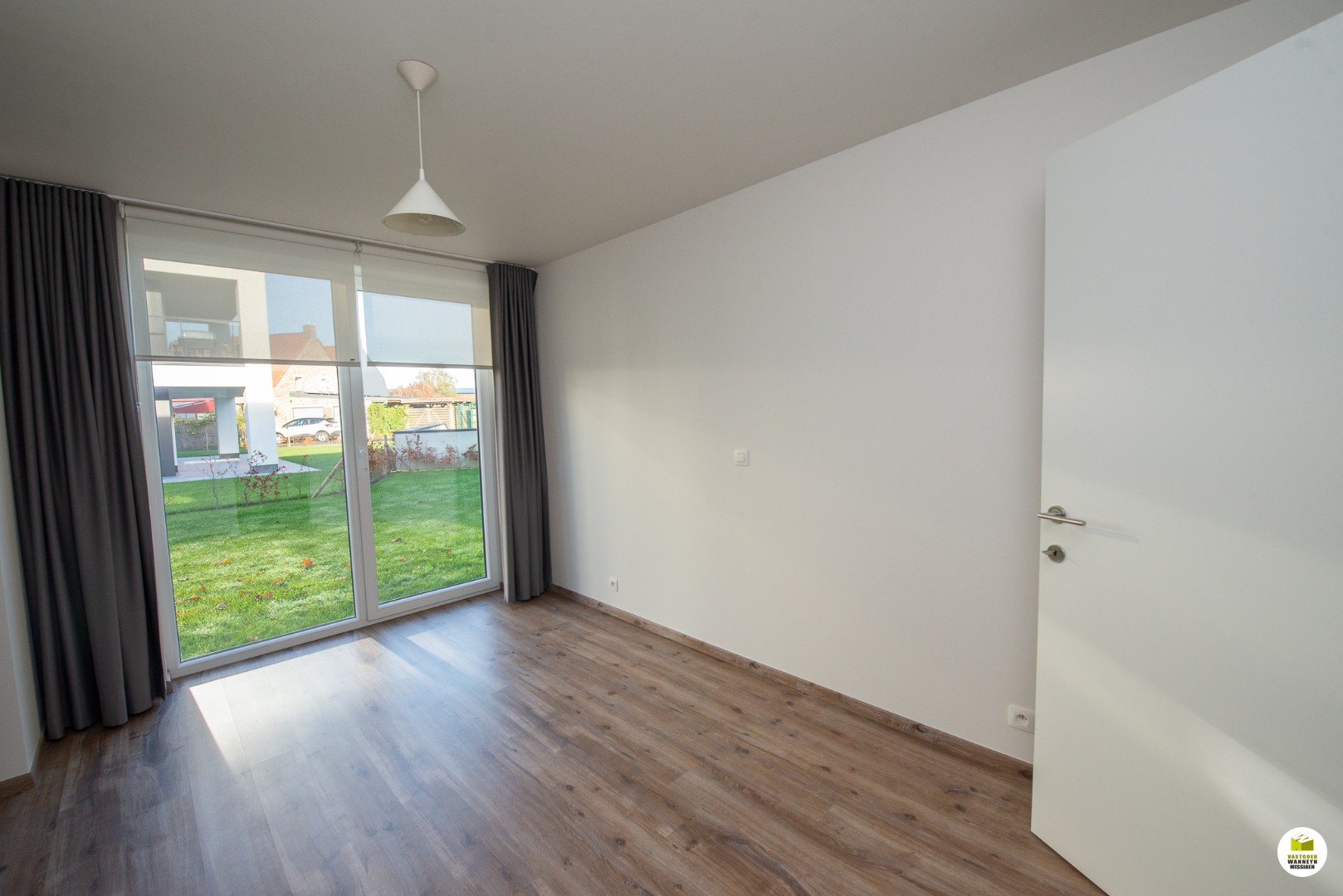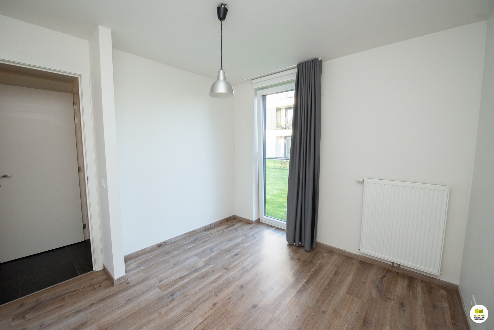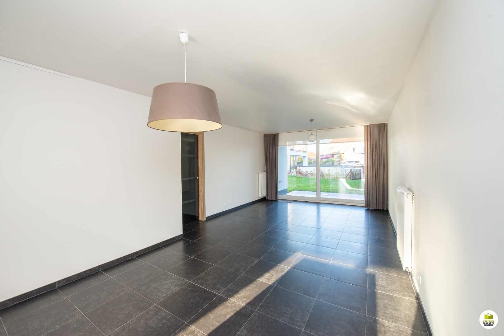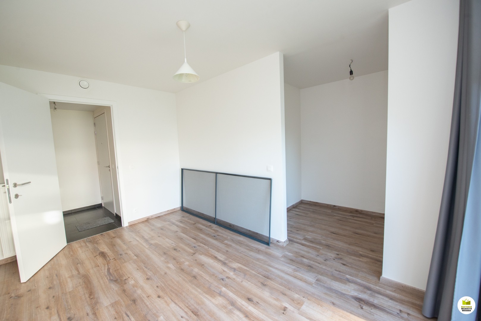 In de leefruimte zijn er gordijnen voorzien.