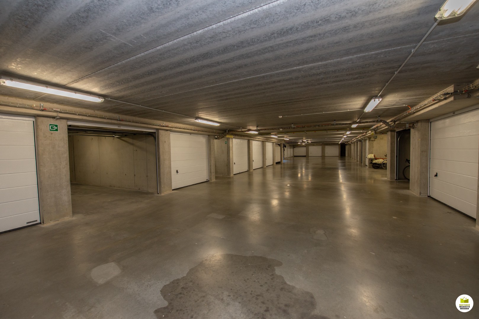 Er is een ondergronds garagebox met sectionale poort, alsook een gemeenschappelijke fietsenstalling.