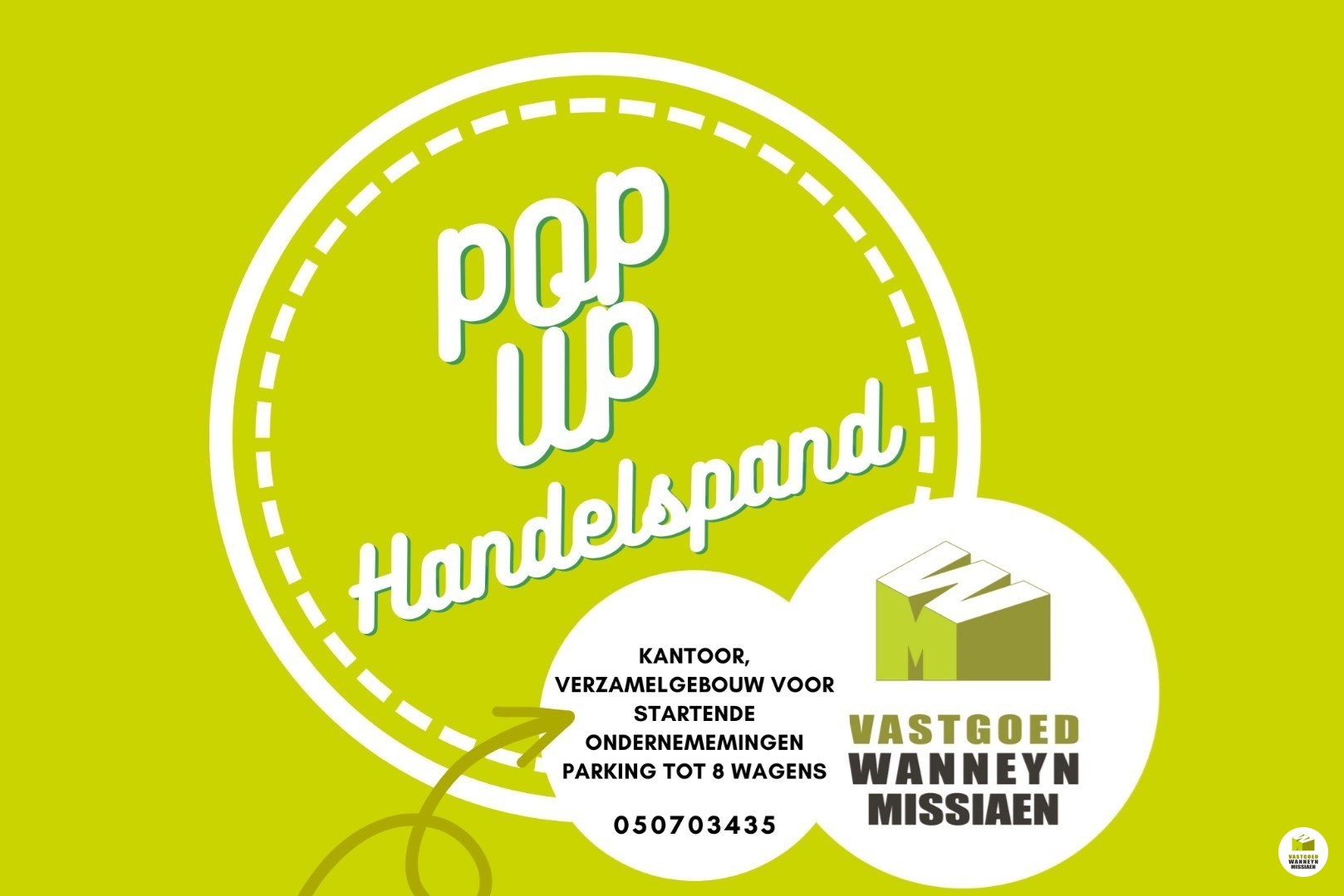 Handelspand met 5 aparte burelen en 8 parkeerplaatsen - Pop up verhuur (1 jaar) is ook mogelijk!