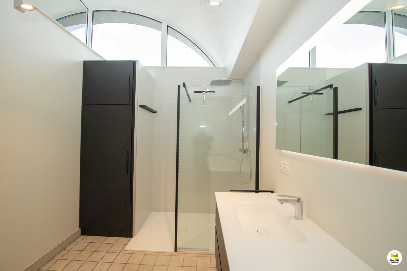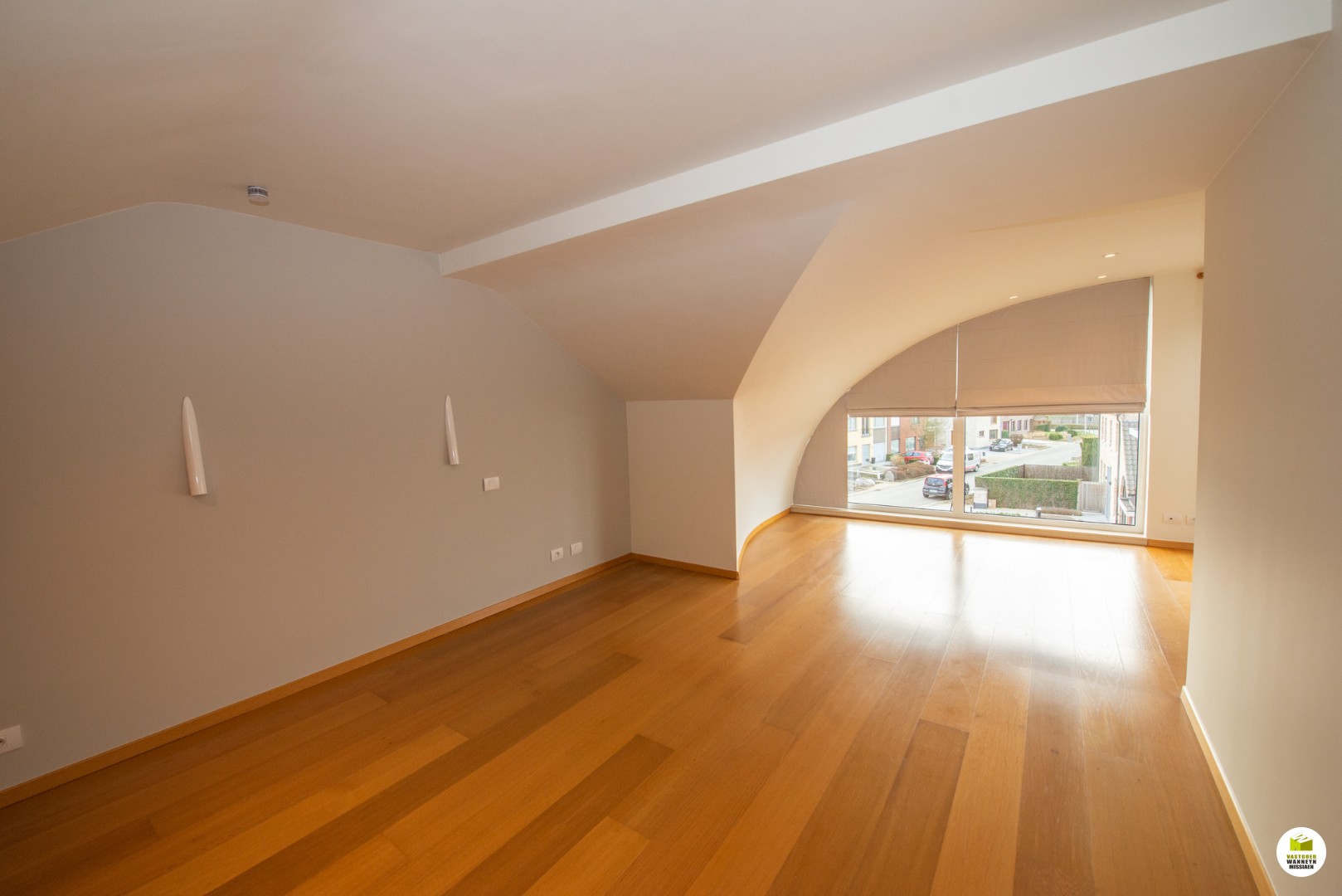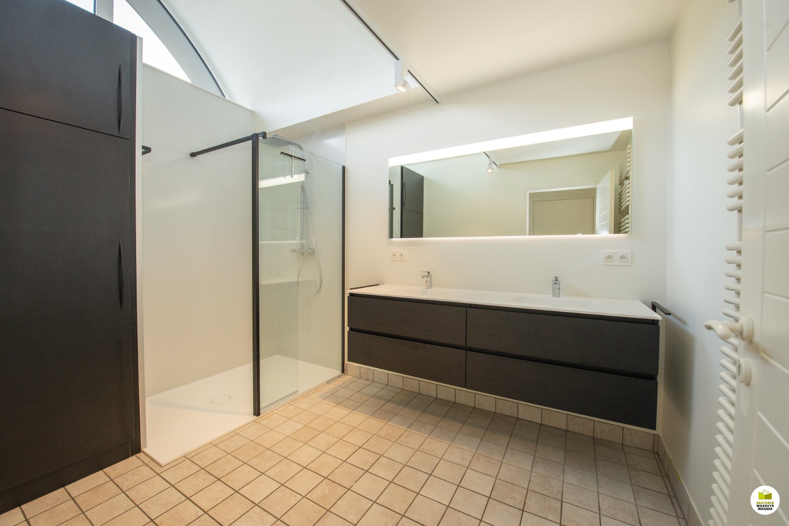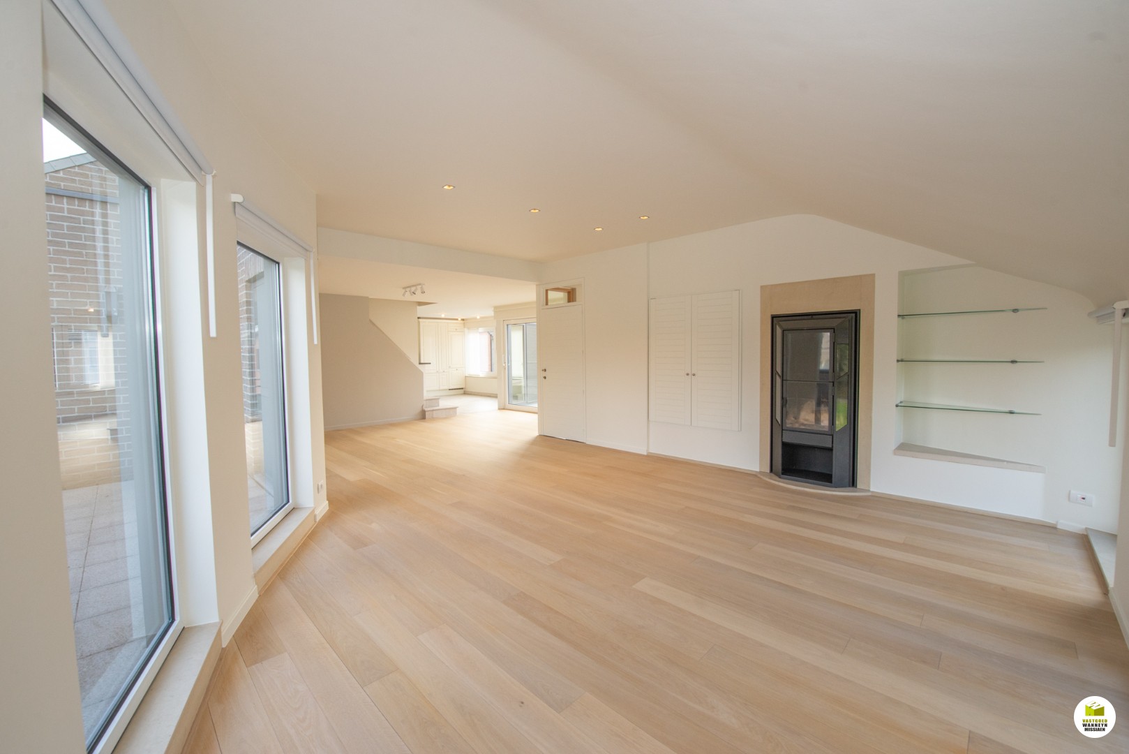 Vloerverwarming in living op mazout. Alle verlichting is op led.