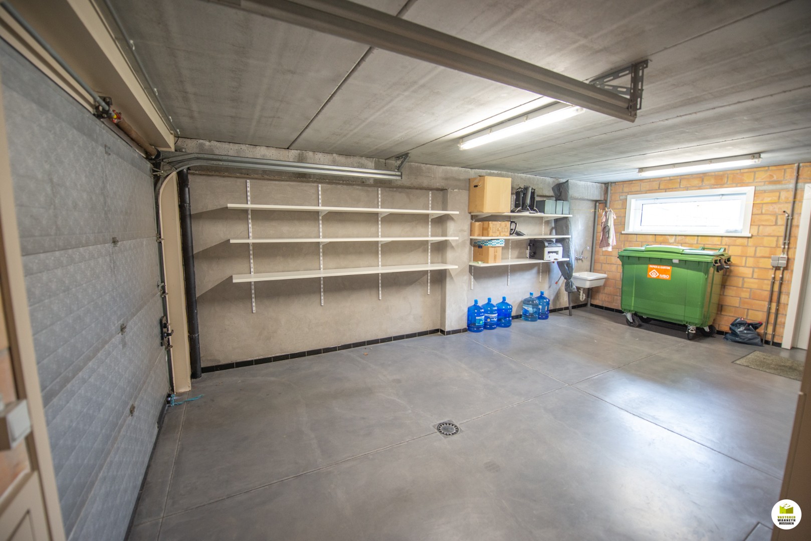Garage met extra stockageruimte, de garage wordt deels ook gebruikt door het kantoor die zich op het gelijkvloers bevindt.