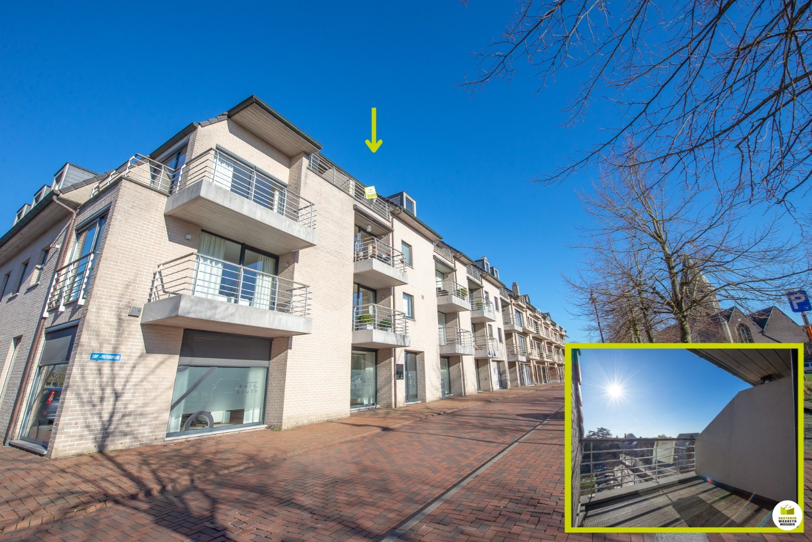 Deze energiezuinige penthouse is gelegen in het centrum van Oostkamp, met zicht op het Sint-Pietersplein. Vanuit deze locatie is er een zeer vlotte verbinding met verschillende uitvalswegen (E40, richting Brugge, Beernem...). Alle winkels zijn er op wandelafstand: winkels, scholen, bakker, slagerij...