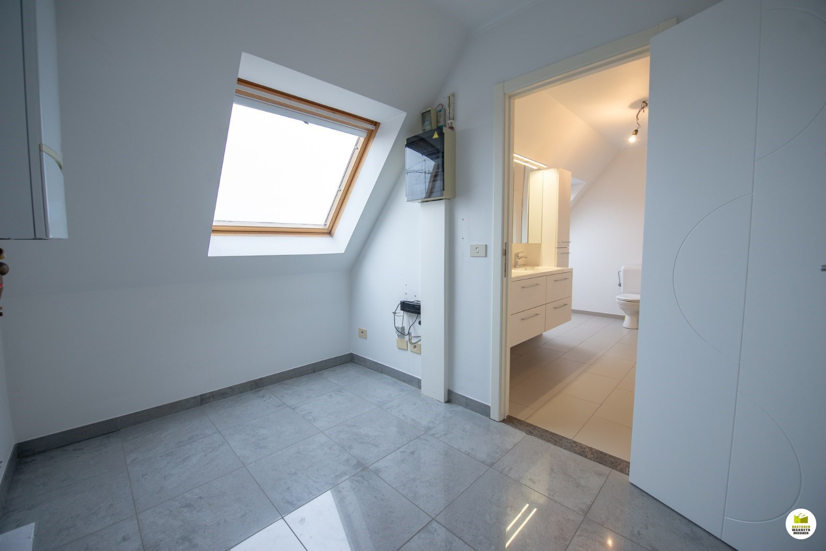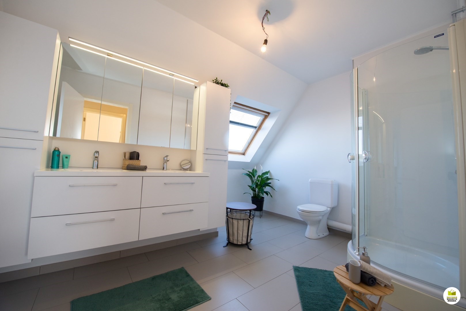 De slaapkamers zijn beide zeer ruim (16 m2 en 27m2!). De tweede slaapkamer is bovendien voorzien van praktische inbouwkasten en een nis met televisieaansluiting. In de slaapkamers zijn veluxen voorzien van gordijnen, vliegenramen én manuele buitenste zonneweringen. De badkamer is uitgerust met een dubbele lavabo met bijhorende praktische kasten, een tweede toilet en een douchecel. Het kraanwerk van de douche en de wandbekleding zijn 3 jaar geleden vernieuwd, alsook werd het badkamermeubel vernieuwd. Aansluitend aan de badkamer is een ruime berging/wasplaats voorzien.