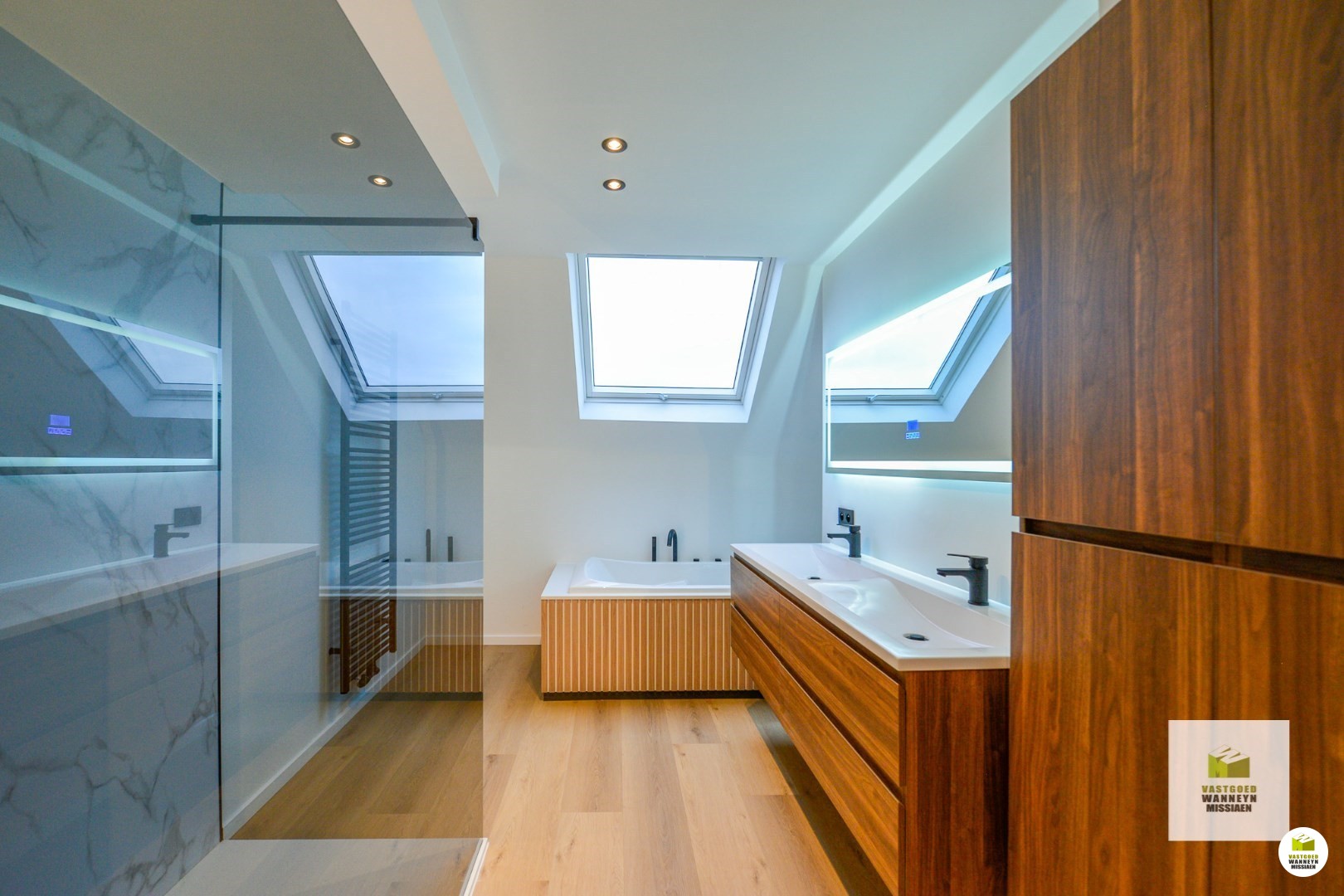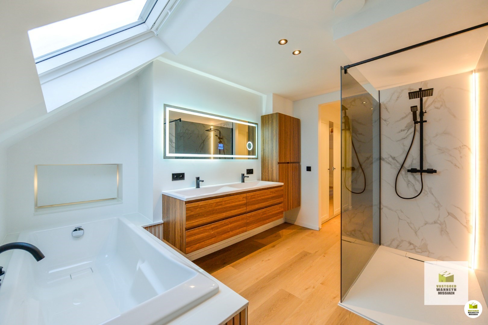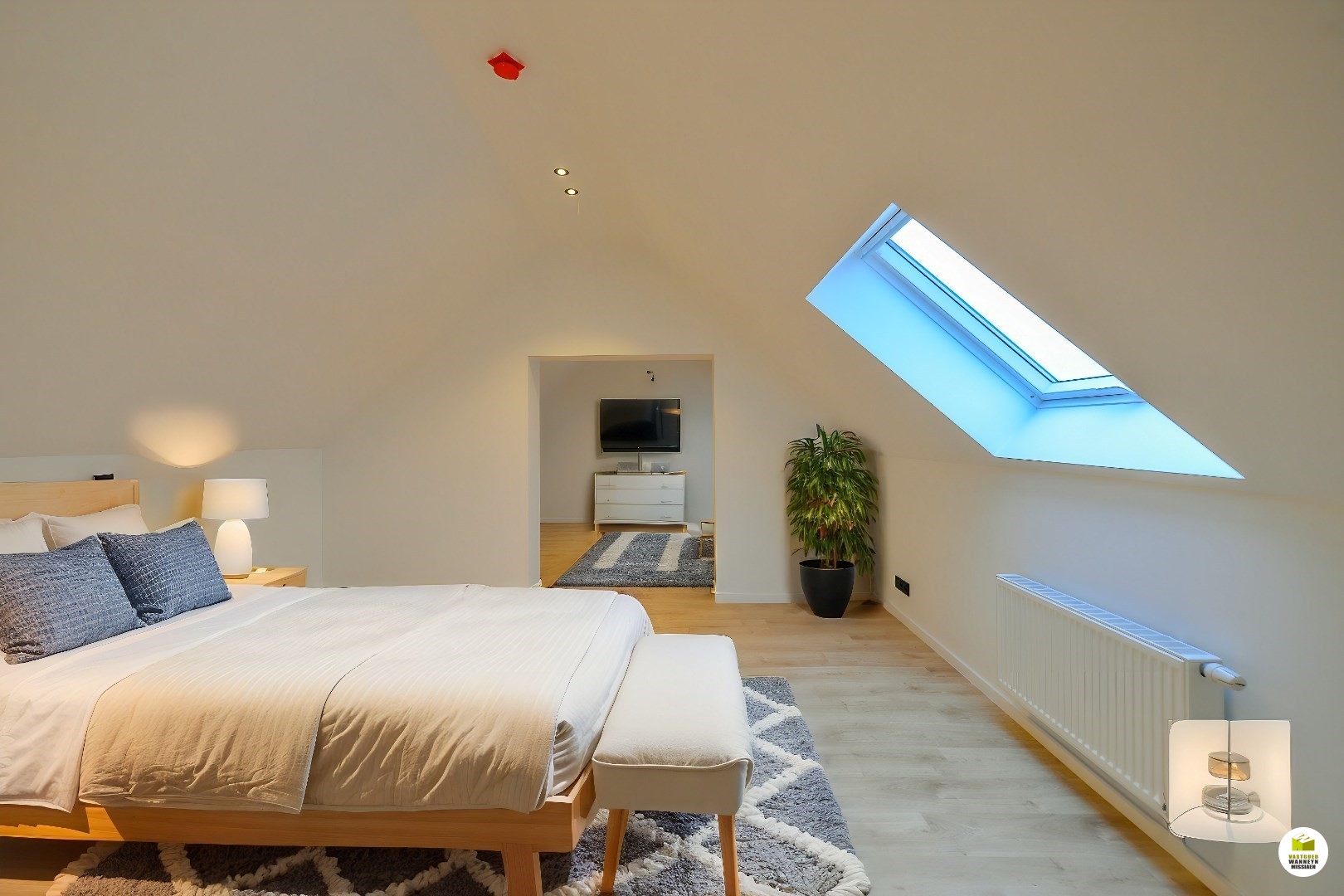Indeling: binnenkomen in de aparte inkomhal met toegang tot het eerste verdiep, waar men binnenkomt in de leefruimte met open keuken. Aan de voorkant en dus vanuit de zetel is er zicht op de kerk van Zwevezele. De stijlvolle keuken werd uitgerust met alle toestellen die het hedendaags comfort garanderen: ingebouwde vaatwas, ingebouwde frigo, ingebouwde oven en microgolf, kookplaat met ingebouwde dampkap, kookeiland waaraan u ook kunt eten. Palend aan de keuken is een praktische berging/technische ruimte gelegen. Vanuit de keuken is ook toegang naar een aparte gang met ingebouwde kasten, apart toilet en ruime berging/wasplaats. Via de brede ... trap komen we op de volgende verdieping. Deze ruime hal kan dienst doen als bureau- of hobbyruimte ect. Vanuit hier is toegang tot 2 slaapkamers, beiden met een eigen ensuite badkamer. De ene badkamer is via de gang met ingebouwde kasten te bereiken en werd voorzien van een dubbele lavabo, ligbad, ruime inloopdouche... De tweede badkamer is praktisch voorzien van een douche en lavabo. De bovenste verdieping is ingericht met een zolderruimte die ook dienst kan doen als 4e/5e slaapkamer, mancave, hobbyruimte, bureauruimte, speelkamer ect. Er is tot slot nog een privatieve gelijkvloerse fietsenberging/berging, alsook is er een autostaanplaats. Er zijn geen gemeenschappelijke kosten!