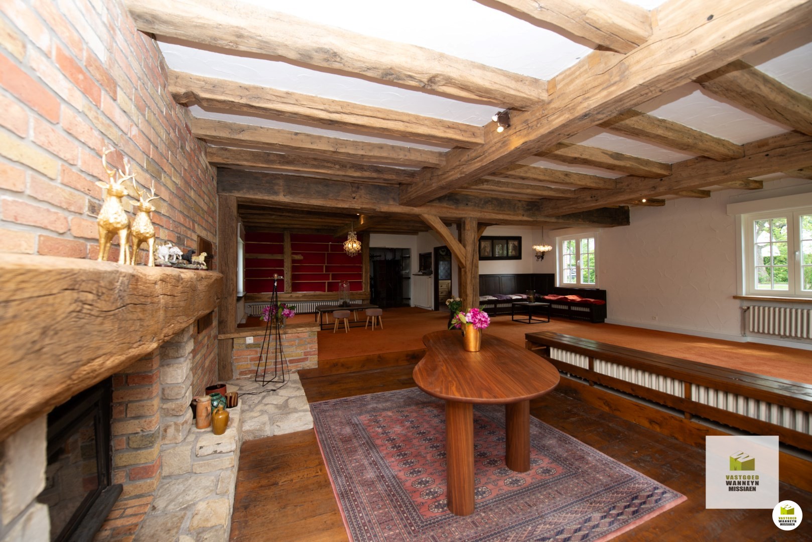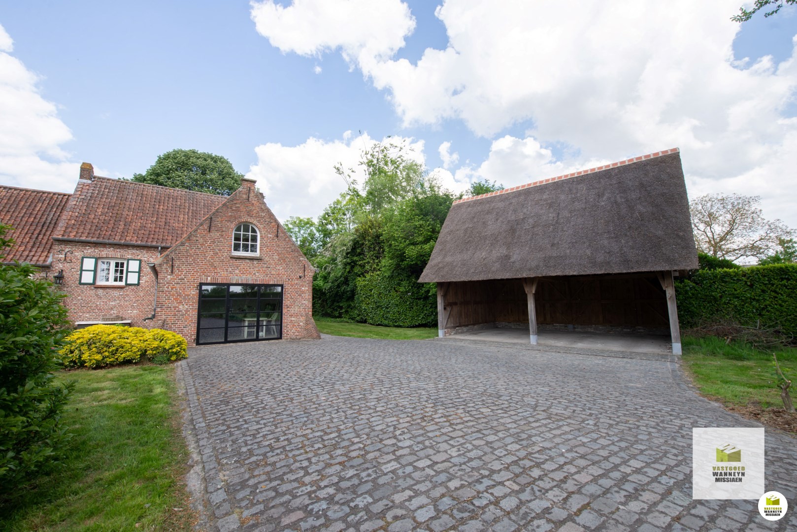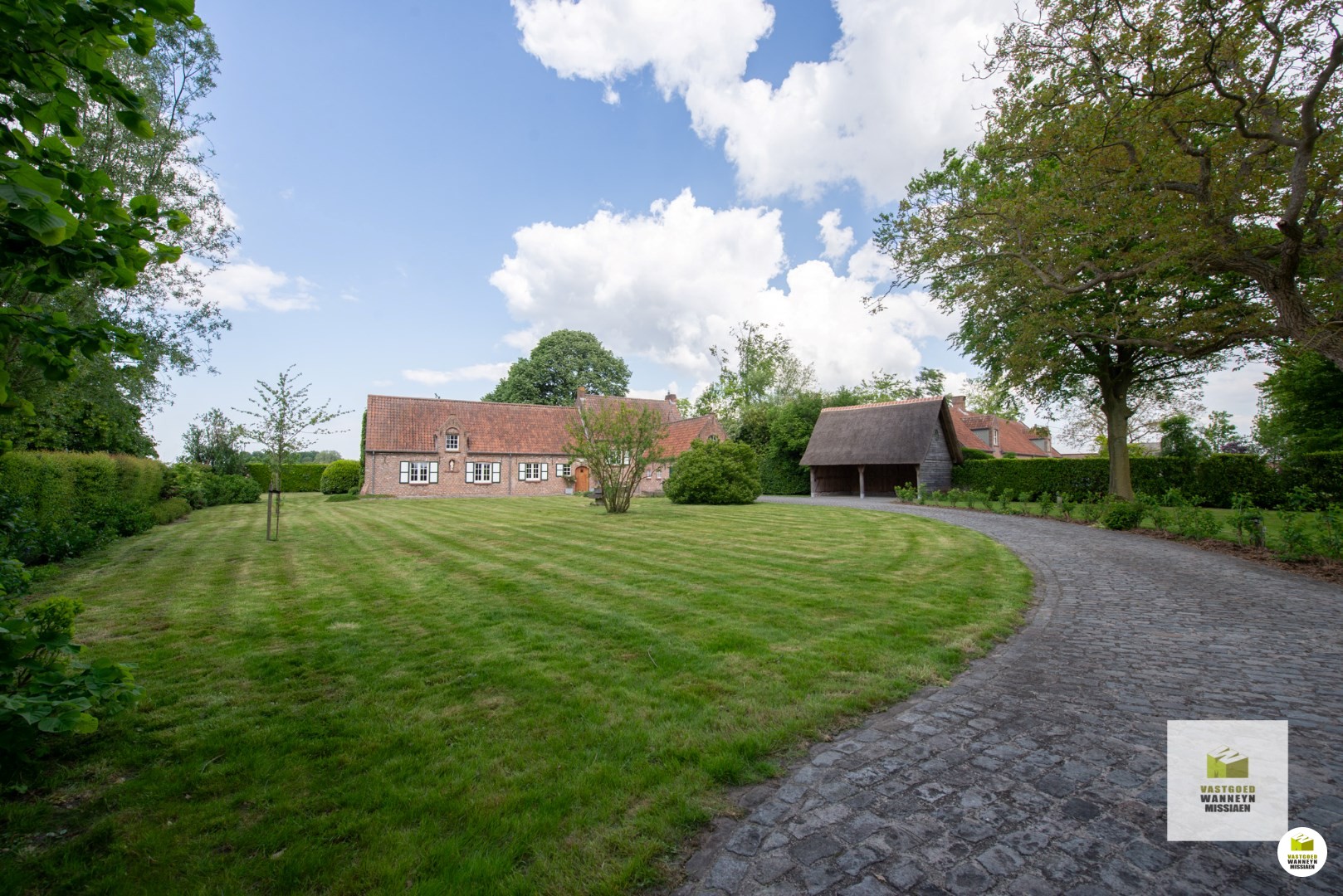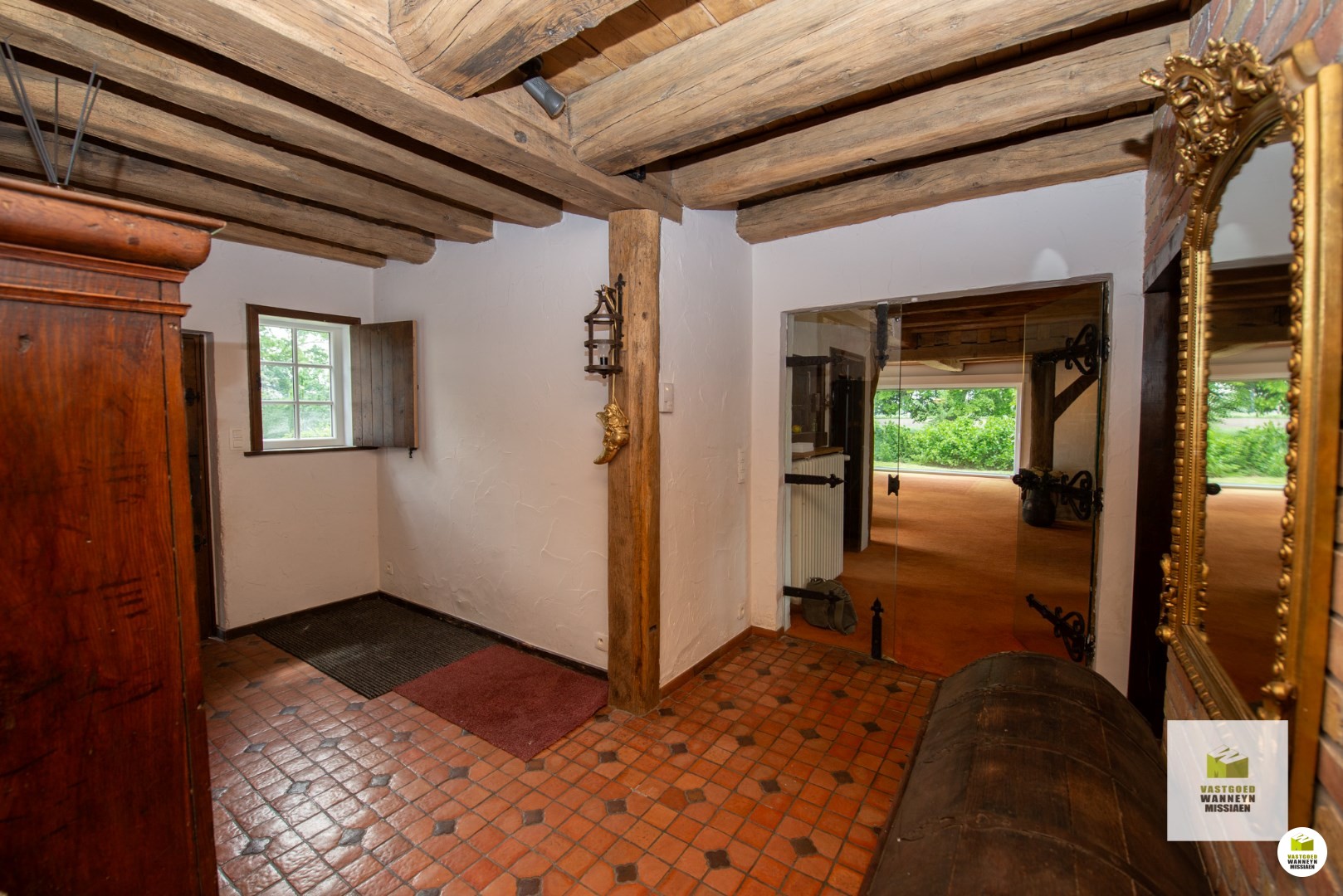 Op een unieke ligging vindt u dit karaktervolle landhuis op een afgesloten domein van 3.000m2. Via de landweg komt u tot bij de automatische poort die zorgt maximale privacy. Het landhuis bevindt zich temidden het groen en heeft volgende indeling: inkomhall met gastentoilet, leefruimte met verlaagde zithoek en een gezellige houtcassette, keuken uitgerust met kookplaat, oven en vaatwas, afzonderlijke berging/wasplaats, 2 ruime slaapkamers waarvan 1 met ingebouwde kasten alsook 1 één-persoonsslaapkamer, een vernieuwde badkamer met inloopdouche, dubbele lavabo en toilet. Er is een grote kelder, toegankelijk via een buitenluik, waar zich ook de mazouttank bevindt. De vroegere garage is bruikbaar als hobbyruimte. Tenslotte is er een dubbele eiken carport met rieten dak.