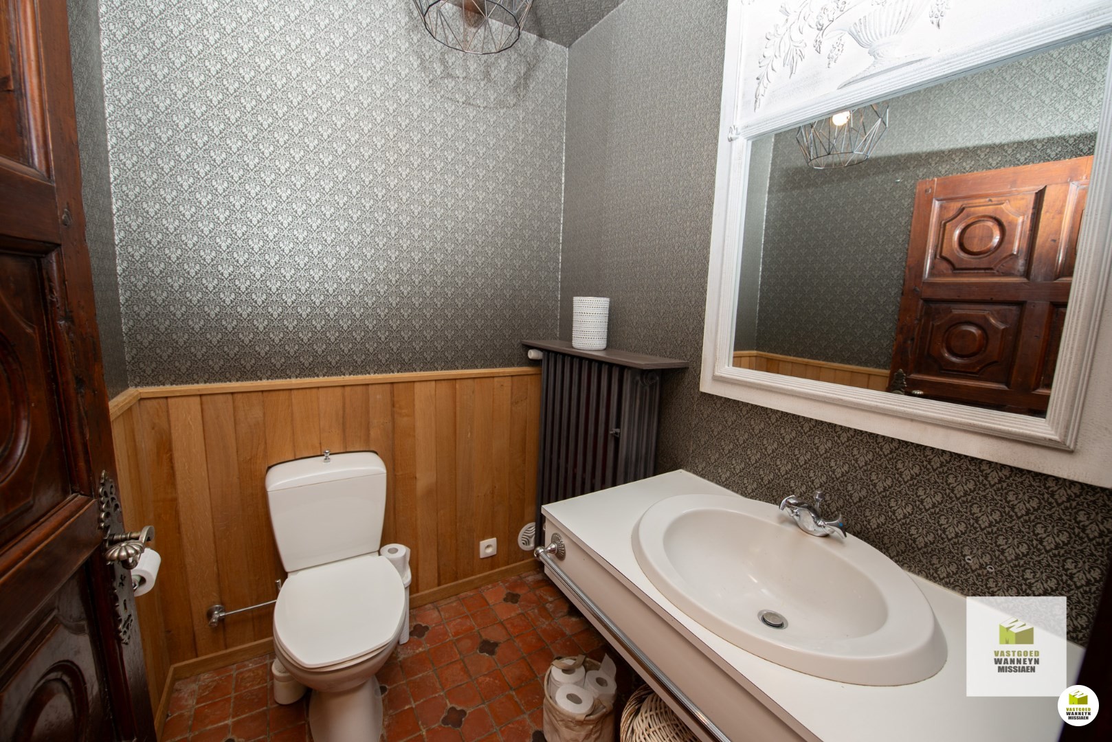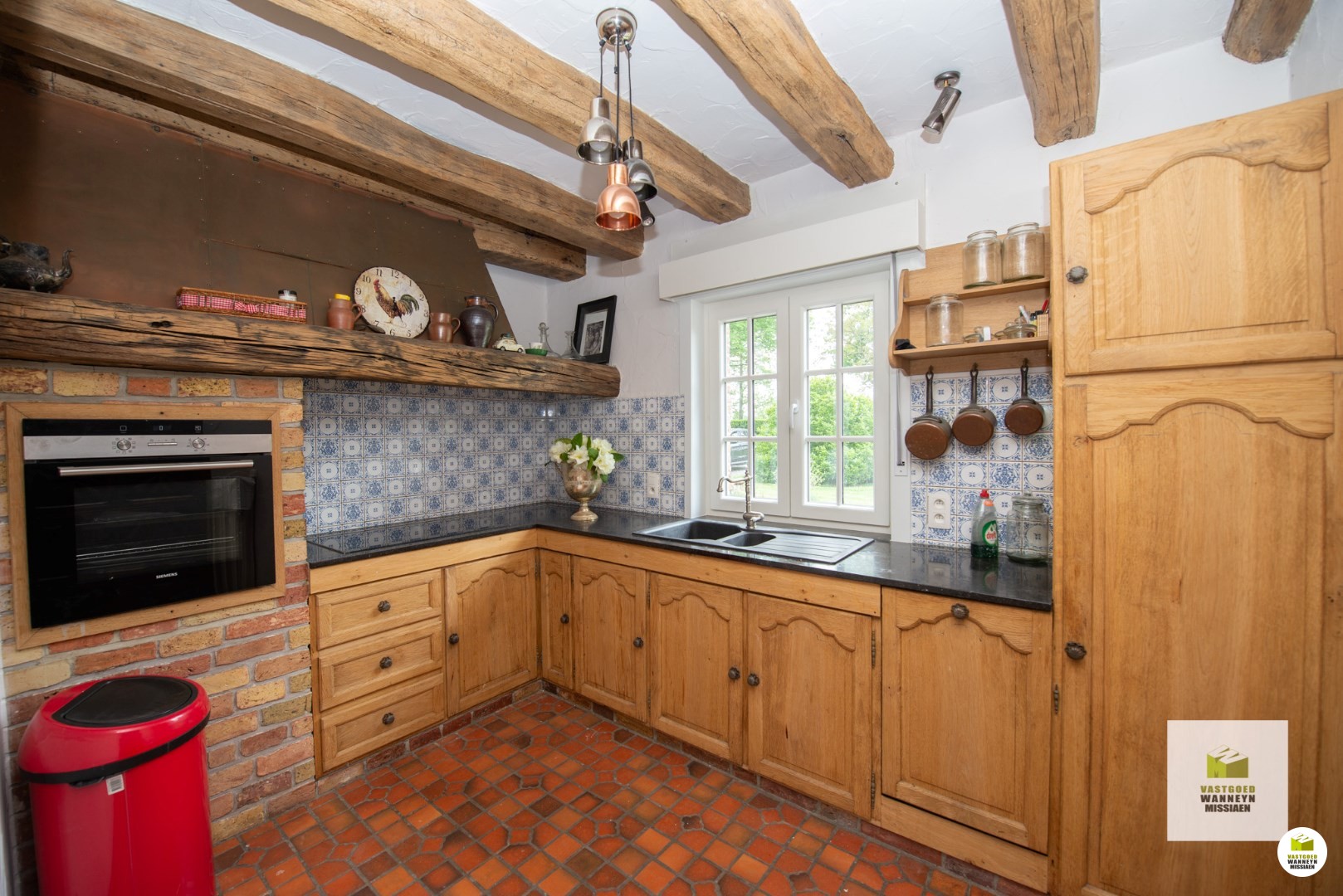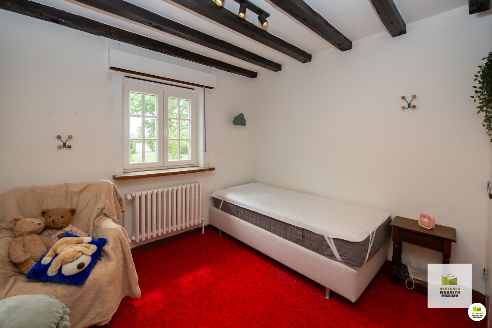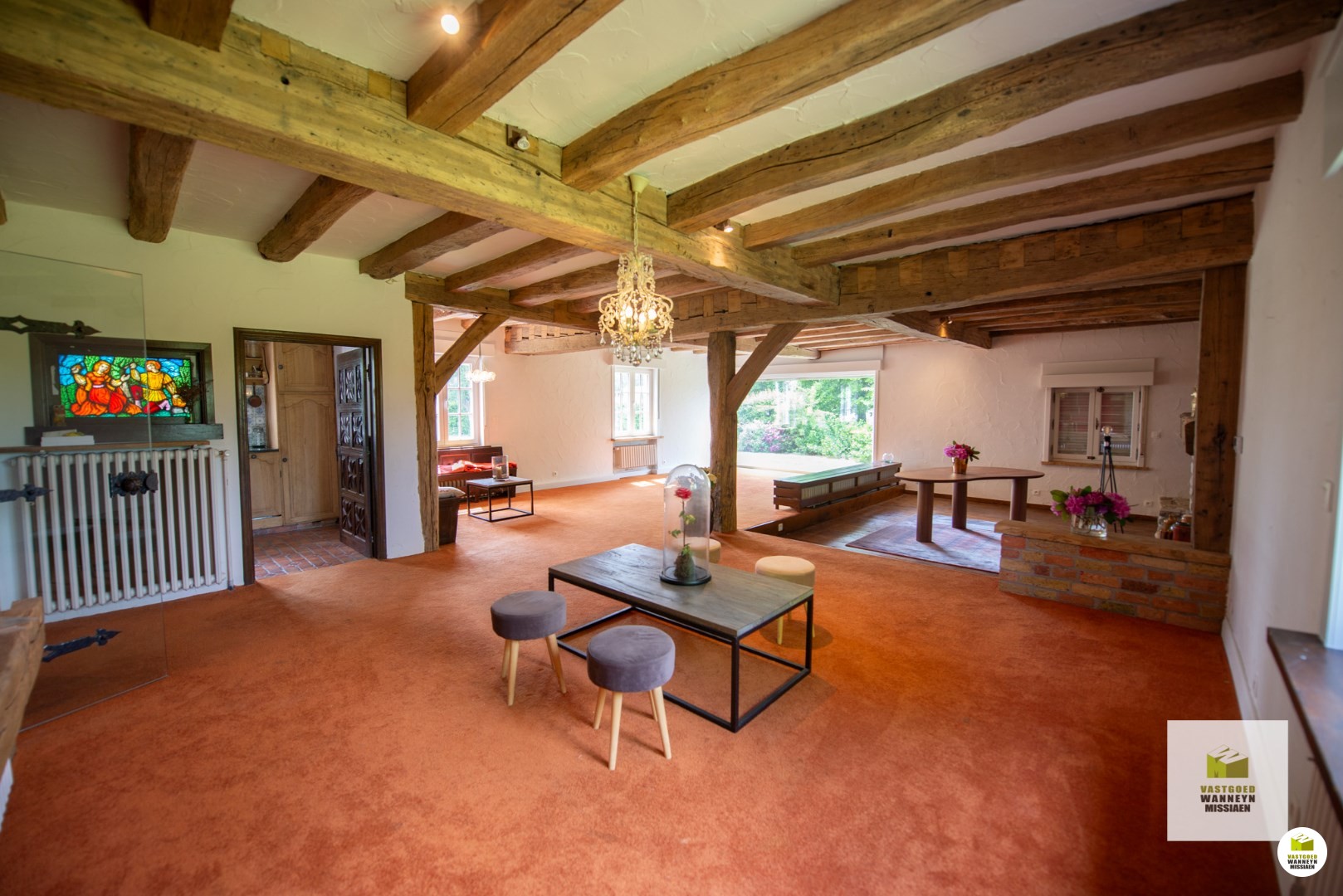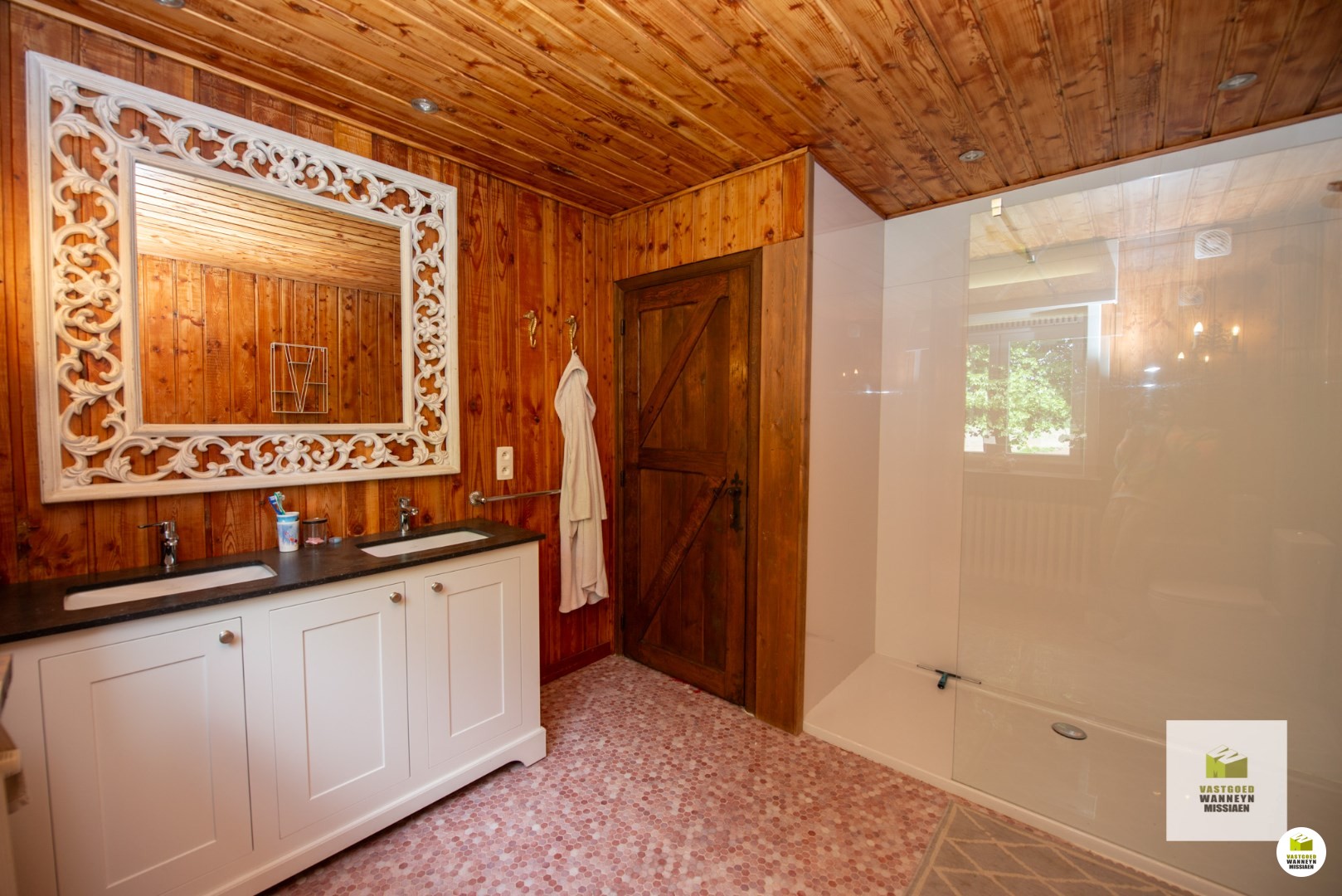 Op een unieke ligging vindt u dit karaktervolle landhuis op een afgesloten domein van 3.000m2. Via de landweg komt u tot bij de automatische poort die zorgt maximale privacy. Het landhuis bevindt zich temidden het groen en heeft volgende indeling: inkomhall met gastentoilet, leefruimte met verlaagde zithoek en een gezellige houtcassette, keuken uitgerust met kookplaat, oven en vaatwas, afzonderlijke berging/wasplaats, 2 ruime slaapkamers waarvan 1 met ingebouwde kasten alsook 1 één-persoonsslaapkamer, een vernieuwde badkamer met inloopdouche, dubbele lavabo en toilet. Er is een grote kelder, toegankelijk via een buitenluik, waar zich ook de mazouttank bevindt. De vroegere garage is bruikbaar als hobbyruimte. Tenslotte is er een dubbele eiken carport met rieten dak.
