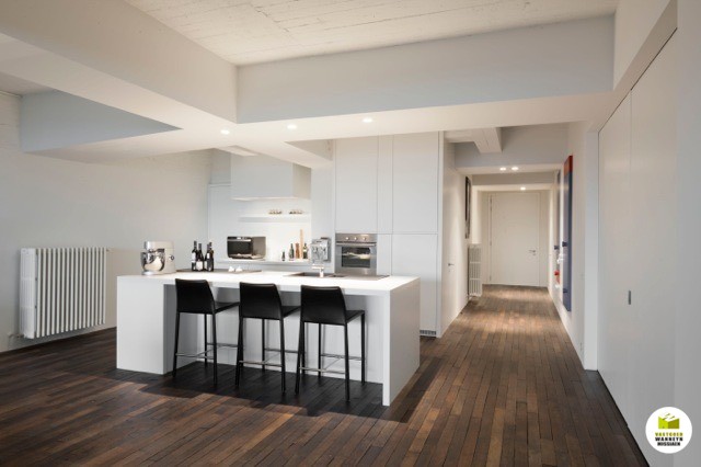 Magnifieke loft met een bewoonbare oppervlakte van 200m2 op toplocatie in centrum Aalter (station, winkels en scholen op wandelafstand). Deze voormalige loods werd omgebouwd tot verschillende prachtige lofts.
