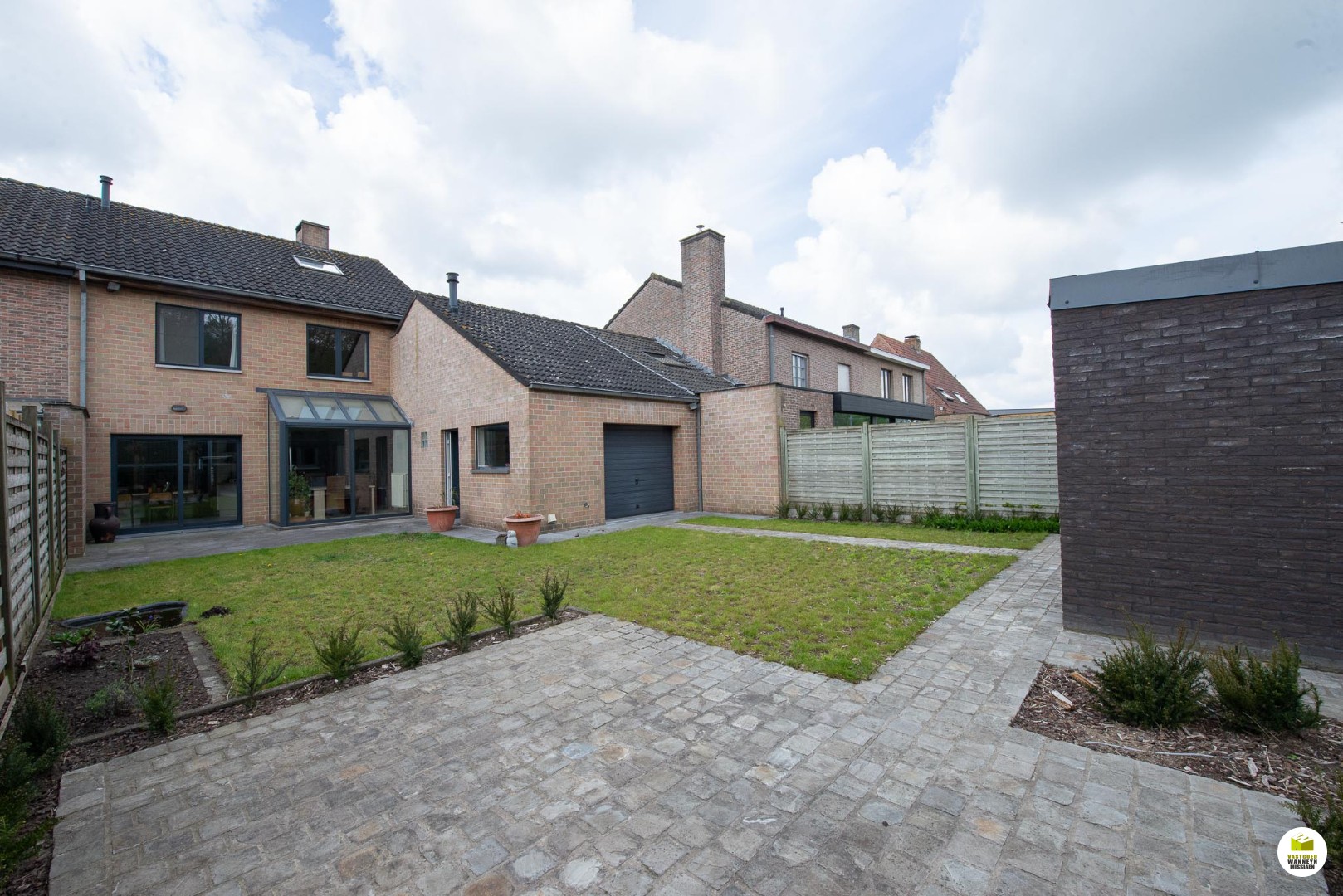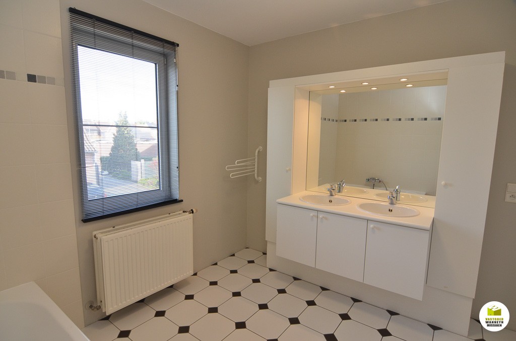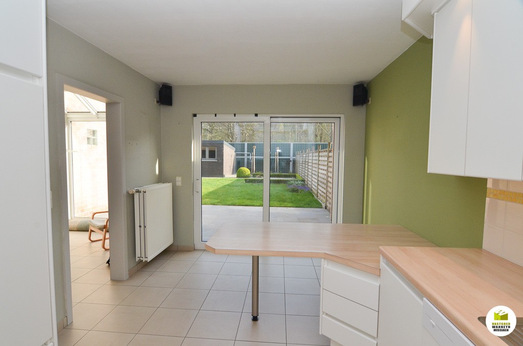 Ruime en instapklare woning met 4slpk, garage en tuin in doodlopende straat nabij station, E40, winkels en school. Gelijkvloers: inkom, leefruimte, salonhoek met houtcassette, ruime en lichtrijke keuken, wasplaats met douche, afzonderlijk toilet, ruime garage met zolder. 1ste verdiep: twee 2-pers slaapkamers waarvan één met ingebouwde kasten en één 1-pers slpk, badkamer met ligbad, dubbele lavabo en toilet. 2de verdiep: zolderkamer met dressing, zolder. Zonnige tuin met tuinhuis. De tuin paalt aan de spoorweg, afgesloten met geluidswerende muur. Verwarming aardgas, zeer goede EPC score (energiezuinige woning).