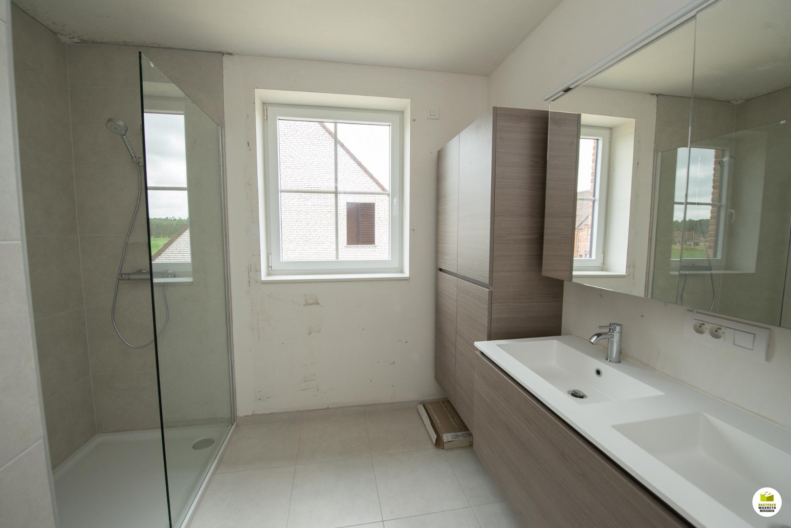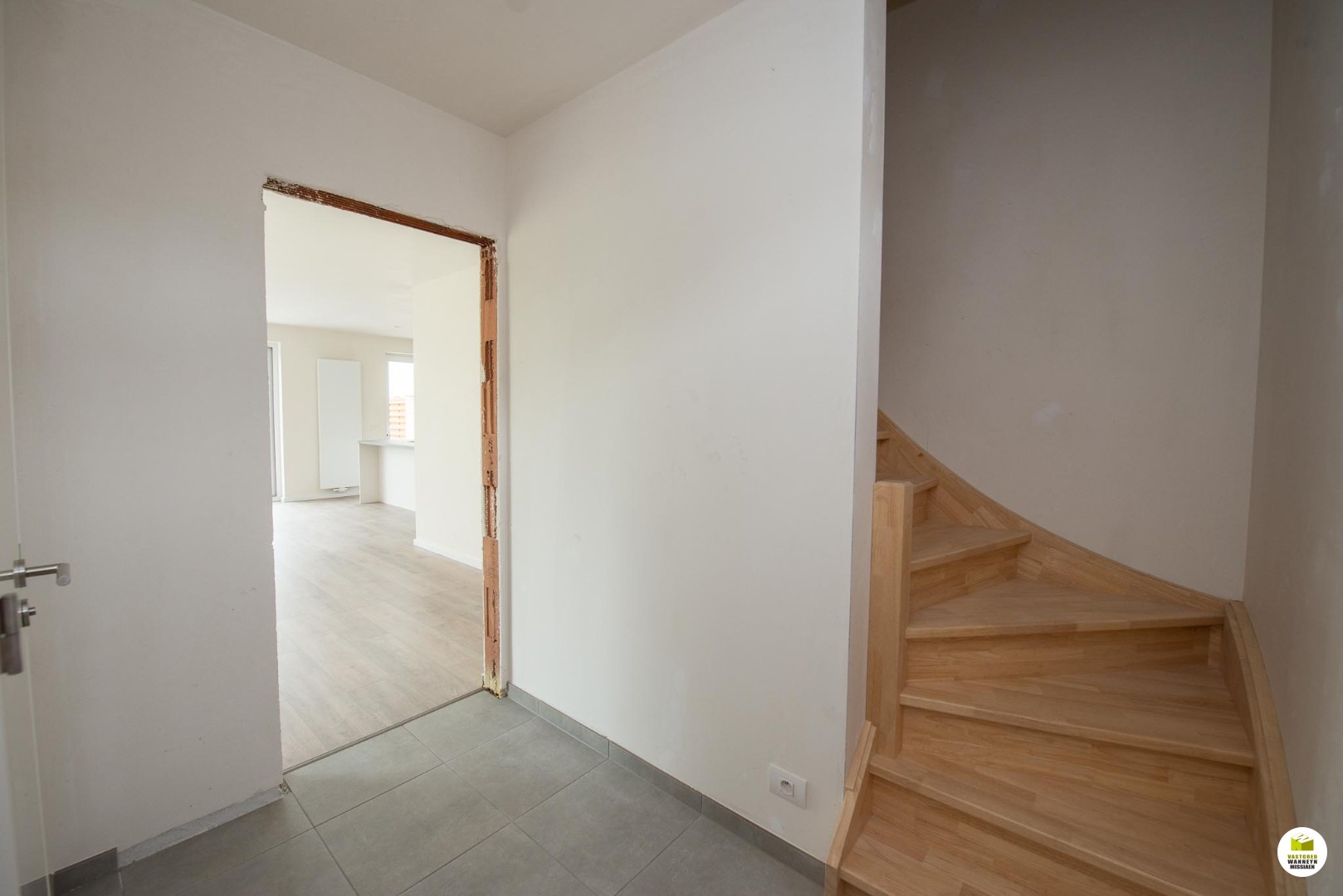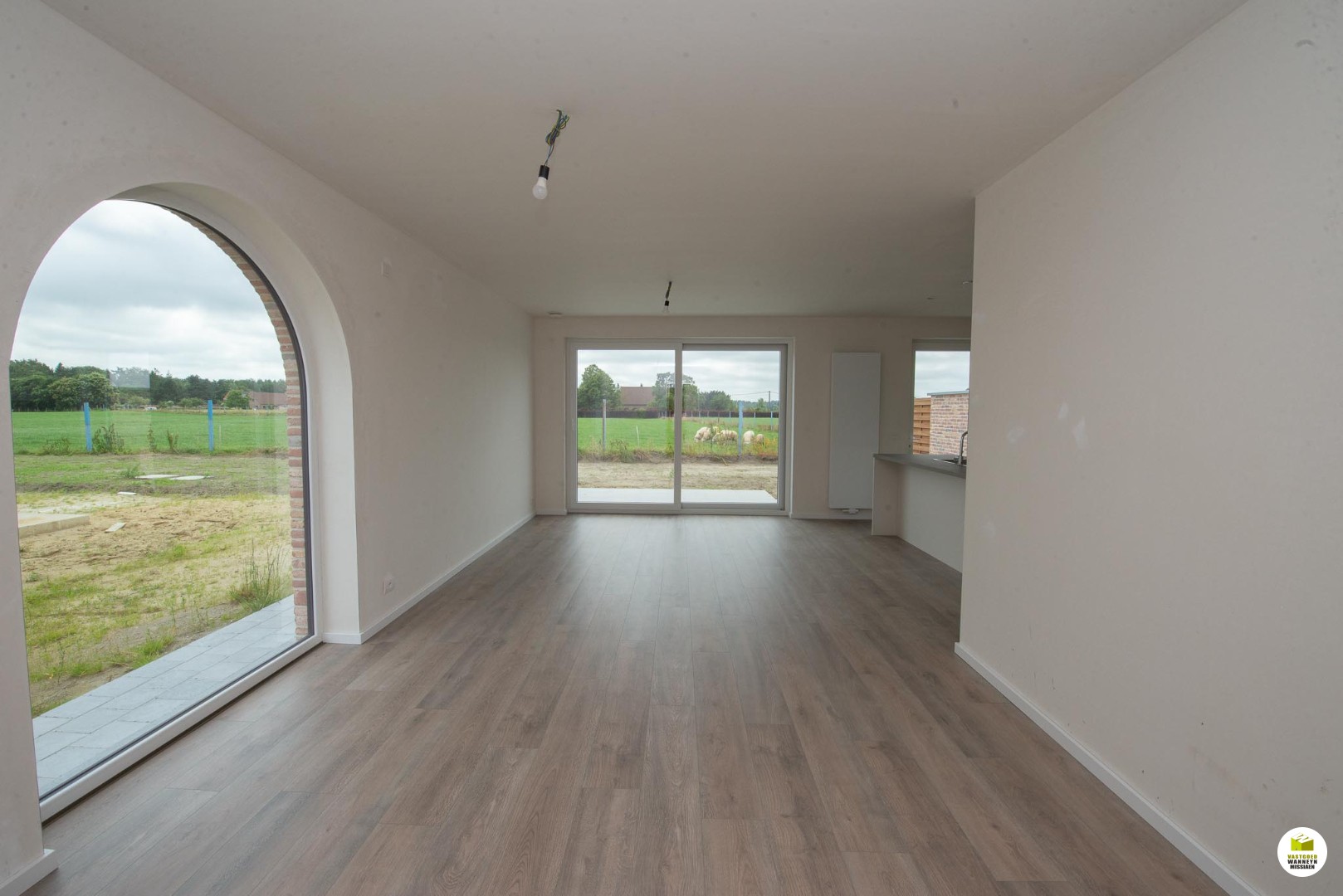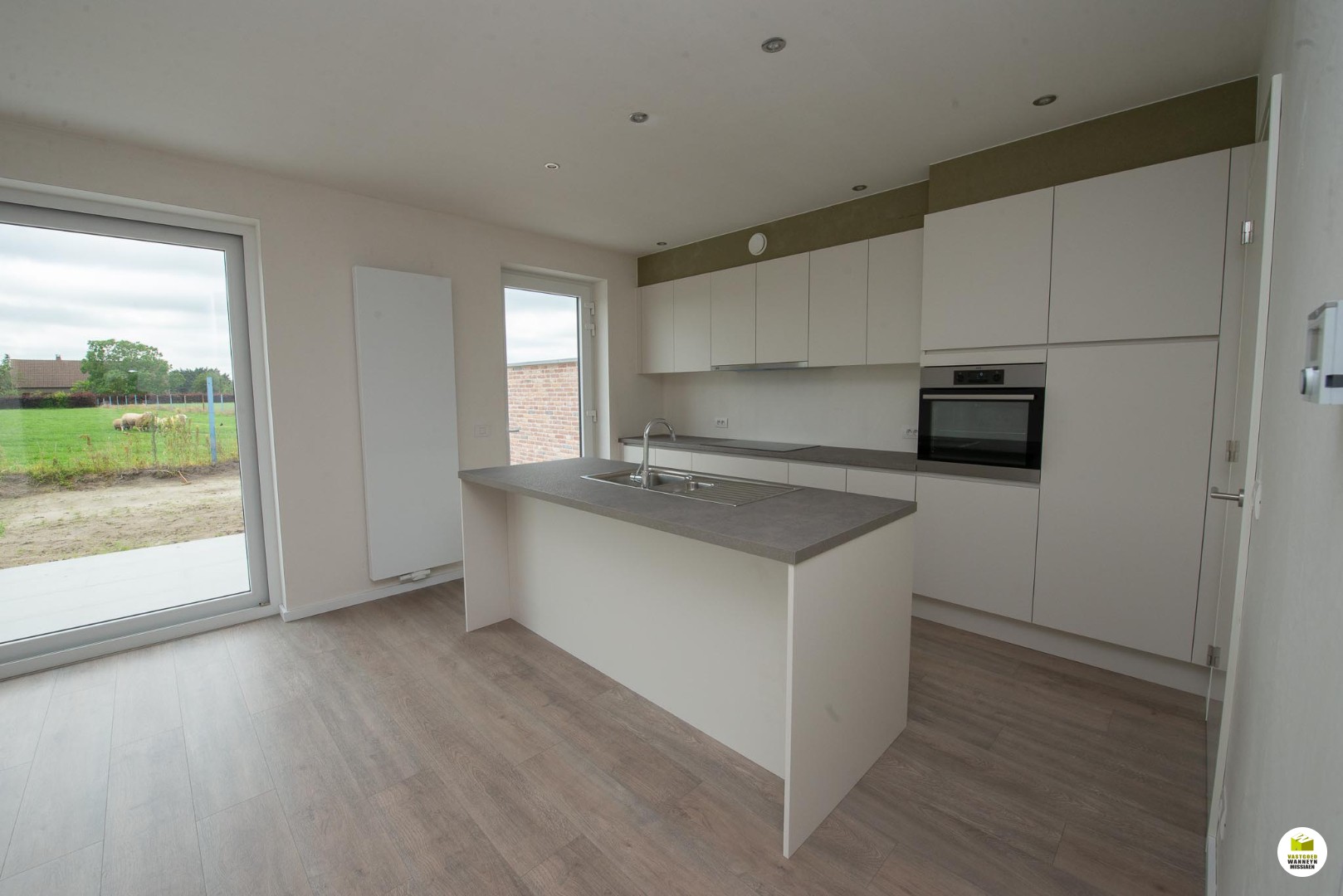 Zeer mooie energiezuinige woning op zeer centrale doch rustige ligging, doodlopende straat, met zuidgerichte tuin en zicht over de velden. Indeling: inkom met gastentoilet, lichtrijke leefruimte met open keuken, de keuken is uitgerust met vaatwas, combi oven/microgolf, frigo en inductiekookplaat, garage/wasplaats met automatische kantelpoort, 4 slaapkamers, badkamer met inloopdouche en lavabomeubel, toilet, zolder. Zuidgerichte tuin met terras (wordt nog aangelegd) en zicht over de velden.