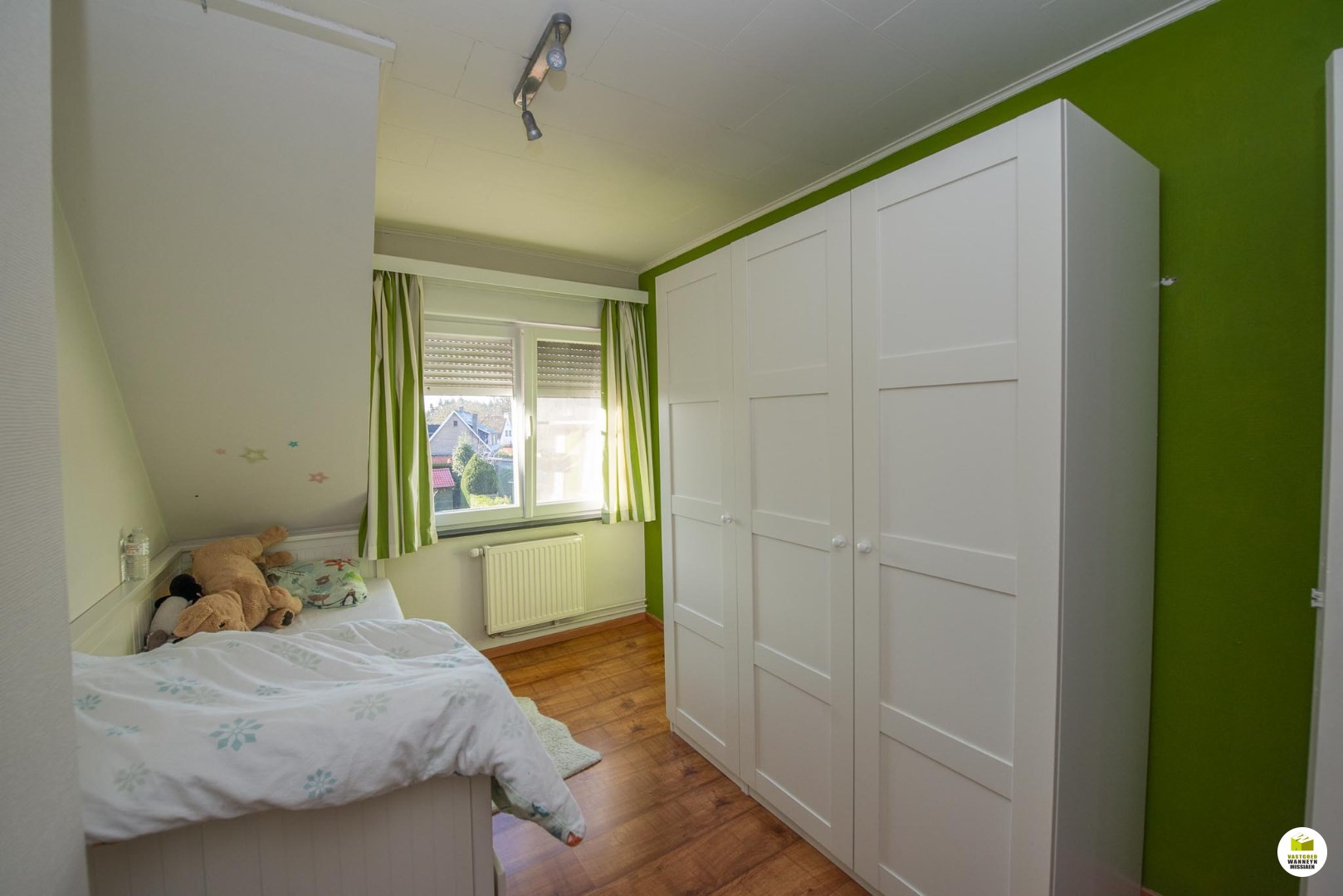 Gelegen in een doodlopende straat nabij school, winkels, station en E40 vindt u deze lichtrijke woning (bel-étage) met 3 slaapkamers, garage en tuin.
