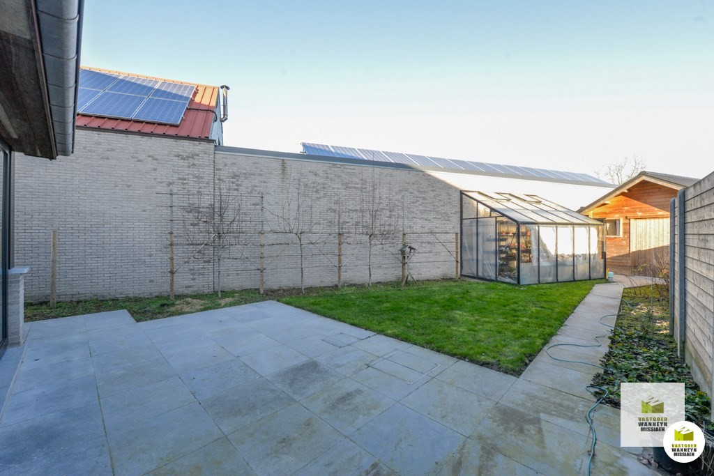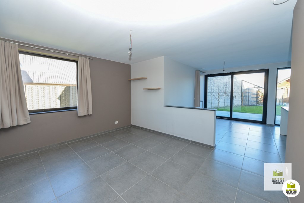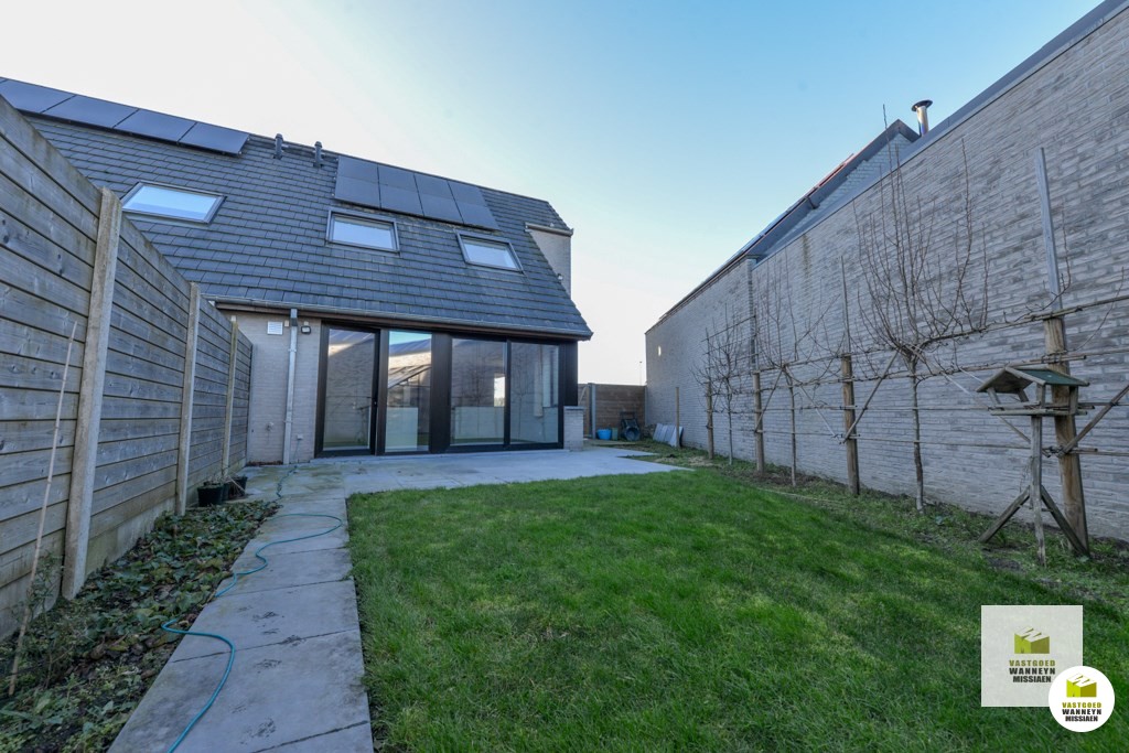 Tussen Beernem en Oedelem, gelegen op het einde van een doodlopend zijstraatje, vindt u deze BEN (Bijna EnergieNeutrale) woning. Deze halfopen bebouwing heeft een ruime inkom met gastentoilet, een lichtrijke living met een open keuken die is uitgerust met een inductiefornuis, oven en vaatwas. Er is een ruime garage die ook dienst doet als wasplaats. Op de verdieping bevinden zich 3 slaapkamers en een badkamer met ligbad, douche, wastafel en toilet. De veluxen zijn uitgerust met rolluiken. Er is ook nog een ruimte bergzolder. De woning heeft zonnepanelen en ventilatiesysteem D. Er is een tuin met een terras, serre en een tuinhuis. Er is ook parkeerplaats voor meerdere wagens.