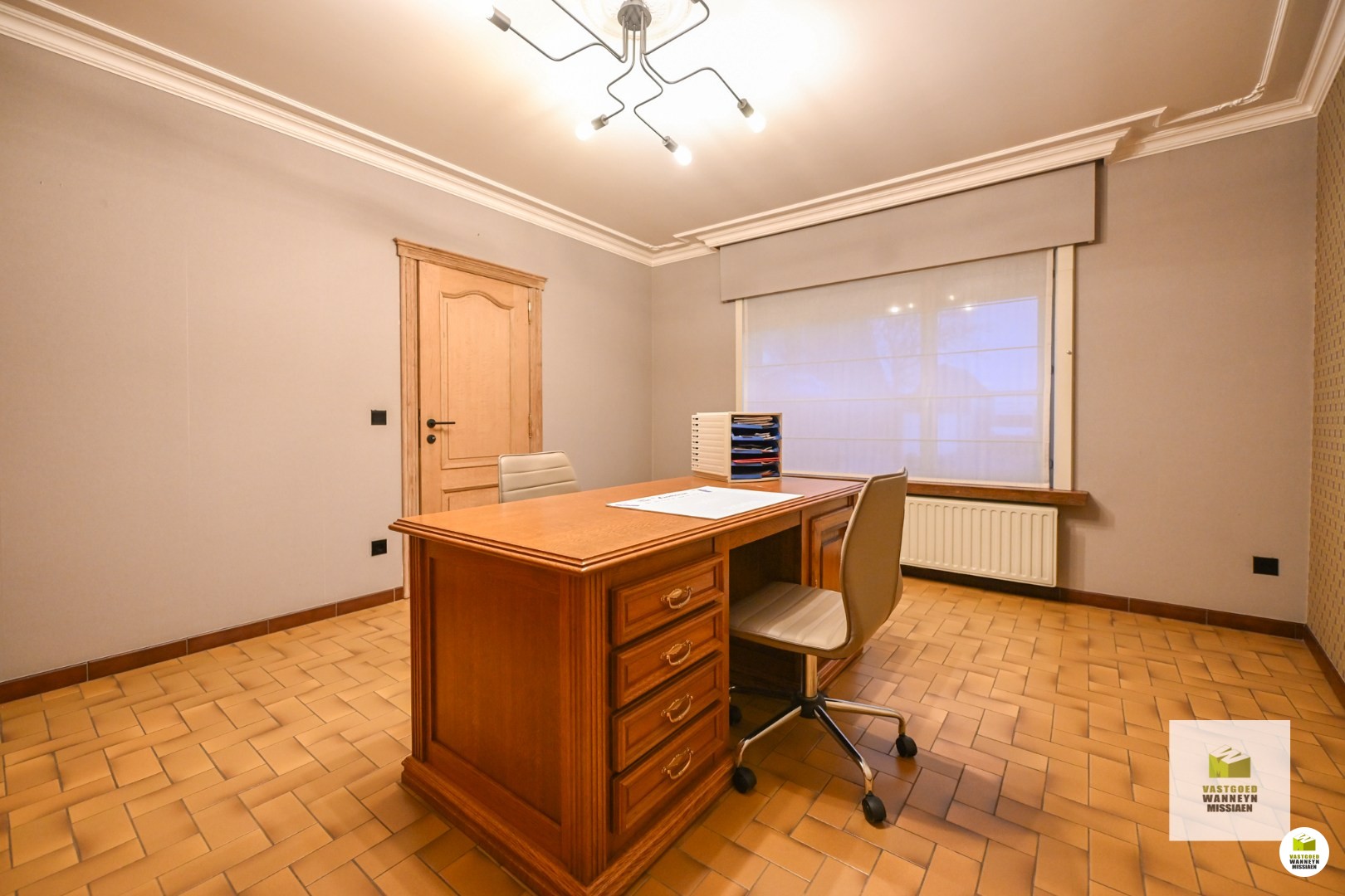 De woning heeft de volgende indeling: Binnenkomen doen we in de aparte inkomhal, waar toegang is tot het apart gastentoilet en de gelijkvloerse bureauruimte. Deze ruimte is ideaal voor wie vaak van thuis uit werkt maar kan ook benut worden als extra berging, speelkamer, extra slaapkamer ect.