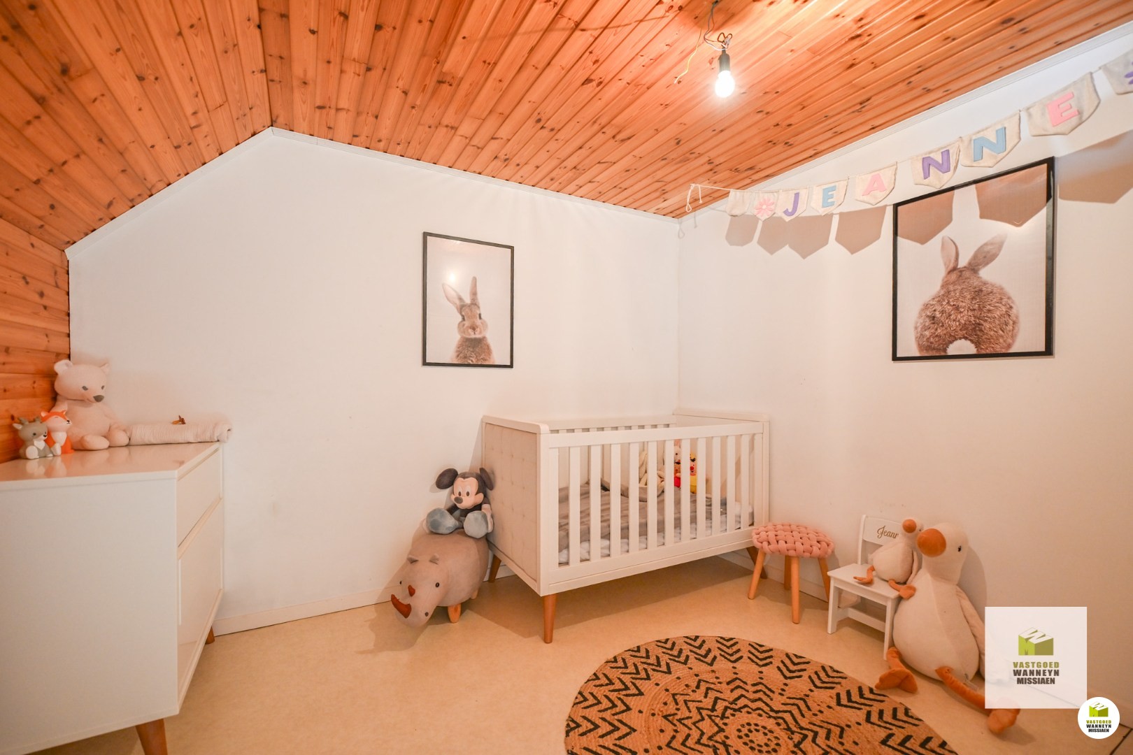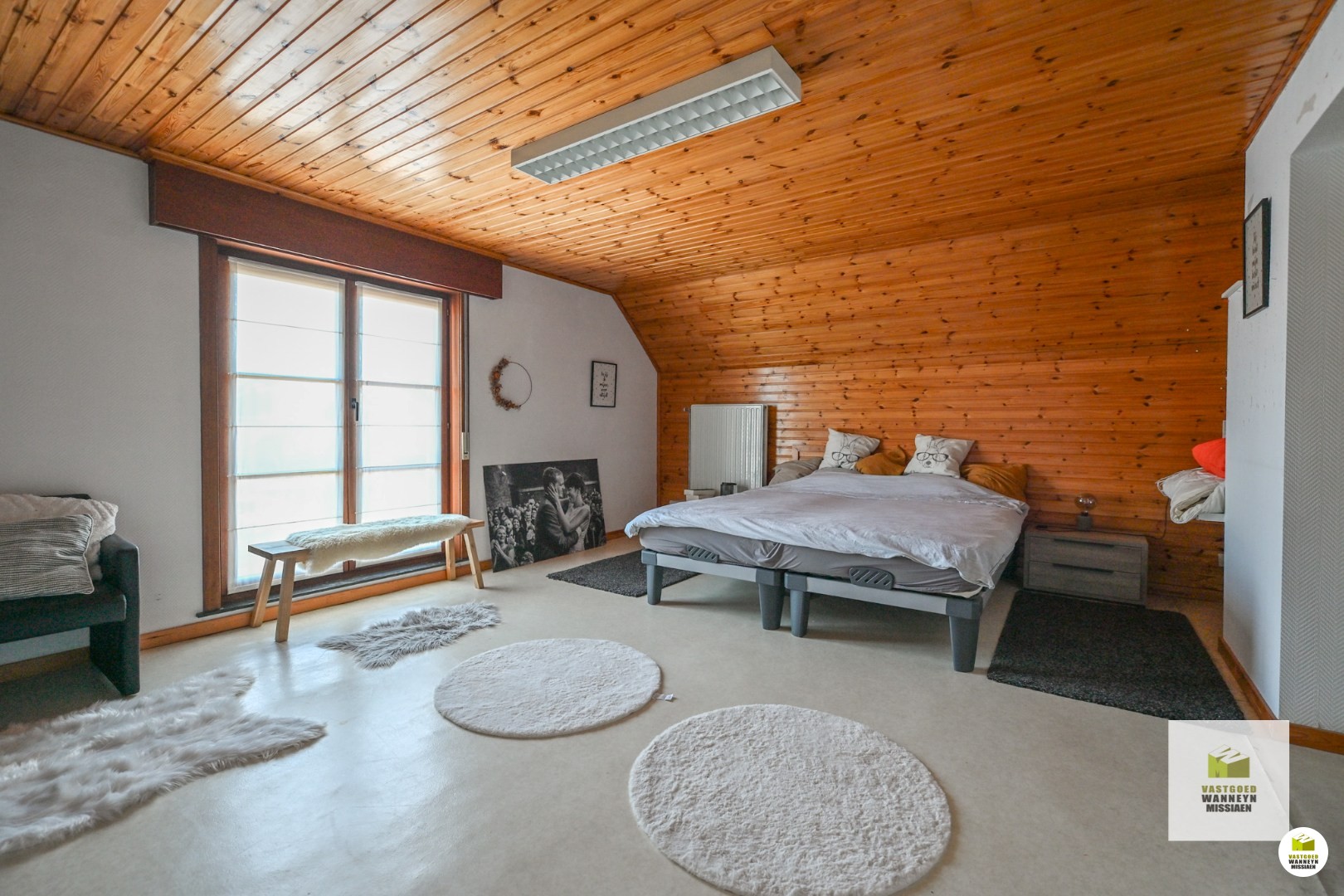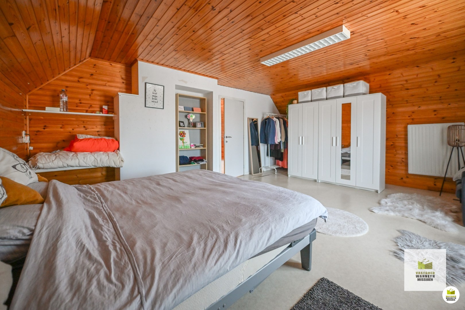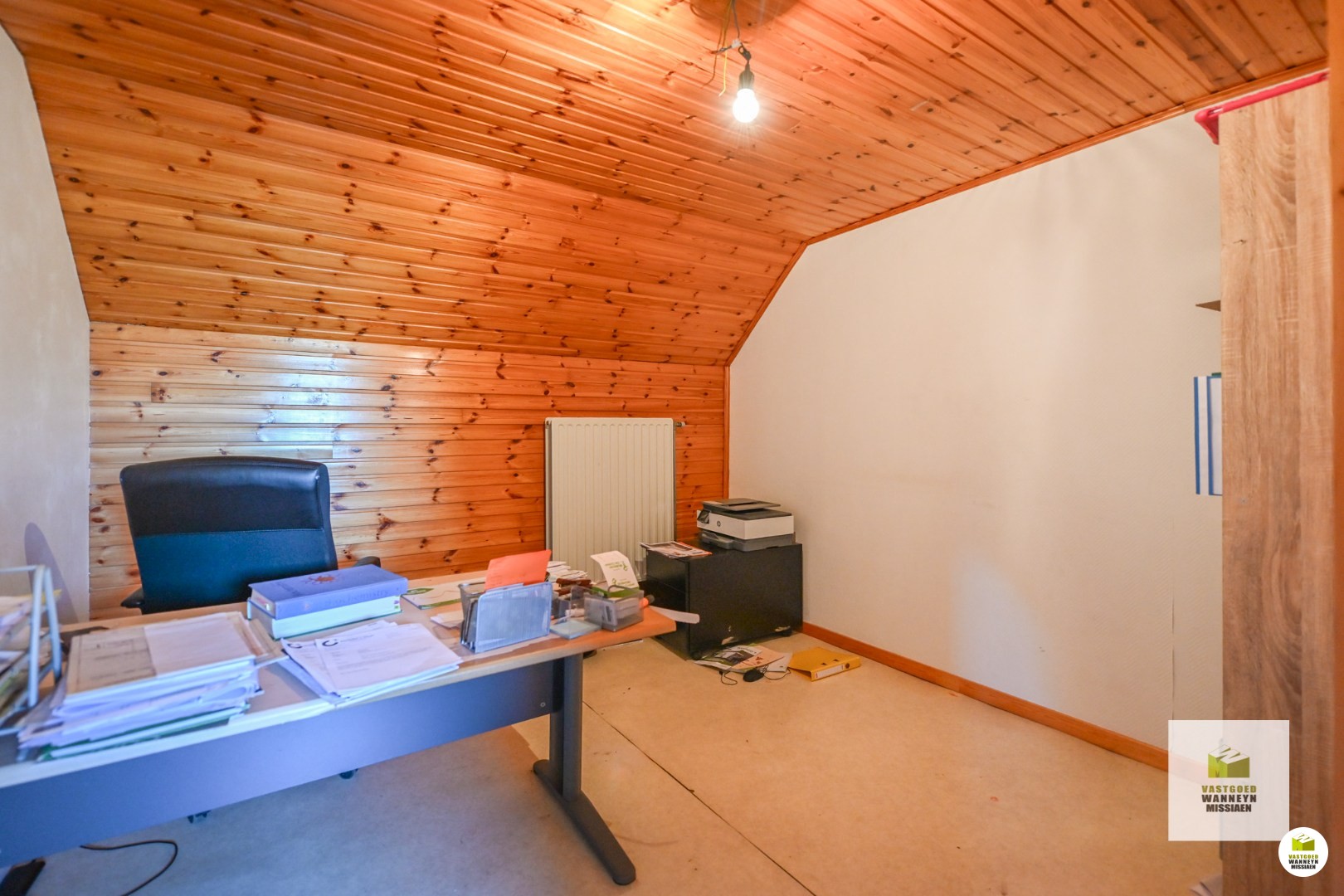 Palend aan de keuken is nog een berging/bureauruimte terug te vinden. Ook deze werd volledig voorzien van ingebouwde kasten en een praktische berging. Via deze ruimte bereiken we de vaste trap naar boven waar tot slot nog 3 slaapkamers zijn (waarvan 2 zonder raam of verluchting), ... alsook een extra toilet.
