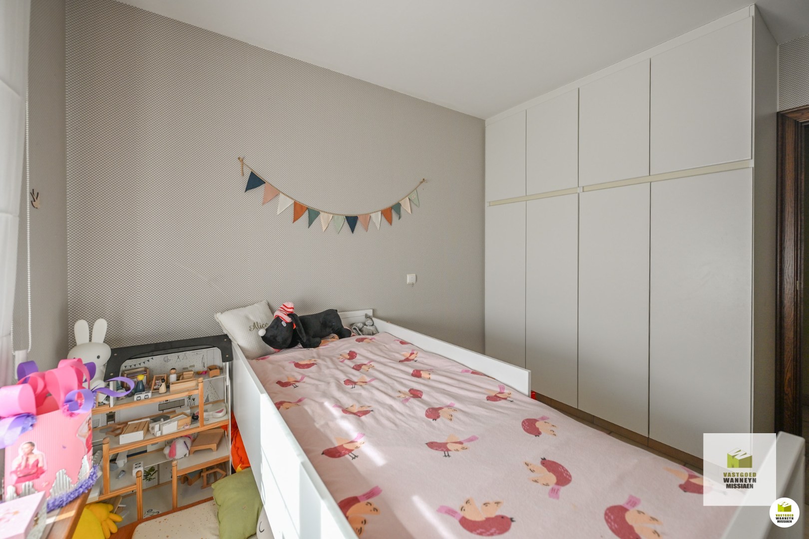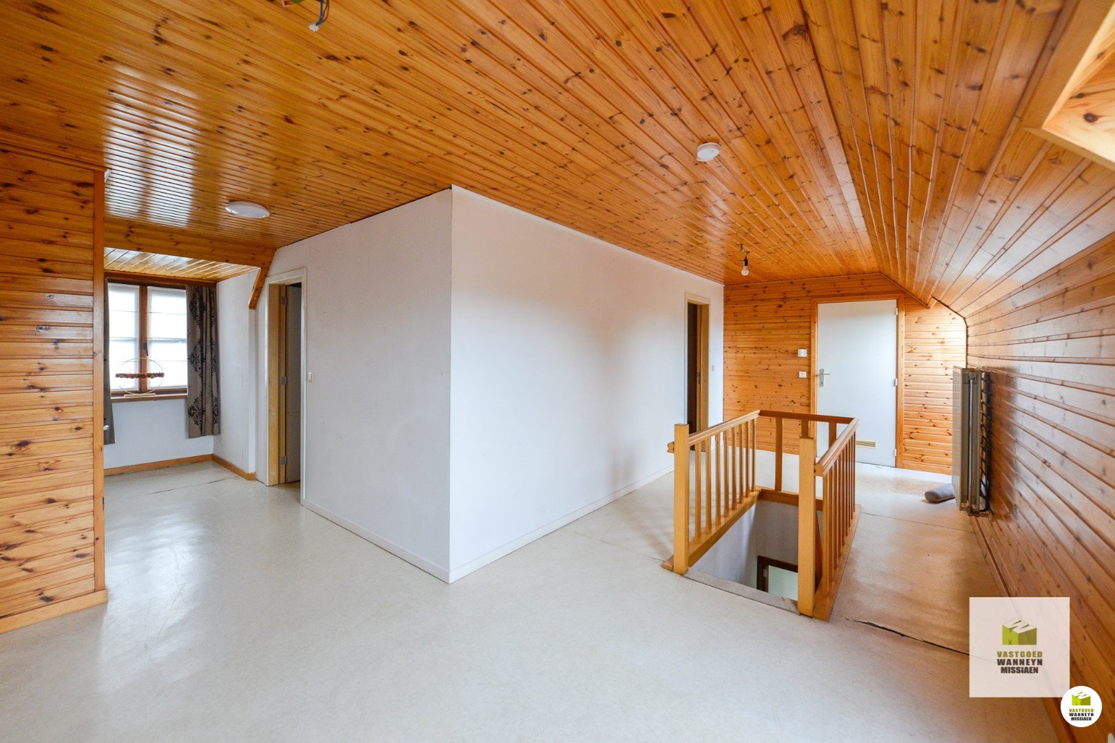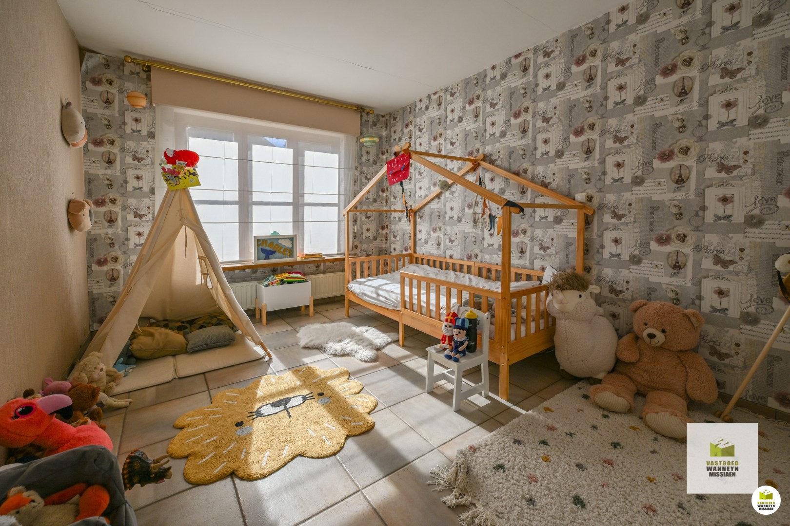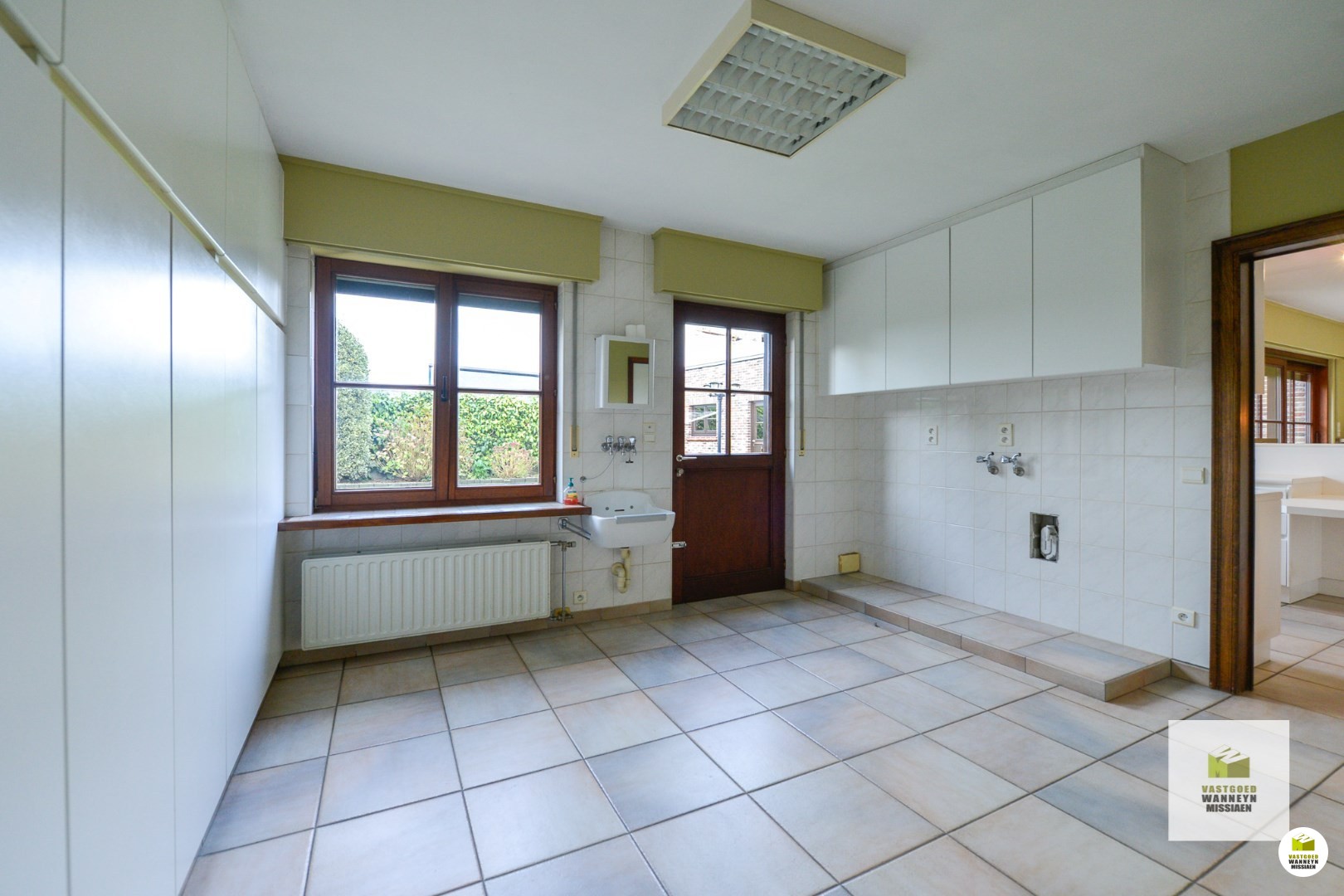 Palend aan de keuken is nog een berging/bureauruimte terug te vinden. Ook deze werd volledig voorzien van ingebouwde kasten en een praktische berging. Via deze ruimte bereiken we de vaste trap naar boven waar tot slot nog 3 slaapkamers zijn (waarvan 2 zonder raam of verluchting), ... alsook een extra toilet.