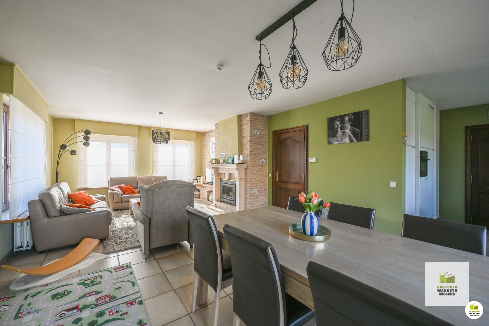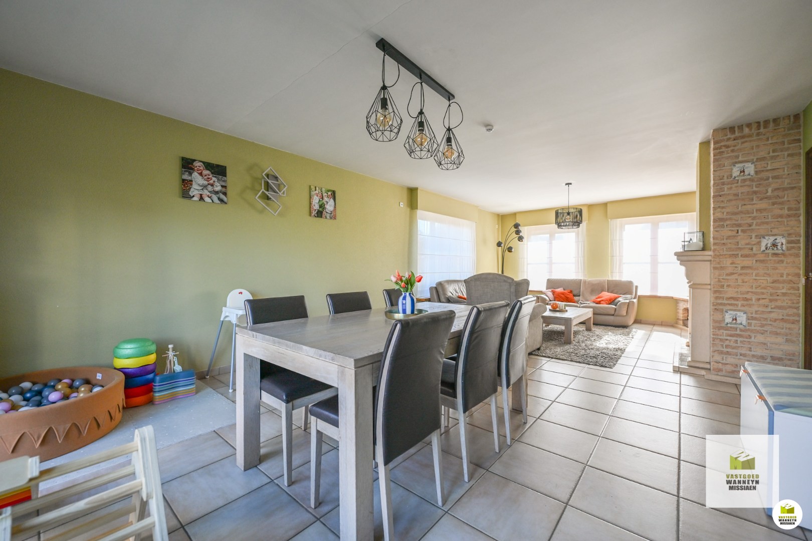 Het eetgedeelte grenst aan de volledig geïnstalleerde keuken. Vanuit de eetplaats is er via een grot schuifraam ook toegang tot het terras buiten.