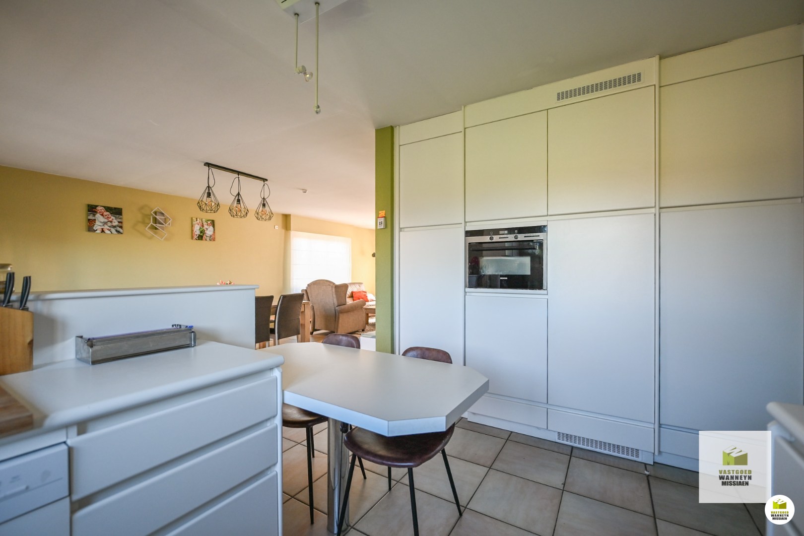 De keuken is voorzien van een vaatwasmachine, frigo, oven en voldoende kasten.