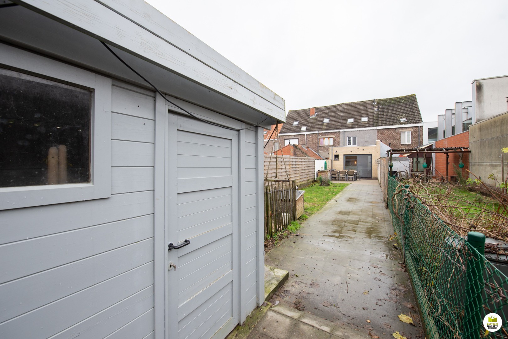 Via het grote schuifraam komt men in de goed onderhouden tuin met terras terecht. In de tuin is ook nog een tuinhuis terug te vinden.