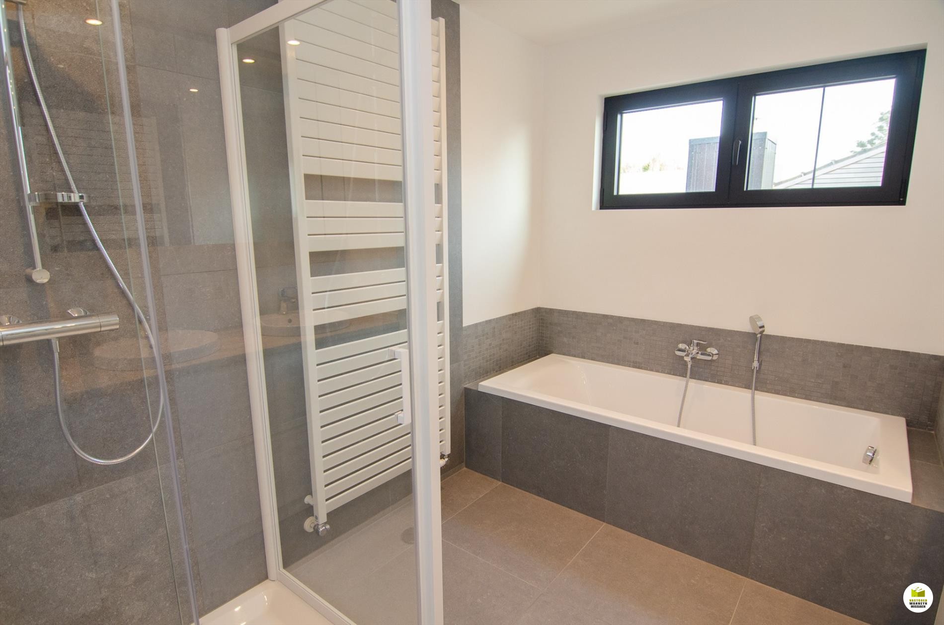 3 slaapkamers, apart toilet, badkamer met dubbele lavabo, douche en ligbad.