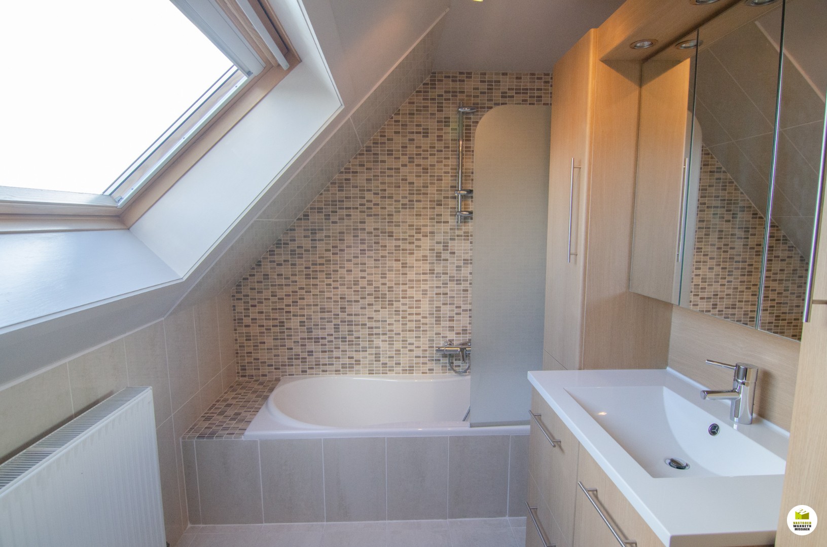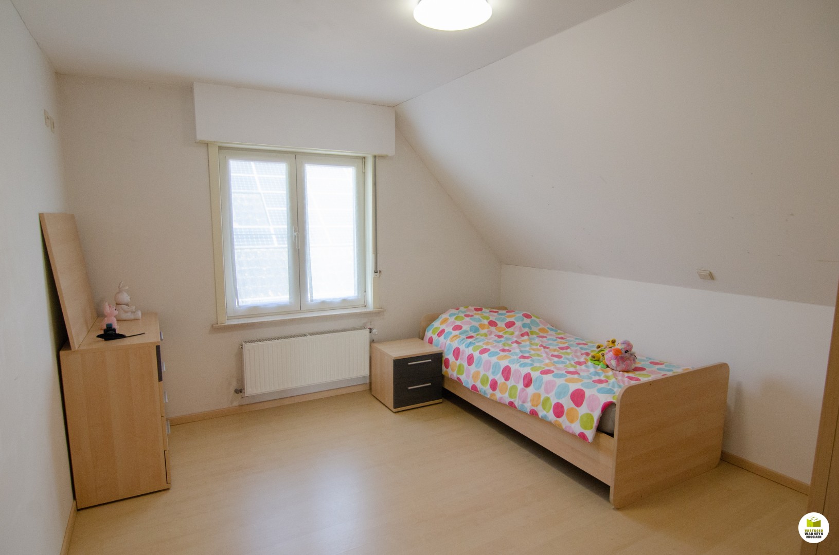 Op de eerste verdieping vinden we maar liefst drie ruime slaapkamers, waarvan één de master bedroom. Boven bevindt zich nog een apart toilet, bergruimte en badkamer met lavabo en douchebad. Vanuit één van de slaapkamers hebben we nog toegang tot een ruime zolder.
