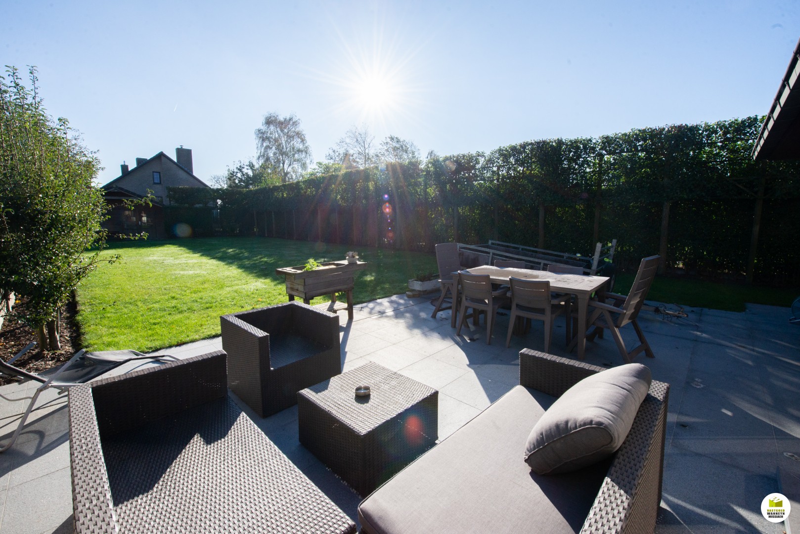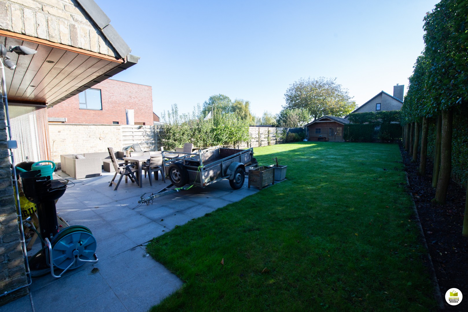 De tuin is mooi aangelegd, achteraan de tuin is er nog een ruim tuinhuis.
