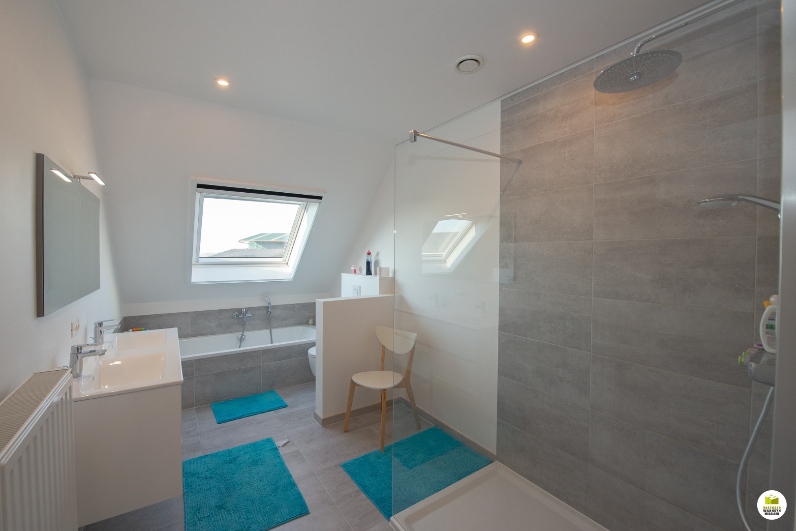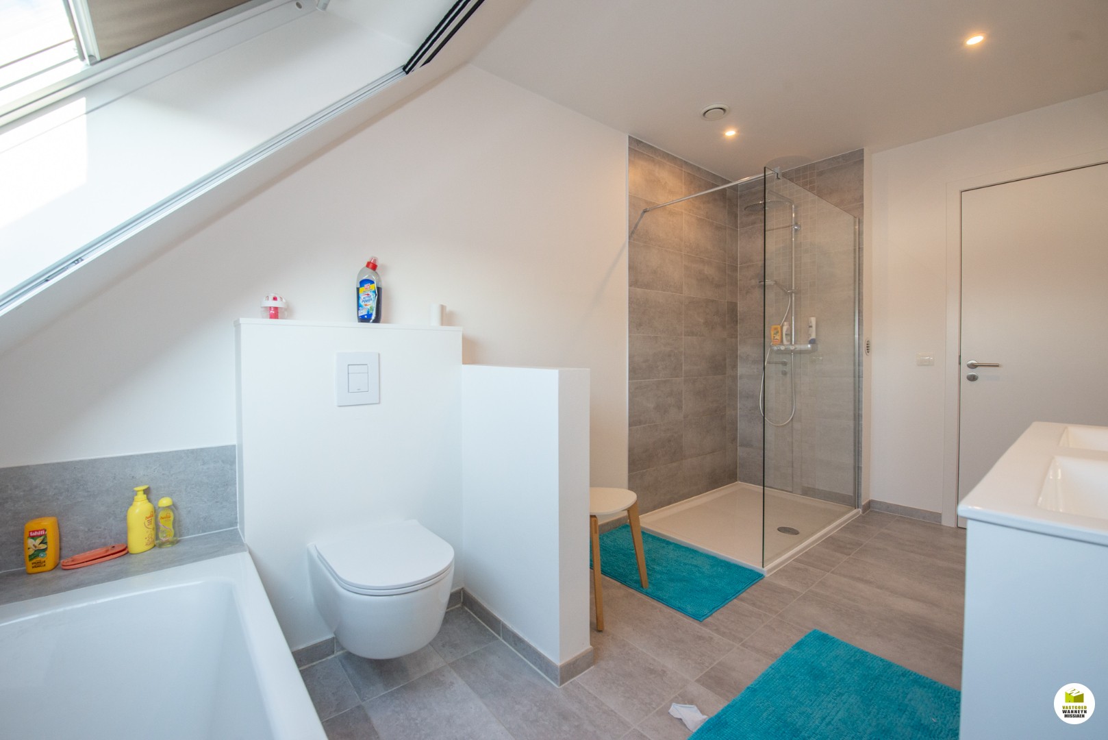 Inkom met gastentoilet, ruime woonkamer (37 m2) met een volledig geïnstalleerde open keuken (10 m2) met naastliggend een praktische wasplaats/berging (3 m2). Tuin met terras en grote automatische zonneluifel, tuinhuis en een garagebox met automatische poort. Op de eerste verdieping zijn er 3 grote slaapkamers en een prachtige badkamer. De slaapkamers meten respectievelijk: 10 m2, 10 m2 en 13 m2. De badkamer is voorzien van een dubbel lavabomeubel, ligbad, inloopdouche en een tweede toilet. Via een schuiftrap bereiken we de geïsoleerde zolder (25 m2).