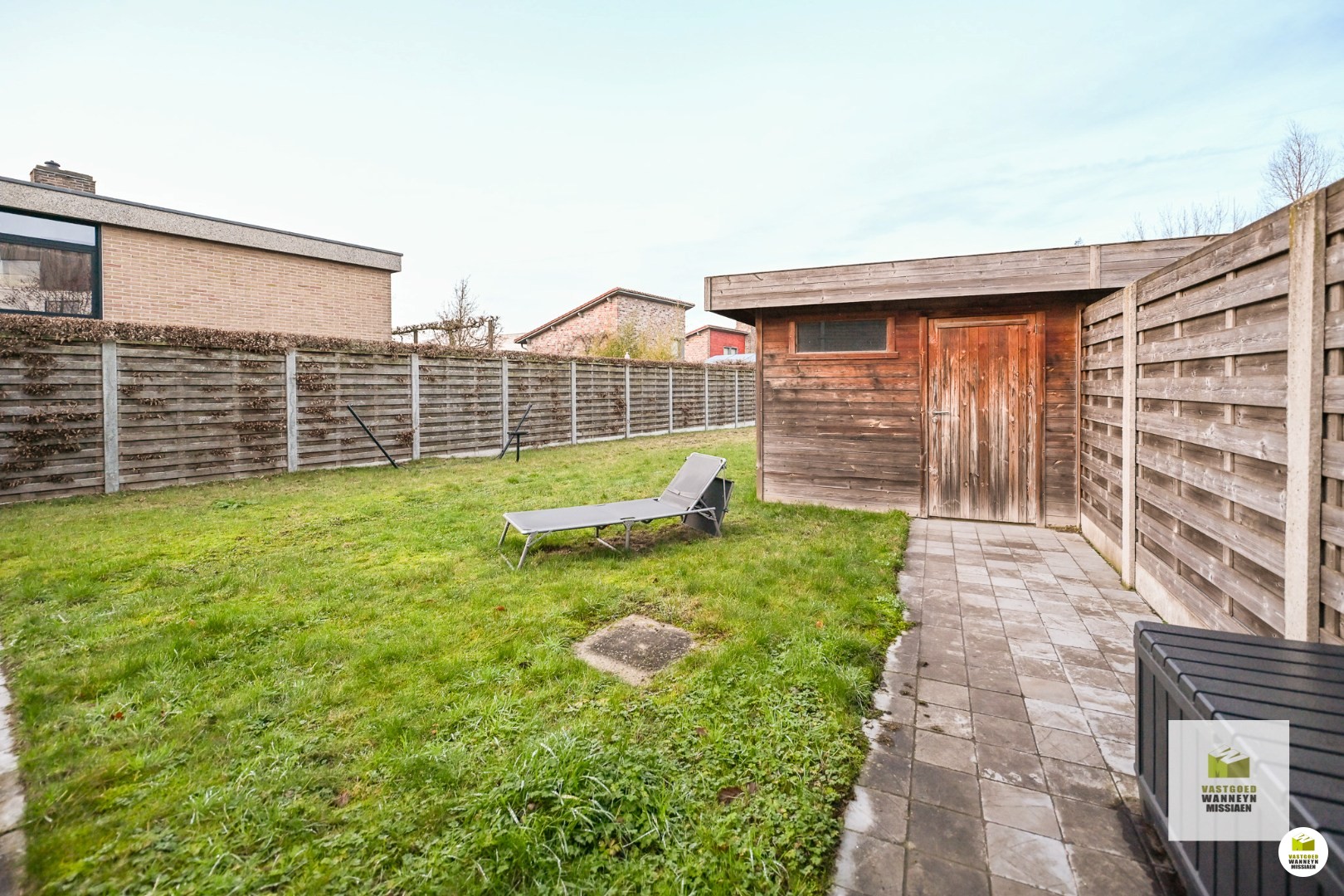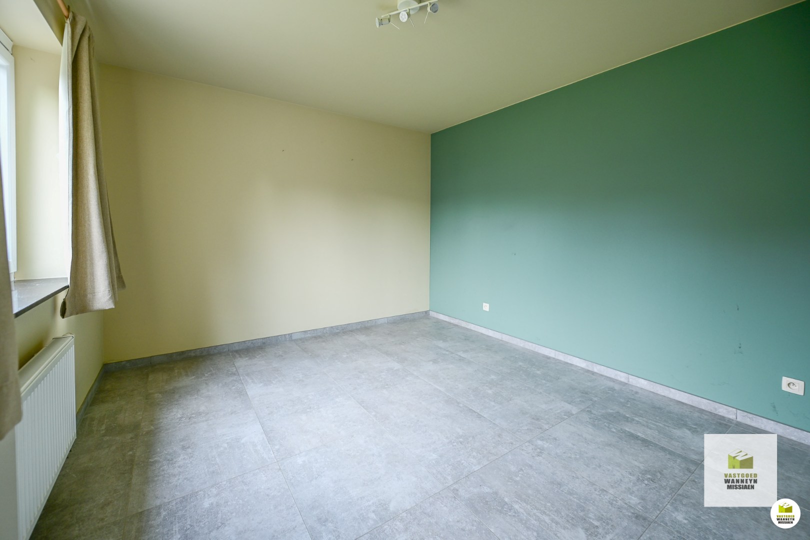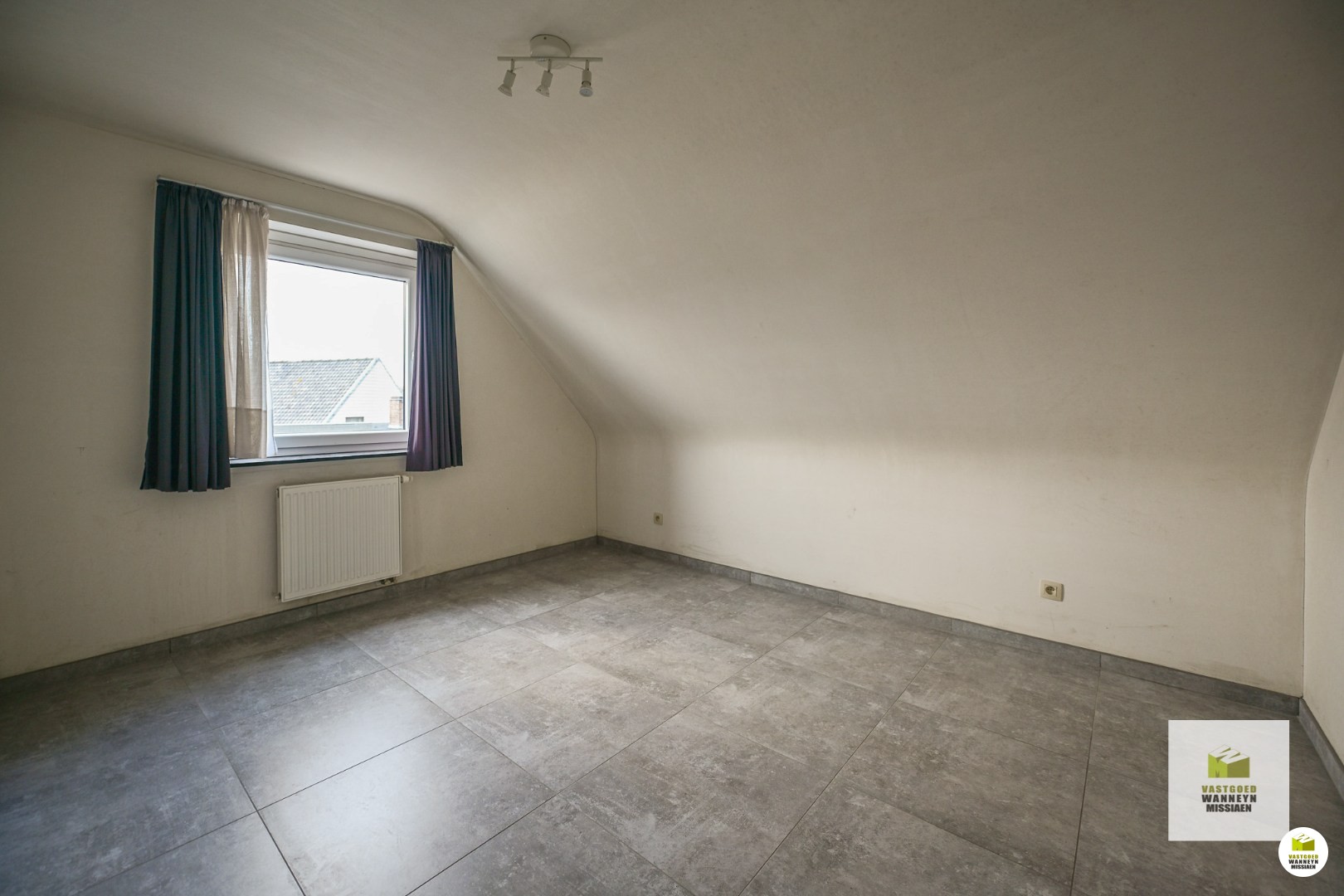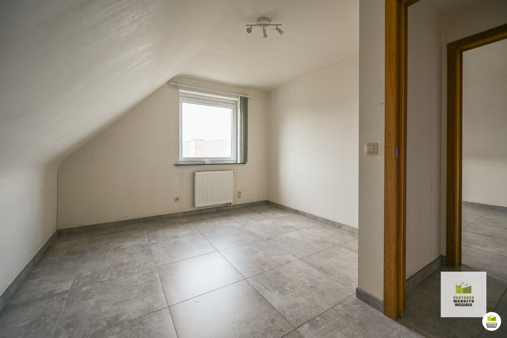 Verdieping: 2 slaapkamers, afzonderlijk toilet, badkamer met wastafel, ligbad & douche. Carport. Ruime tuin met tuinhuis. De woning werd recent volledig geschilderd en is onmiddellijk vrij.