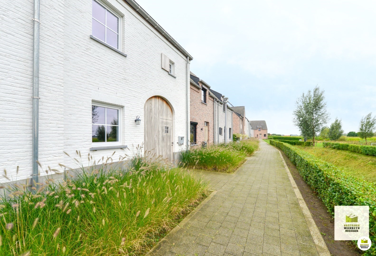De woning werd gebouwd in 2020 en is gelegen aan het gemeenschappelijk groen van de wijk, met vergezicht op de velden.