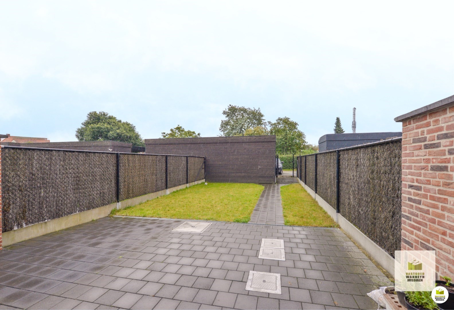 De tuin en het terras zijn georiënteerd naar het zuiden, ... waardoor je de hele dag van de zon kunt genieten. Ideaal voor gezellige zomeravonden of om te genieten van een ontbijt in de buitenlucht. Vervolgens bevindt zich in de tuin nog een praktische tuinberging. Via het poortje achteraan is er toegang van en naar de carport en de staanplaats.