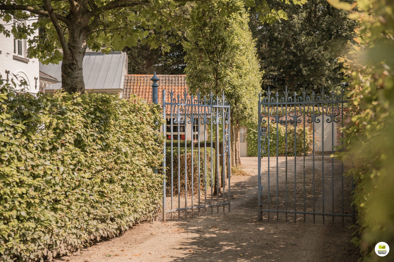 Er zijn 2 opritten, beide afgesloten met smeedijzeren poorten.