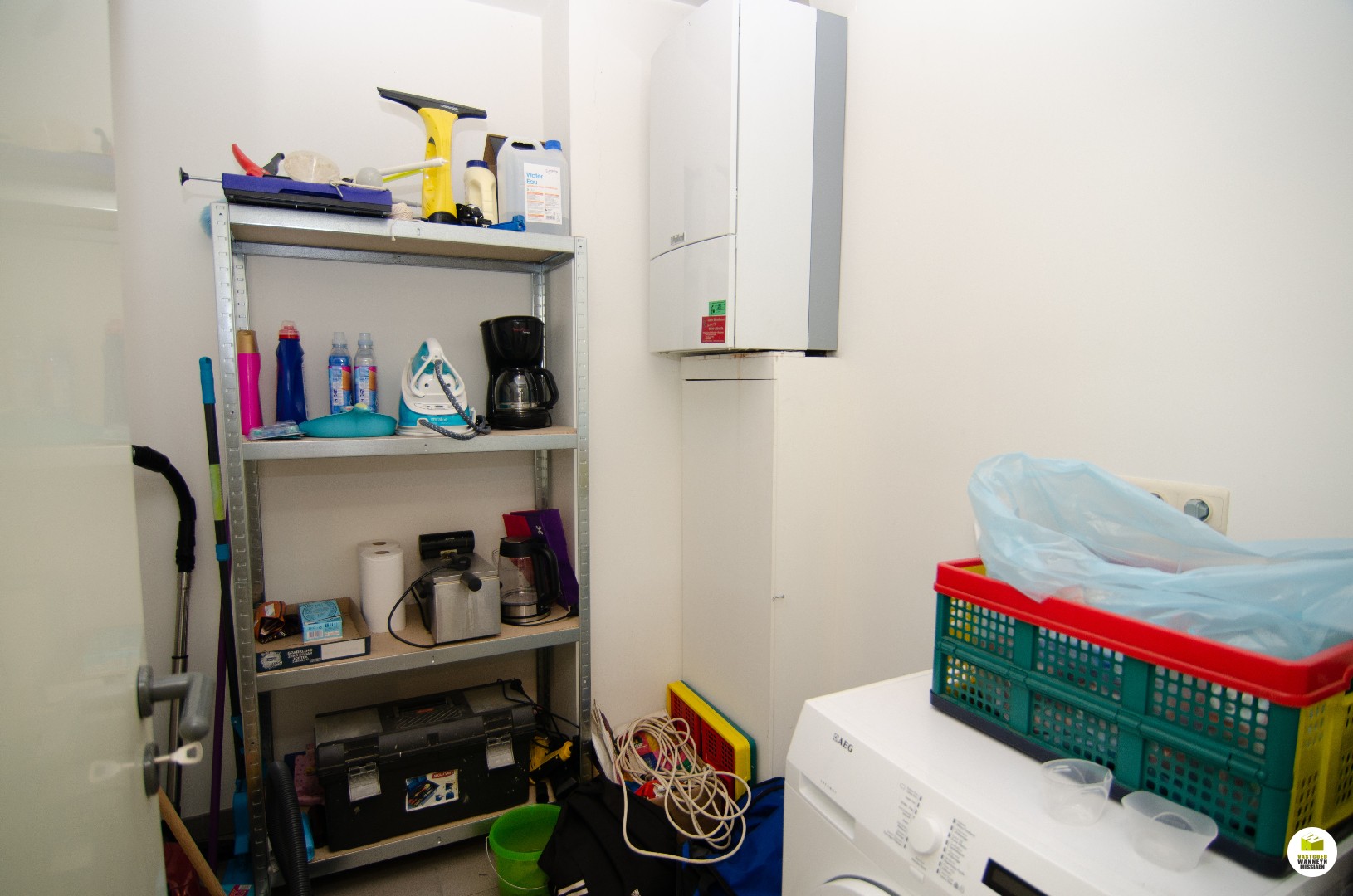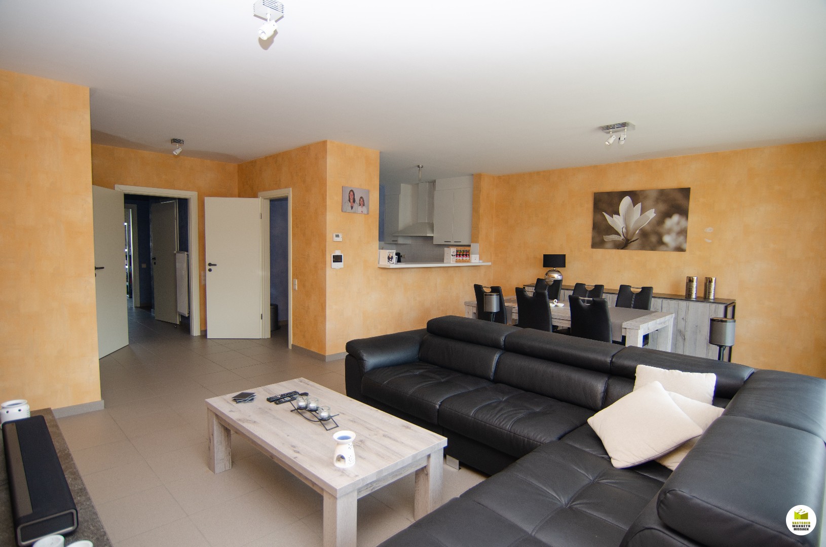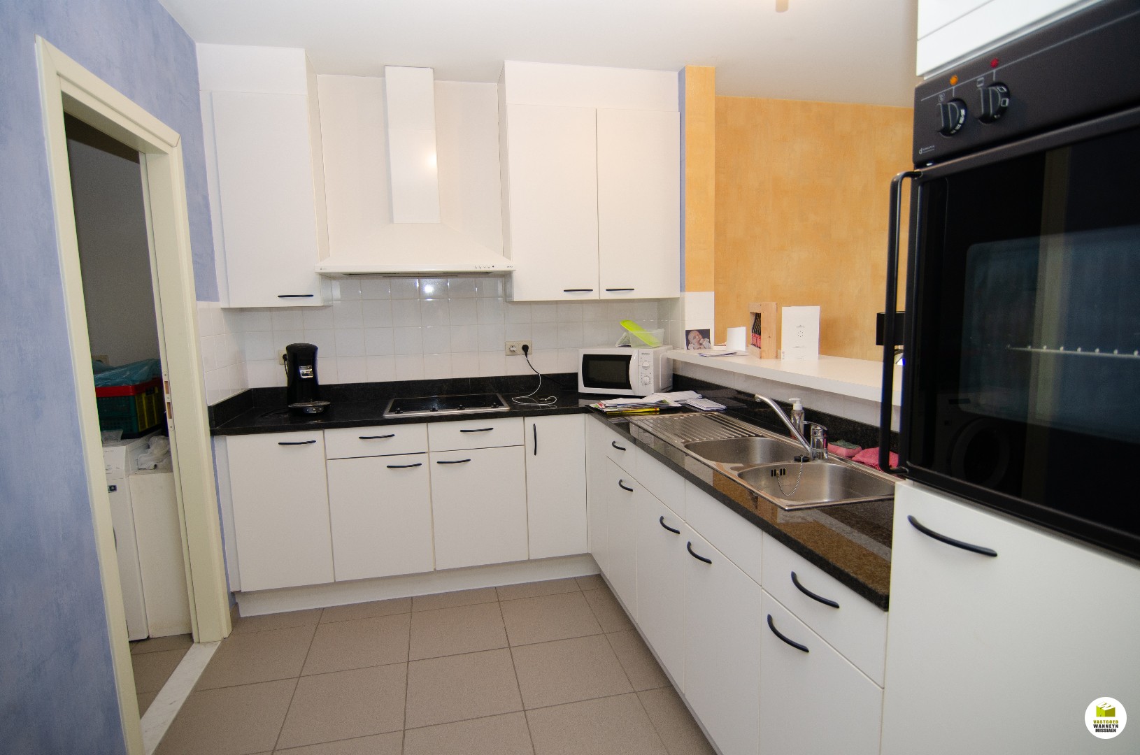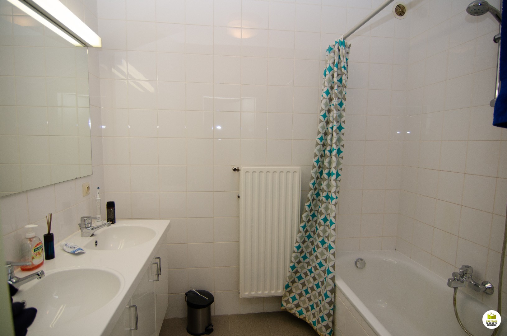 Ruim 2slpk-appartement met terras aan voorzijde en ruim terras aan de achterzijde! Het appartement bevindt zich op de 1ste verdieping en bestaat uit een ruime leefruimte met balkon/terras (5m2), keuken met granieten werkblad uitgerust met inbouwoven, koelkast kookplaat, dampkap en dubbele spoelbak, berging/wasplaats, afzonderlijk toilet, 2 ruime slaapkamers (beide +/-15m2) waarvan 1 met ruim terras (10m2), badkamer met ligbad en dubbele wastafel.