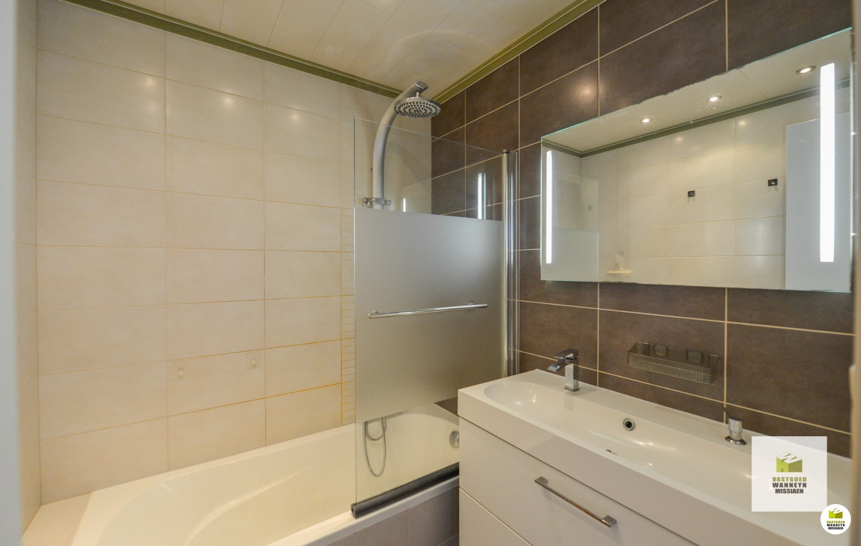 De badkamer is uitgerust met een wastafel, een ligbad/douche met regendouchekop. Er is ook een berging. Het appartement is uitgerust met 9 zonnepalen met een opbrengst van 3.00kWp (exclusief voor het appartement).