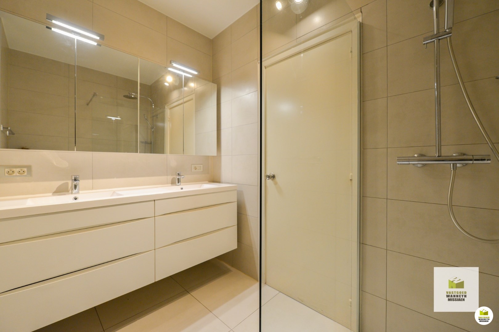Binnenkomen in de aparte en ruime inkomhal die centraal gelegen is in het appartement en alle ruimtes met elkaar verbindt. Zeer praktisch zijn de ingebouwde kasten in de inkomhal, ideaal als vestiairekast. Verder komen we via de glazen deur in de lichtrijke leefruimte binnen. Deze is onderverdeeld in enerzijds een zithoek en anderzijds een ruime eetplaats. Palend aan de eetplaats is ook toegang tot het eerste west-gerichte terras. Ideaal om in de namiddag en avond te aperitieven in de zon! Verder is de keuken gelegen, die werd uitgerust met ... een ruime ingebouwde frigo met vriesvak, vaatwasmachine alsook ingebouwde oven en aparte ingebouwde microfgolfoven. Hier is ook nog een praktische en ruime berging voorzien. Terug in de gang vinden we een apart gastentoilet terug, alsook een eerste badkamer die is voorzien van een douche en lavabo en 3 slaapkamers. Alle drie de slaapkamers werden ook hier voorzien van inbouwkasten. 2 van de 3 slaapkamers zijn gelegen aan de achterkant van het gebouw en hebben beiden een terras met zicht op het groen. Hier kunt u genieten van een heerlijk ontbijt in de ochtendzon tot de middag. Aan één slaapkamer, de masterbedroom, is een ensuite badkamer. Deze werd voorzien van een dubbele lavabo, inloopdouche, tweede toilet en voorziening voor wasmachine en droogkast.