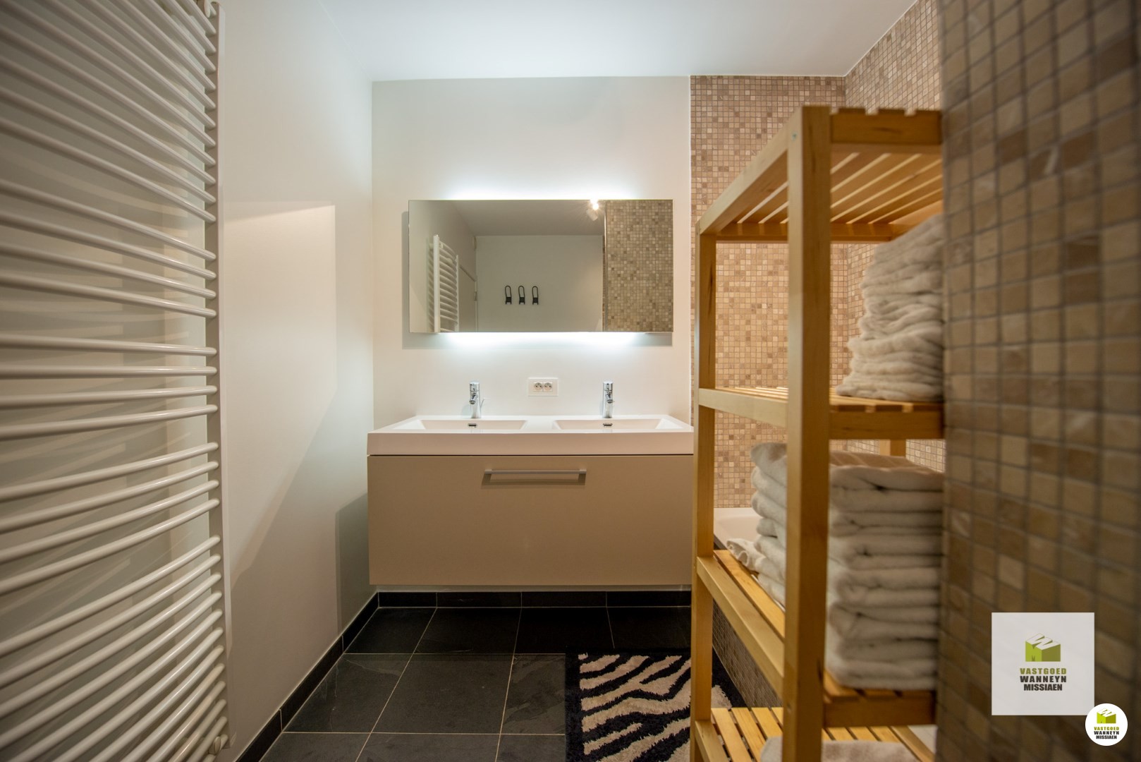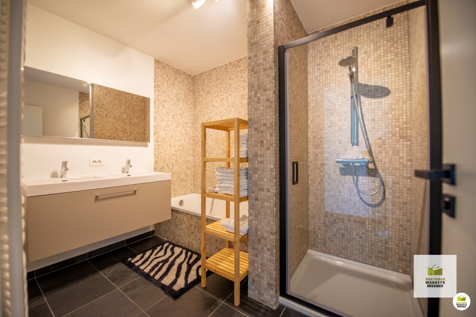 De inkomhal is praktisch ingericht met ingebouwde vestiairekasten. Vervolgens zijn er 2 slaapkamers, waarvan één is uitgerust met wederom een volledige inbouwkastenwand! In de slaapkamers is een laminaatvloer voorzien. Vervolgens zijn in de badkamer een douche, ligbad en dubbele lavabo geïnstalleerd. De badkamer werd afgewerkt met neutrale rustgevende mozaïeksteentjes om helemaal tot rust te komen in een ontspannend bad of deugddoende douche. De stijl van de ... badkamer werd doorgetrokken in het apart gastentoilet.