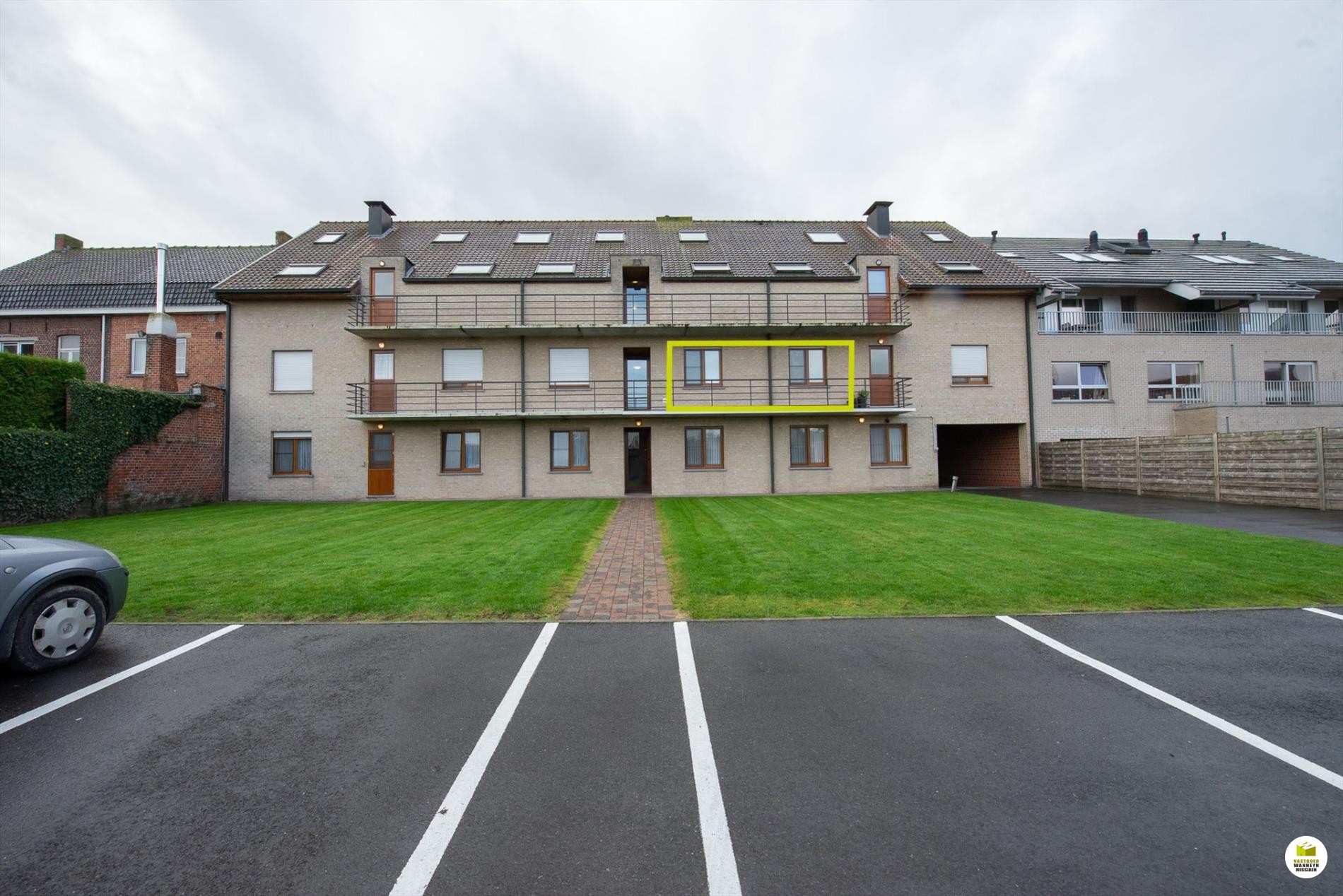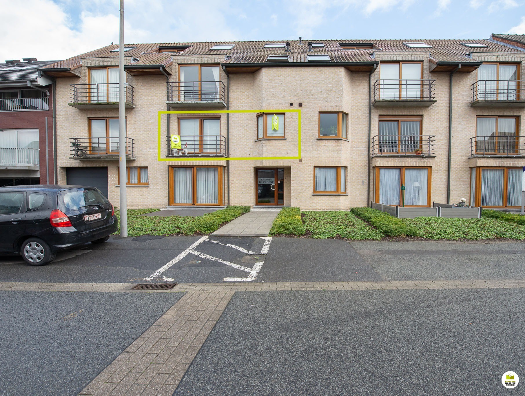 Het appartement is gelegen op de eerste verdieping (lift aanwezig) in een kleinschalig gebouw met slechts 13 appartementen. Er is een gemeenschappelijke tuin met privé parking voor de eigen bewoners (terrein is afgesloten met een automatische poort). Er kunnen indien gewenst 2 garageboxen bij aangekocht worden.