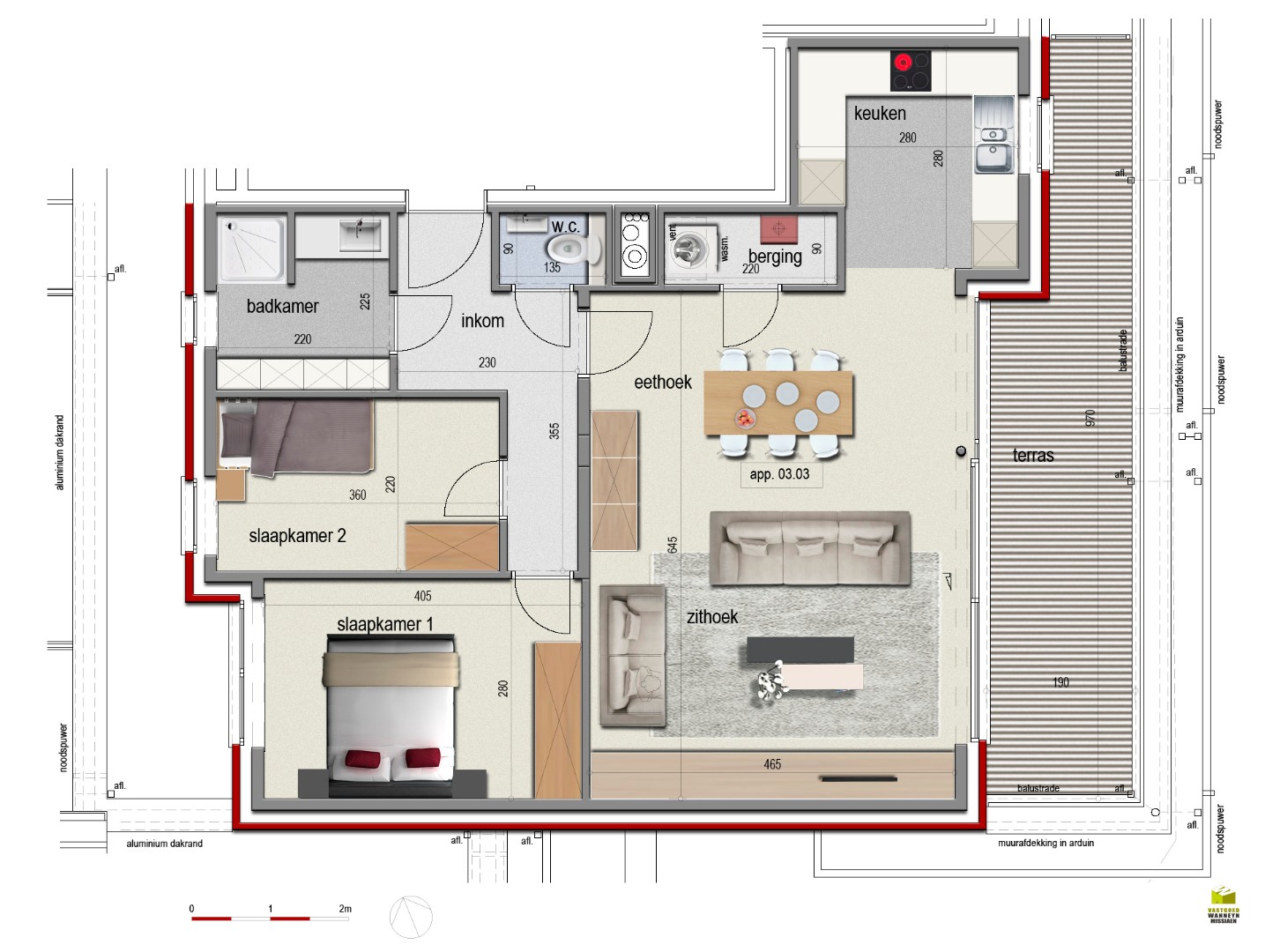Het appartement bevat 2 slaapkamers en heeft een bewoonbare oppervlakte van 109 m2.