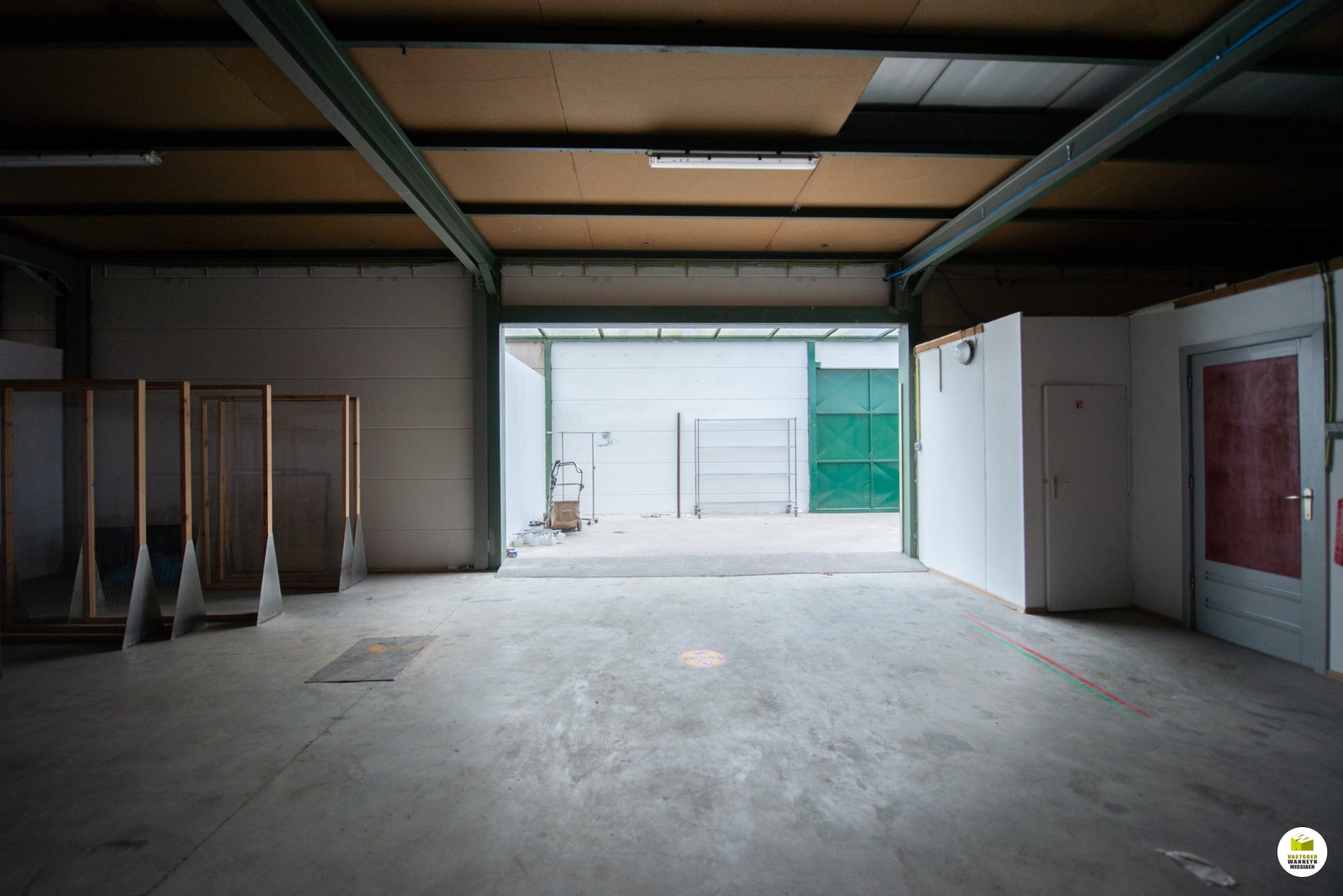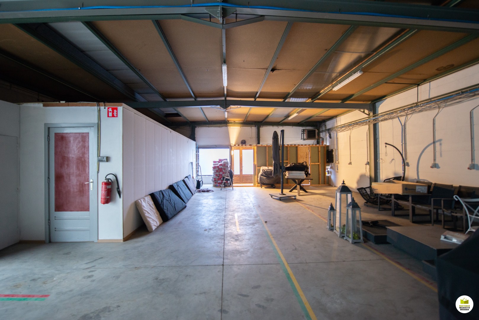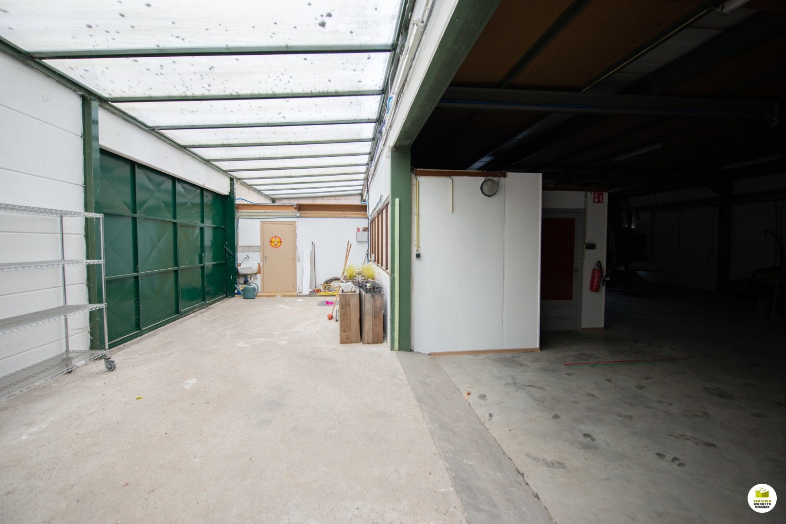 In het magazijn zijn er enkele aparte ruimtes gemaakt, een ondermeer voor een extra (bij)keuken (deze is verouderd). Het magazijn is vlot bereikbaar met brede en hoge ... poorten.