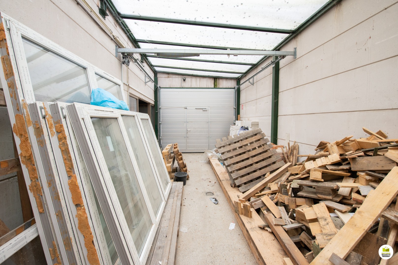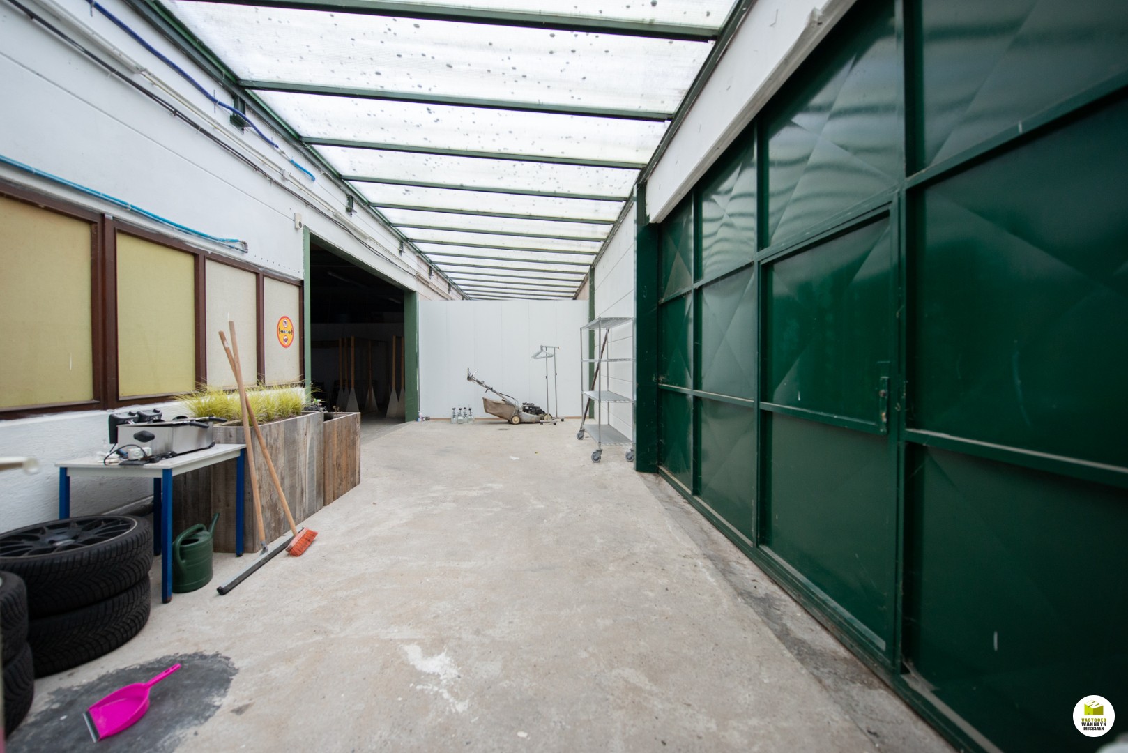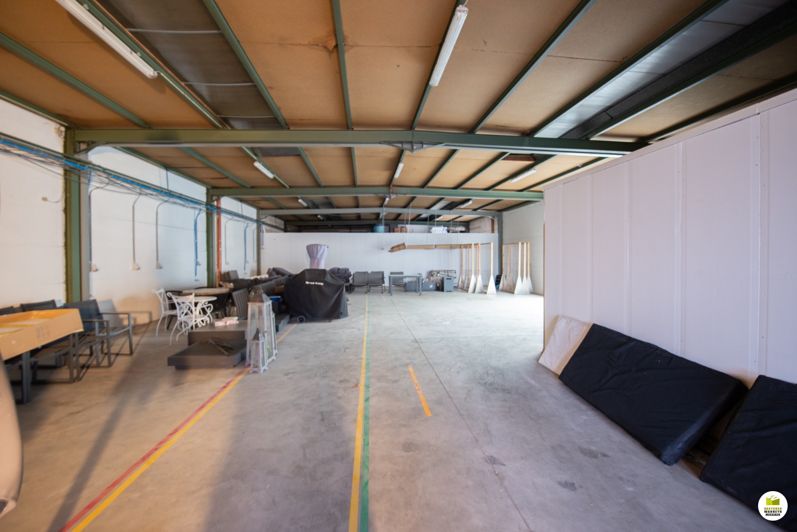 In het magazijn zijn er enkele aparte ruimtes gemaakt, een ondermeer voor een extra (bij)keuken (deze is verouderd). Het magazijn is vlot bereikbaar met brede en hoge ... poorten.