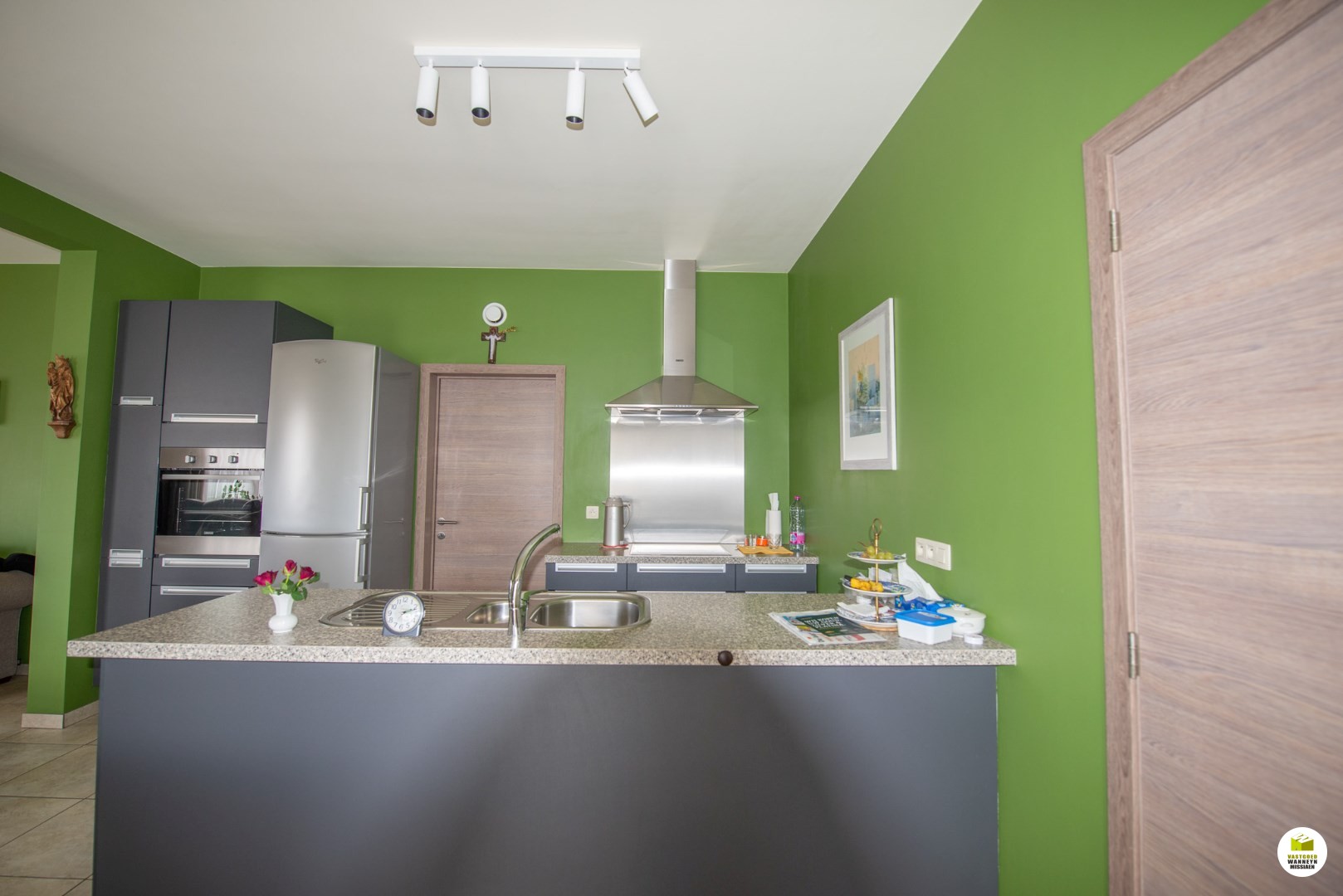 Indeling: inkom met gastentoilet, ruime leefruimte met open keuken die is uitgerust met keramische kookplaat, oven, vaatwas & frigo met diepvriesvak. De leefruimte en keuken genieten dankzij de grote glaspartijen van veel natuurlijk daglicht. Aan de zonnekant zijn de ramen uitgerust met zonnescreens. Palend aan de keuken is er een grote berging/wasplaats. Er zijn 2 ruime slaapkamers, waarvan 1 met zonnescreens, en een badkamer met inloopdouche, dubbel lavabo en 2de toilet. Een grote troef is de tuin met 2 terrassen die gedeeltelijk overdekt zijn waar je de ganse dag door kan genieten van de zon. Via de gemeenschappelijk inkomhall kan je naar de ... garage met automatische poort en met extra staanplaats voor de poort. Deze is samen met de privé-parkeerplaats naast de voortuin bij te kopen aan 45.000euro. Het appartement is momenteel verhuurd en dus ook zeer geschikt als investering. Zeer centrale ligging: supermarkten , bakker en station op wandelafstand, oprit E40 op 2min.