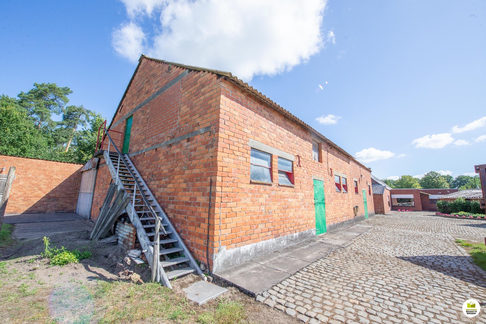- een grote stal (+/- 190m2, hoogte gelijkvloers 2,8m + zolderverdiep 4m) en is opgedeeld in verschillende compartimenten, afdak, kelder, voormalig ovenkot