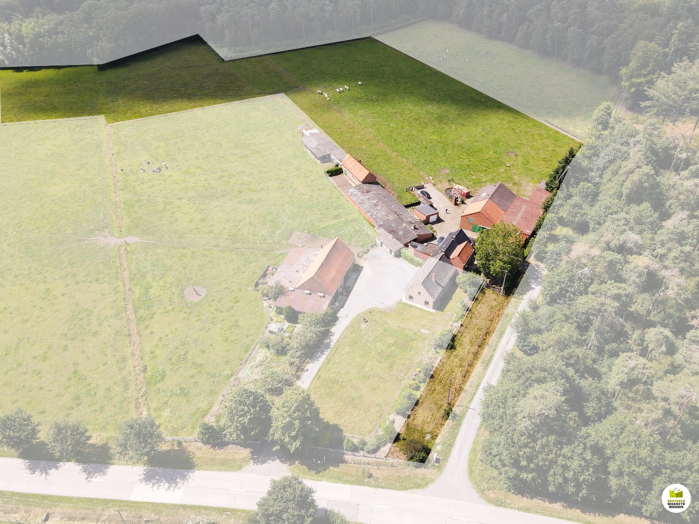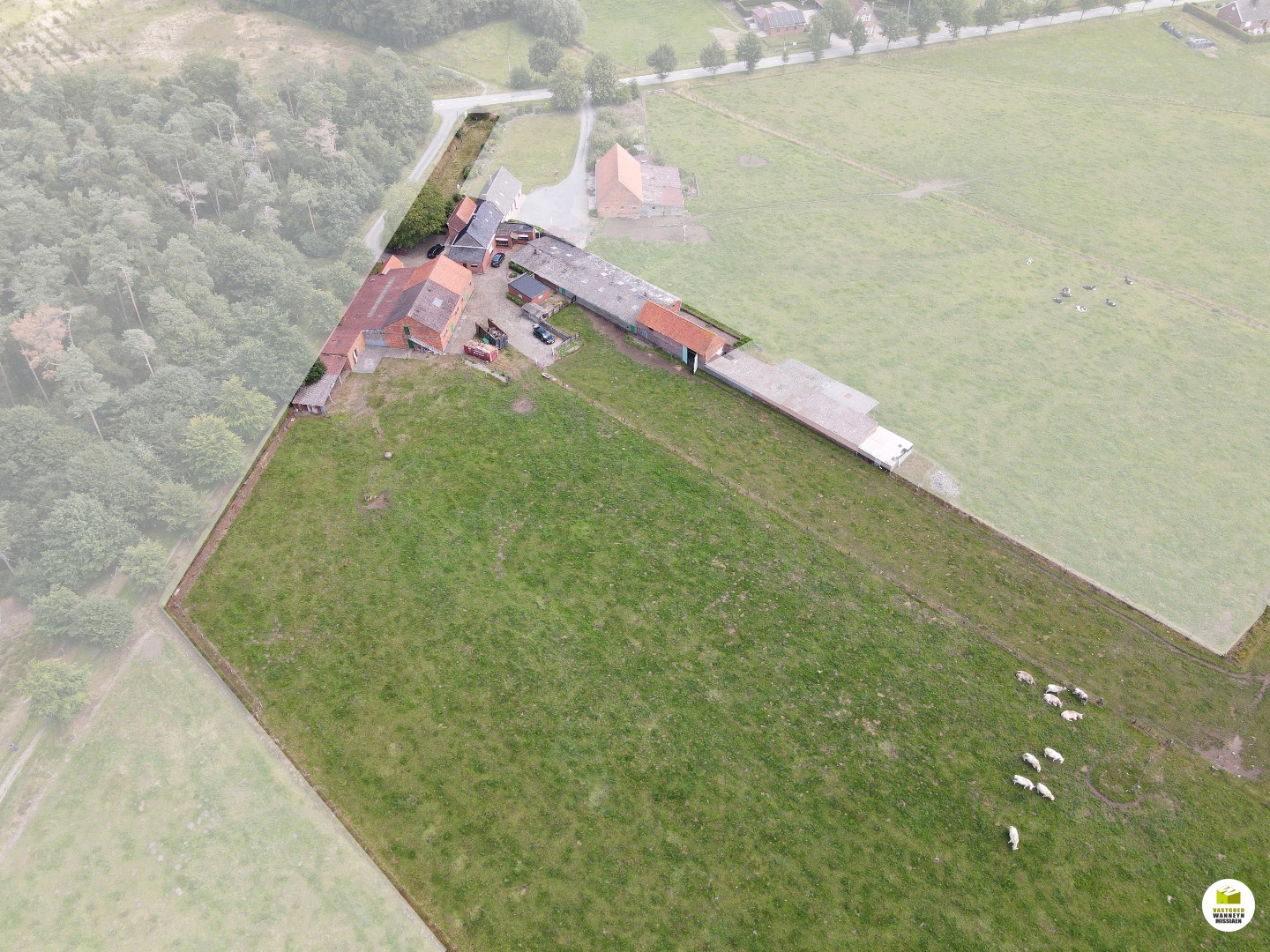 Op de grens van Wingene en Beernem vindt u deze unieke hoeve op een oppervlakte van 3,5ha in een prachtige omgeving palend aan de bos- en natuurgebied. Via de Scheiddreef komt u aan de zuid gerichte eigendom, die omvat:
