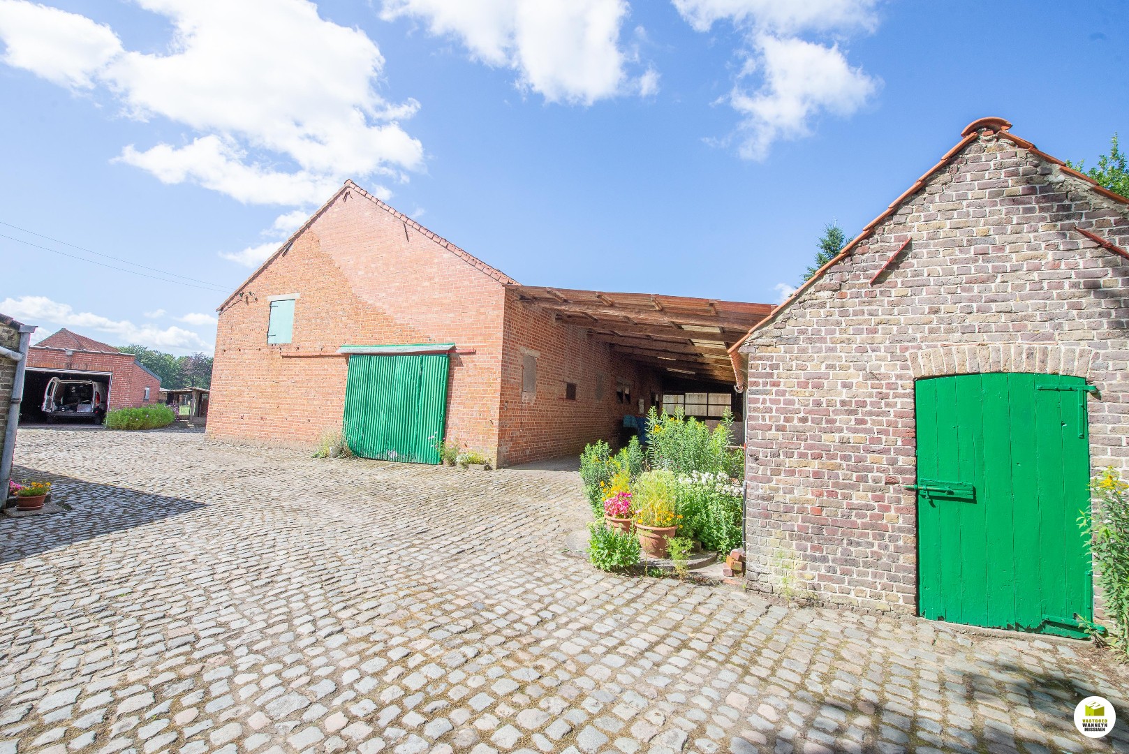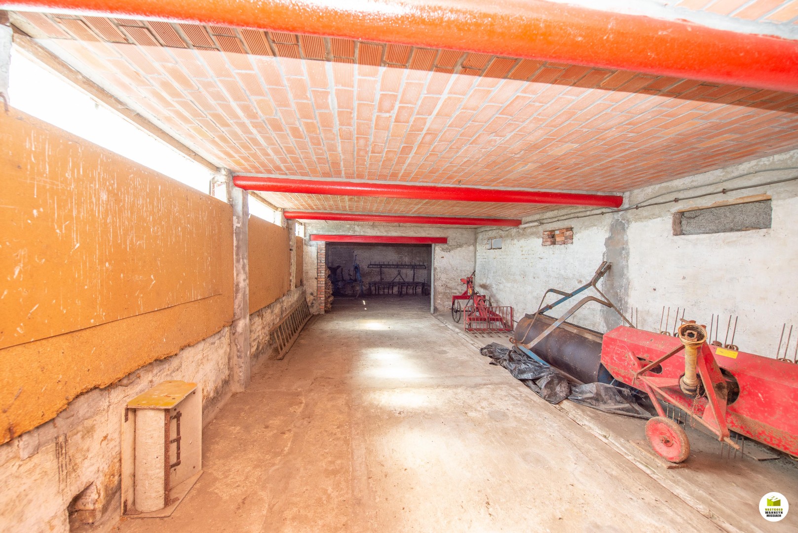 - graanstal (+/-60m2, hoogte gelijkvloers 2,5m + graanzolder)