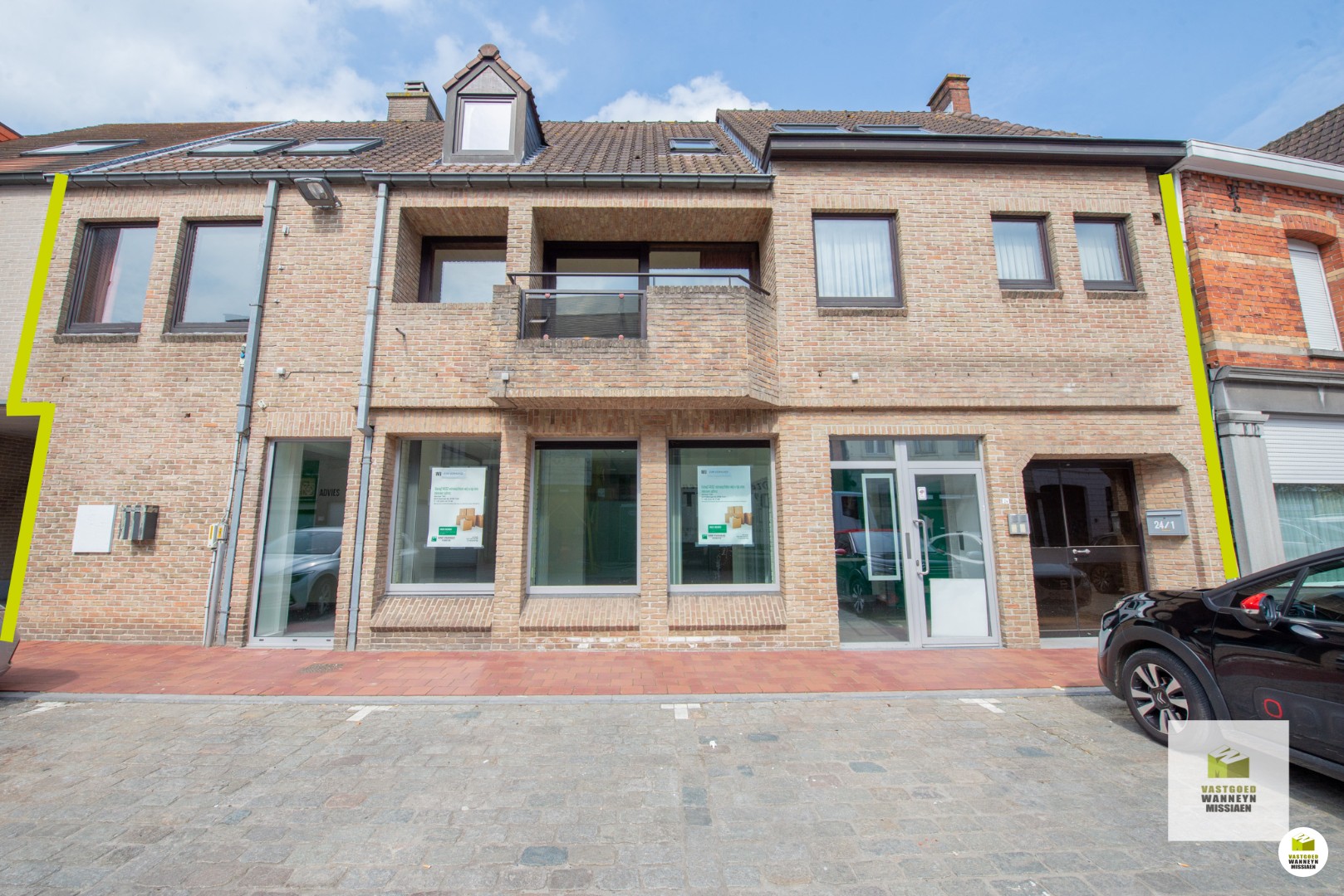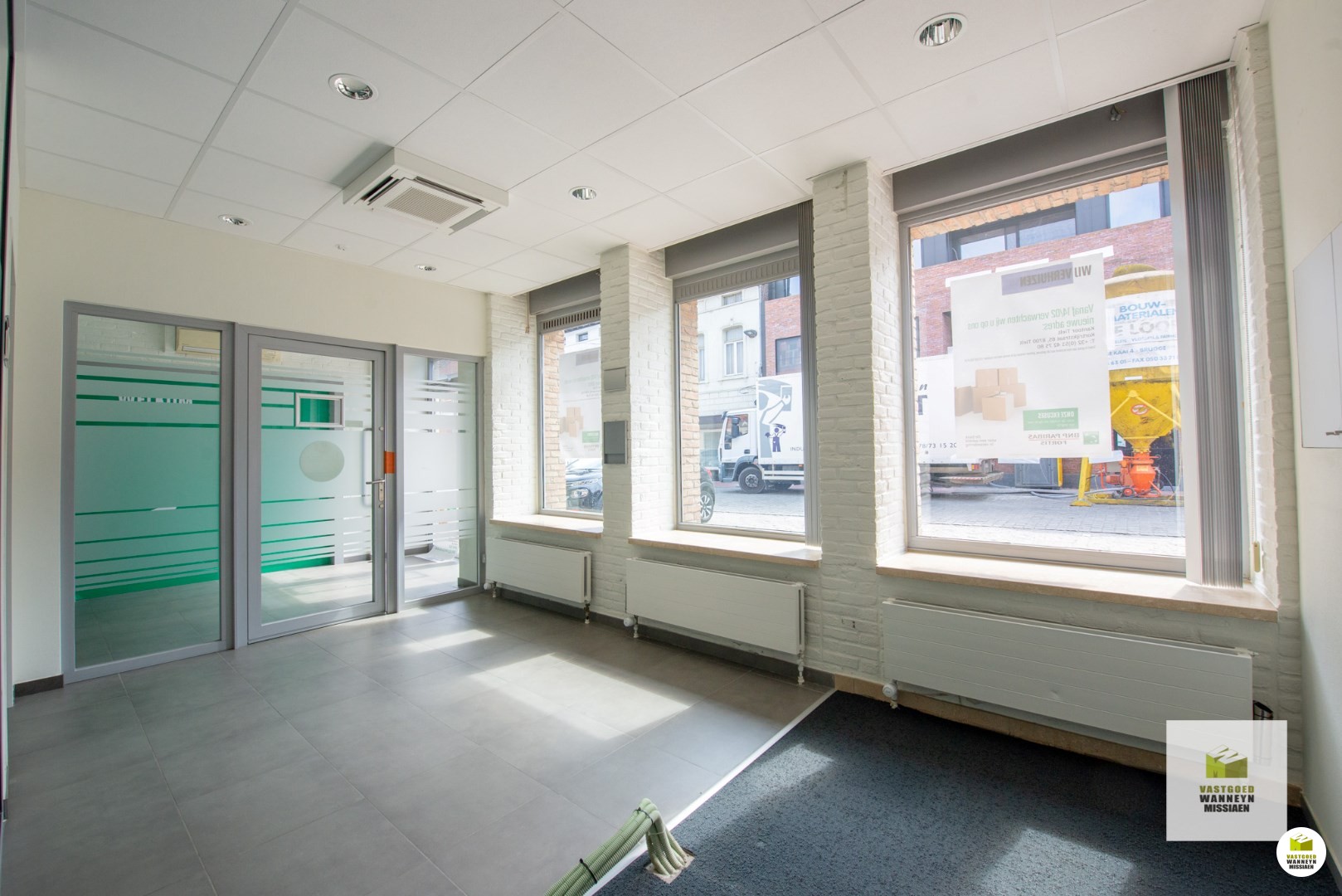 Dankzij de ligging op de markt geniet het pand van een uitstekende visibiliteit alsook een vlotte bereikbaarheid. De totale bruikbare vloeroppervlakte van het gelijkvloers bedraagt 168m2 en biedt dan ook vele mogelijkheden: kantoor, winkel, praktijk, personal training, verzamelgebouw... Huidige indeling: binnenkomen doen we in de lobby, waar men via een glazen deur in de burelen terecht komt. In de eerste afzonderlijke bureauruimte is toegang tot een extra ruimte die dienst kan doen als extra inkomruimte/berging ect... Verder zijn er nog 3 ruime aparte burelen, 4 in totaal. Vervolgens is de sanitaire voorziening: apart toilet met lavabo. Er zijn bovendien ook 2 koertjes. Tot slot is nog een eetplaats/refter die is uitgerust met een basis keuken en hiernaast ligt de technische ruimte. Vooraan zijn er verschillende openbare parkeerplaatsen, wat zeker een ... grote troef is! Het gelijkvloers beschikt over een EPC label C, waardoor het ook is vrijgesteld aan de renovatieverplichting.
