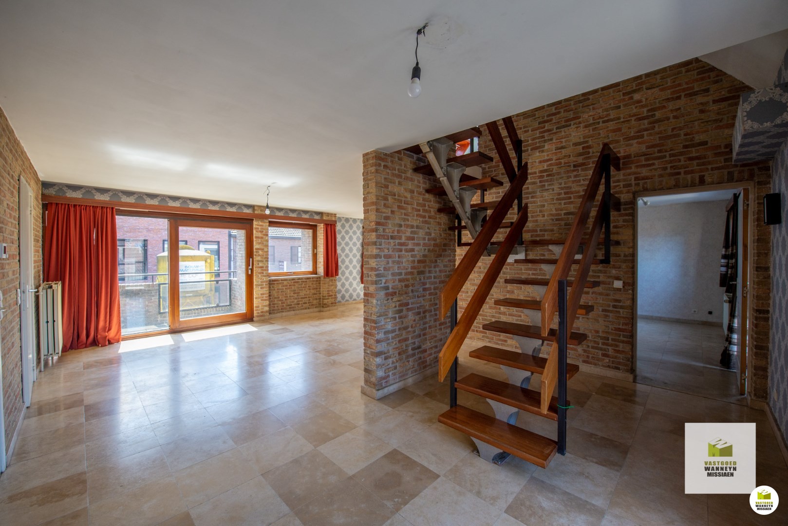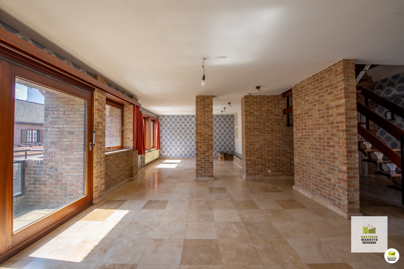 Boven het voormalig bankkantoor is een ruim duplexappartement. Dit appartement is toegankelijk via een aparte inkom. Het appartement heeft een vloeroppervlakte van 211m2! Via de trap bereiken we het appartement. De indeling is als volgt: binnenkomen doen we in de inkomhal die toegang geeft tot het gastentoilet. Vervolgens komen we in de keuken, die is basis uitgerust met een fornuis met dampkap en gootsteen. Vanuit zowel de keuken als de inkomhal bereiken we de leefruimte met aanpalend de zithoek. In de zithoek is ook een gezellige houtkachel en die ook uitgeeft in de achterliggende aparte bureauruimte. Op dit verdiep vinden we vooraan een balkon terug en achteraan nog een ruim terras! Via de trap komen we op de tweede verdieping. Hier zijn 3 slaapkamers, waarvan 1 met aanpalende badkamer uitgerust met lavabo en douche alsook nog een tweede aparte badkamer uitgerust met een lavabo en bad. Centrale verwarming op gas. Ook hier geldt een EPC-score label C en is er dus geen renovatieverplichting.